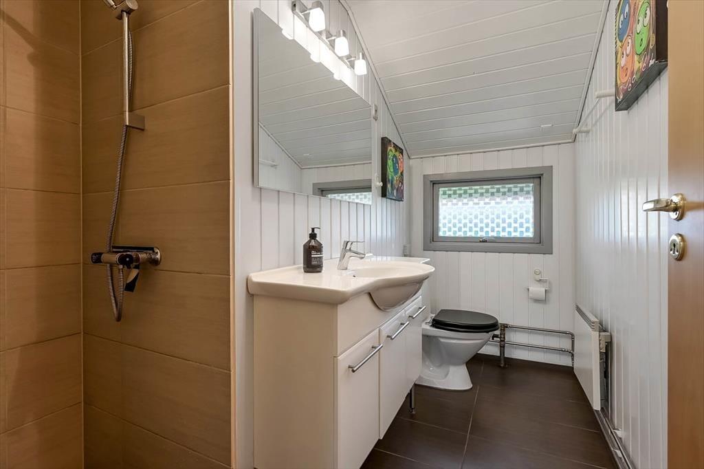Sommerhuset ligger i rolige omgivelser på den lukkede vej Horsfold. Et veludviklet stisystem gør det nemt at komme rundt i Bork Havn – uanset om I vil hen på den nærliggende legeplads, eller om I vil spille minigolf, købe ind eller se surferne boltre sig ude på fjorden. Der er både en populær surfstrand og en dejlig badestrand med lavt vand i byen, og havnen ligger som et centralt samlingspunkt i byen: Her kan du se på vuggende sejlbåde, få en bid mad eller forkæle familien med store vaffelis. Både til fods og på cykel er det skønt at begive sig ud på naturstien, der løber langs med Ringkøbing Fjord, og hvis du slet ikke kan stoppe, kan du fortsætte helt til Skjern Enge, før du vender om.