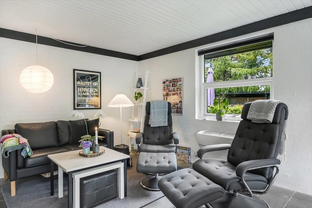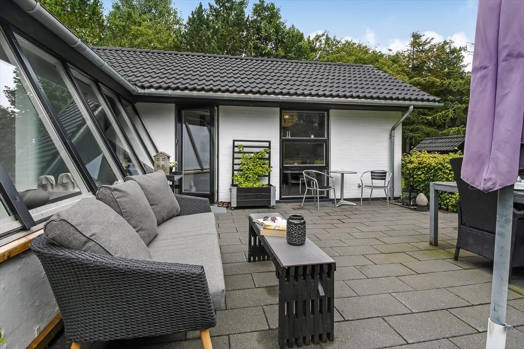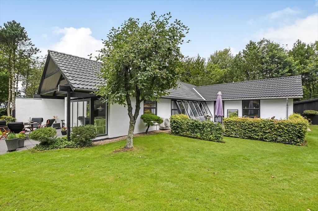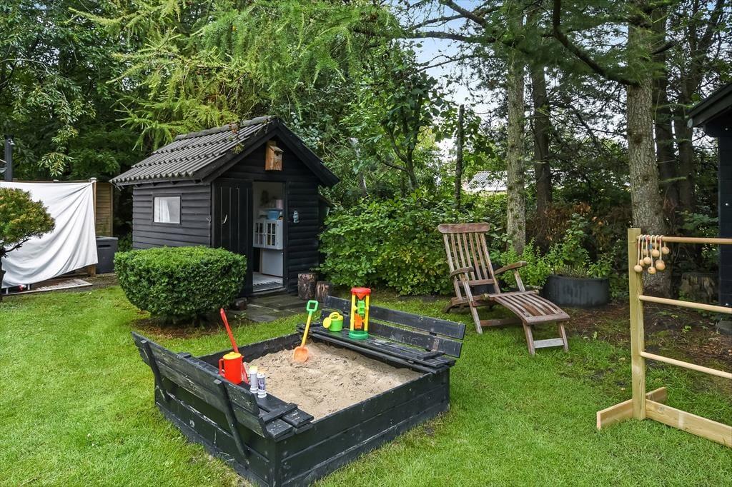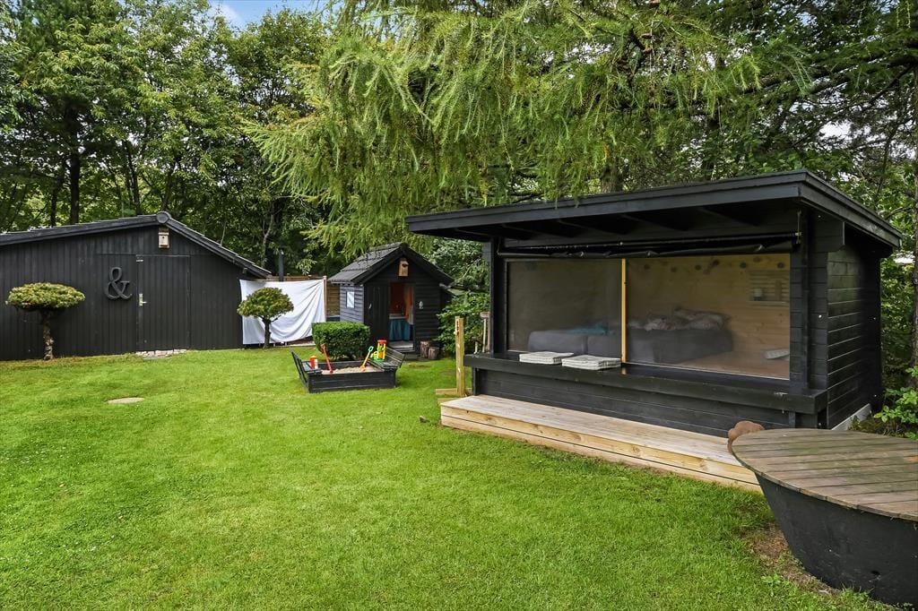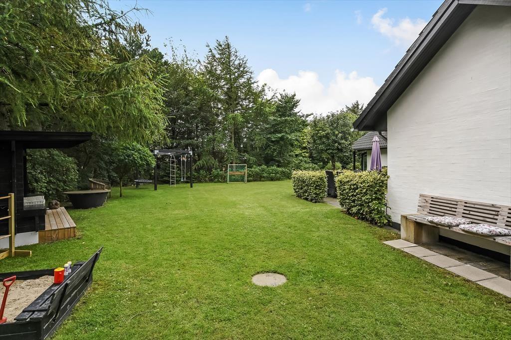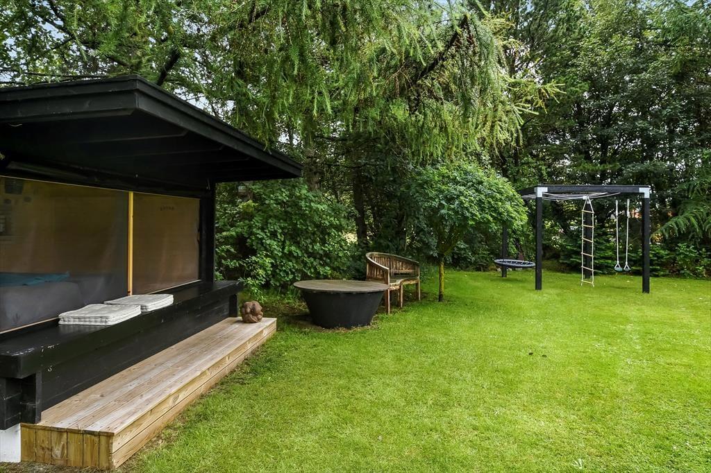 Udendørs byder feriehuset også på masser af plads til både store og små. Den store have, der ligger omkranset af store træer, har trods disse træer stadig masser af sol hele dagen lang. Her er både et flot og veludstyret lejehus, et gyngestativ med almindelige- og edderkoppegynger, klatrestativ og sandkasse. Både store og små kan også nyde en middagslur i shelteren bagerst i haven, eller hvis temperaturen er til det, kan der selvfølgelig også overnattes udenfor. Rundt om huset finder I også to store terrasser, begge med havemøbler og grill, så både samvær, spisning eller afslapning kan stå på programmet.