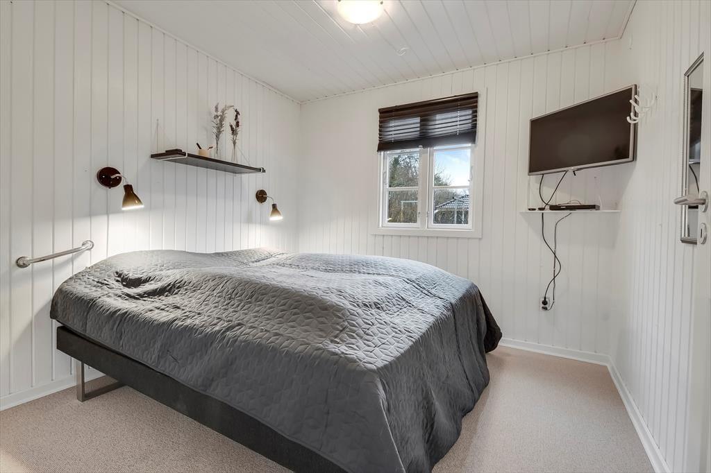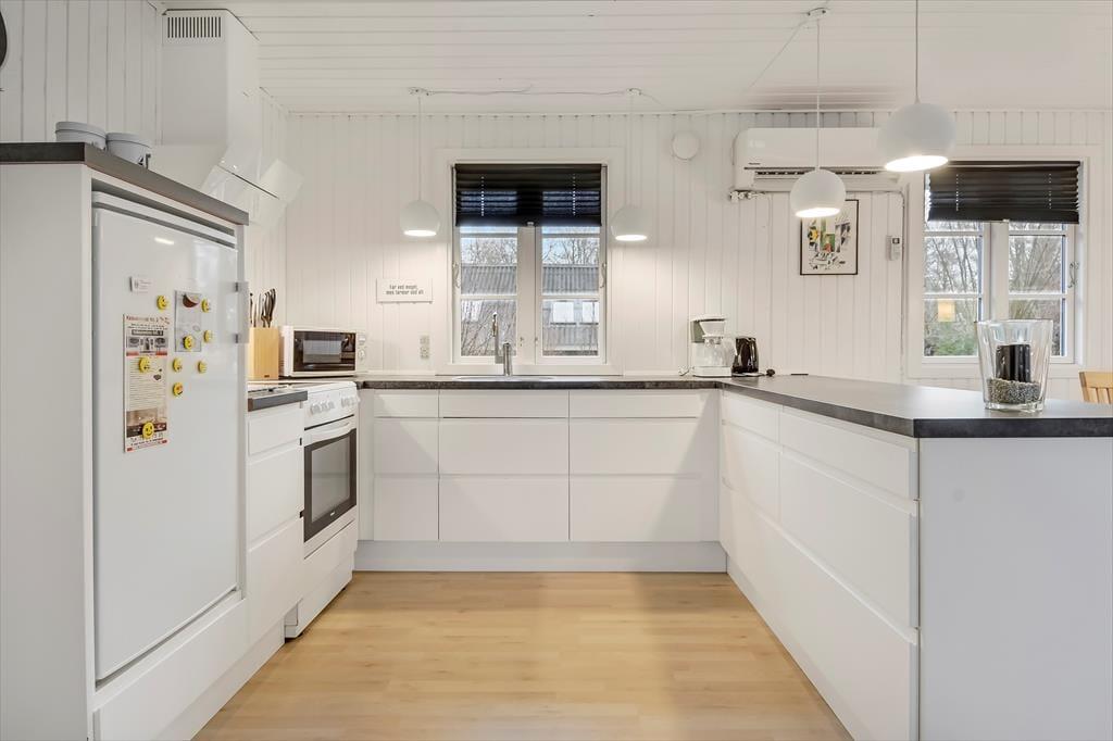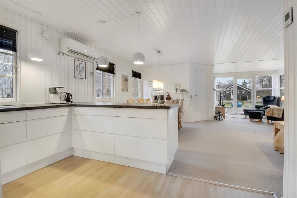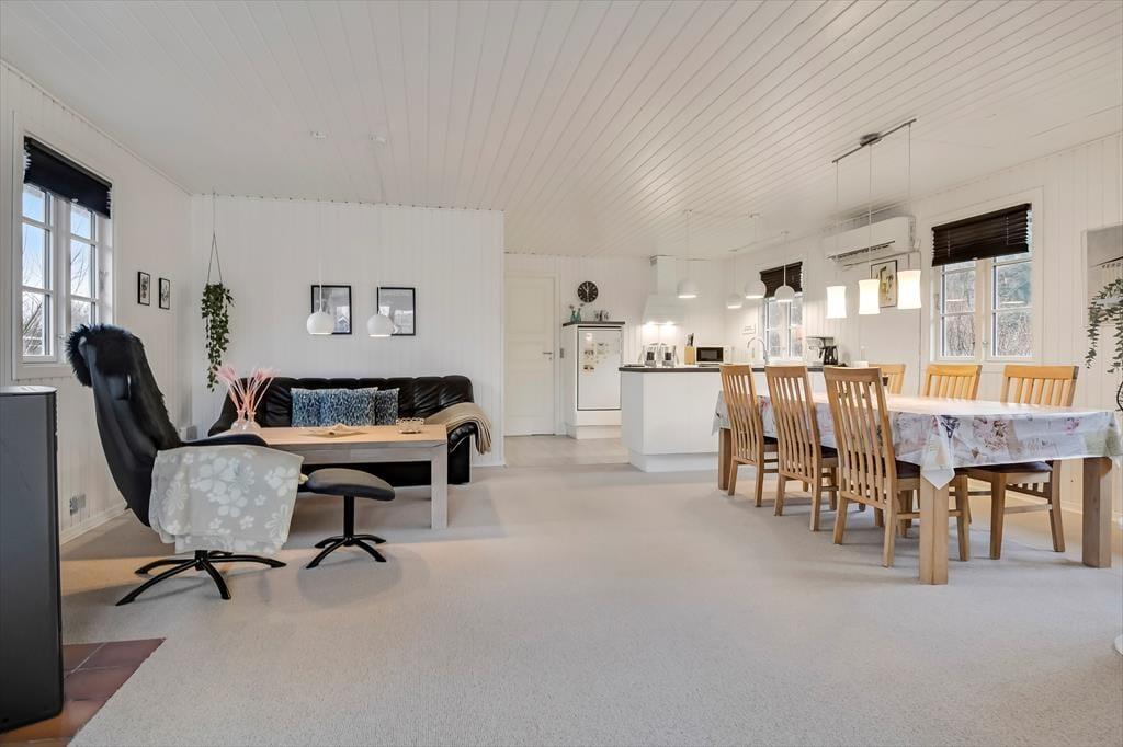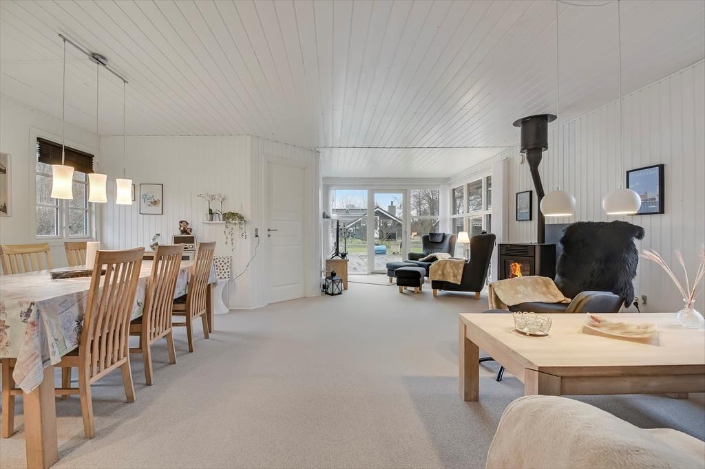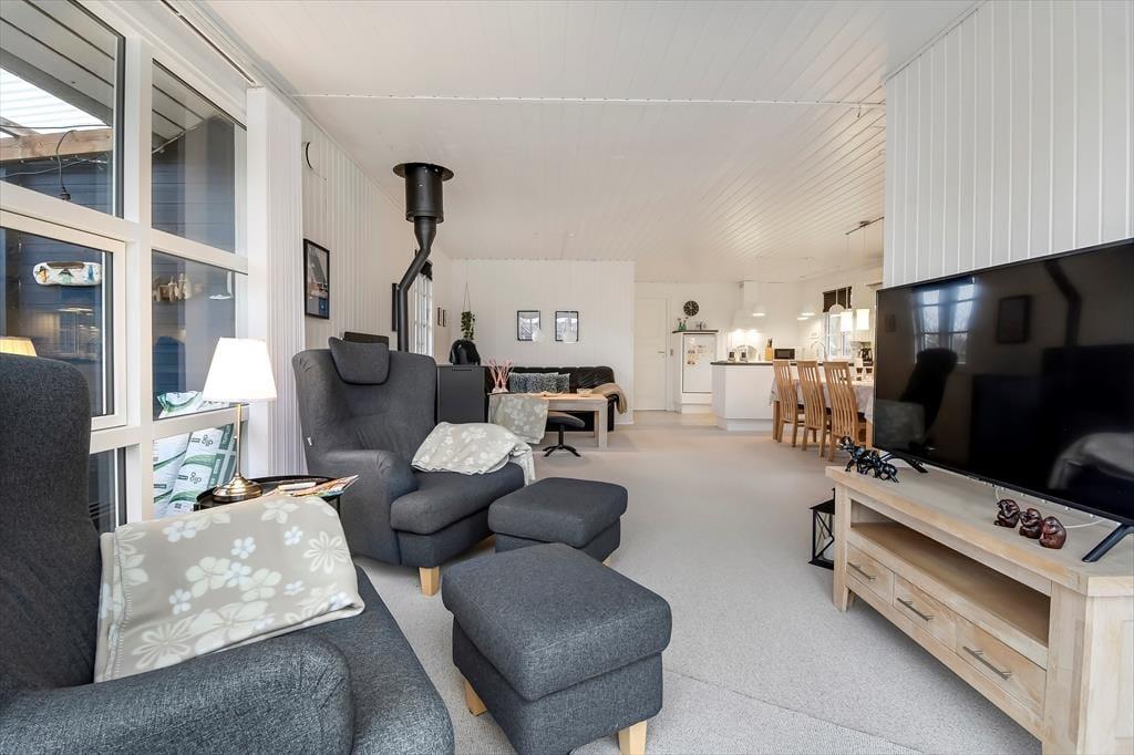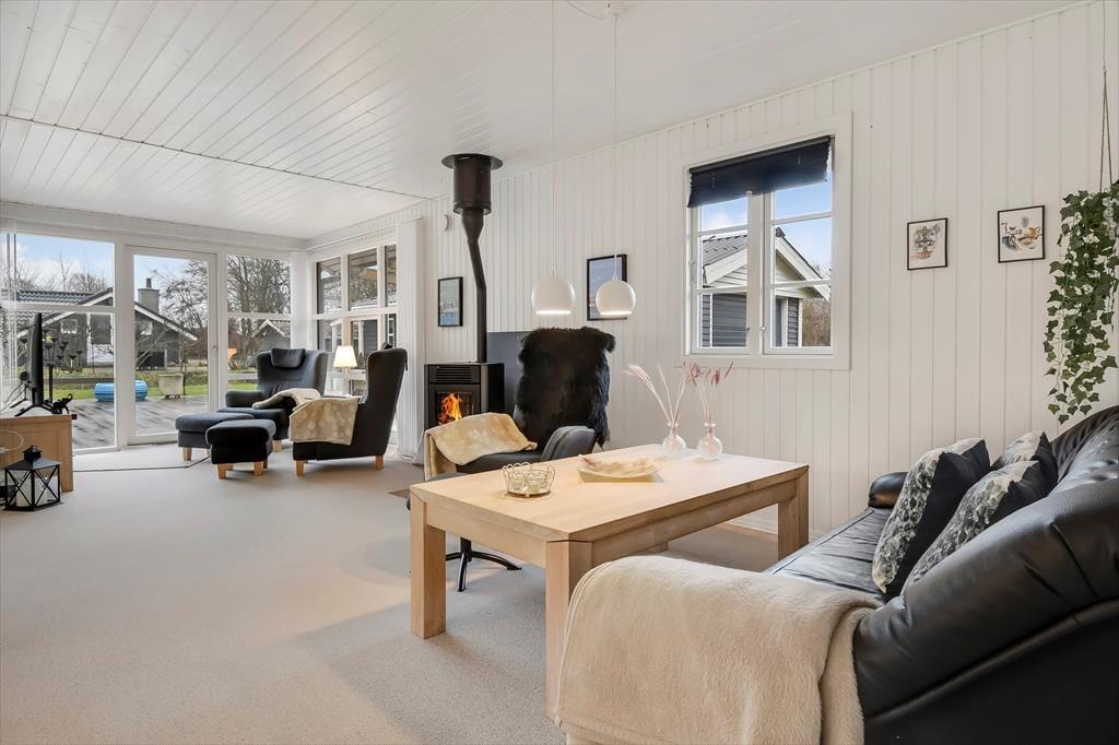 Dette feriehus, der blev renoveret i 2018, er uden tvivl et fantastisk udgangspunkt for både par eller familier, der ønsker en rolig og afslappende ferie. Huset har plads til i alt 5 gæster, der fordeler sig på de tre soveværelser med hhv. en enkeltseng og to dobbeltsenge. Alle soveværelser har et dejligt lysindfald og skabsplads. Lige indenfor finder I husets badeværelse med brus. Samlingspunktet i huset er uden tvivl det store køkken-alrum, der ender ud i en tv-afdeling. Her kan der både laves mad, spilles spil, slappes af i sofaen eller nydes en god film i de store lænestole. Husets brændeovn er med til skabe hygge og varme på de koldere dage, og fra stuen har I mulighed for at gå direkte ud på den store, flotte terrasse.