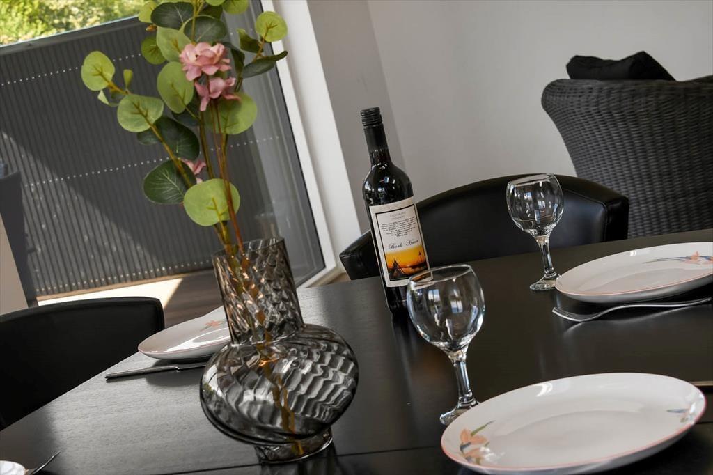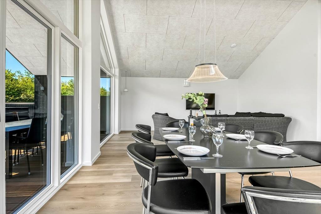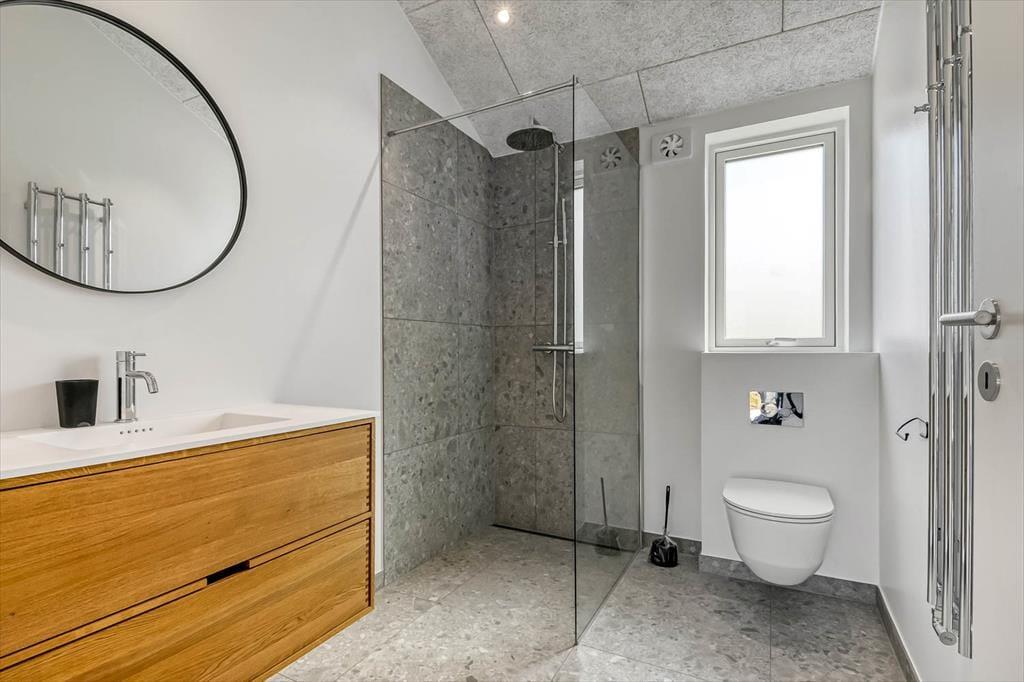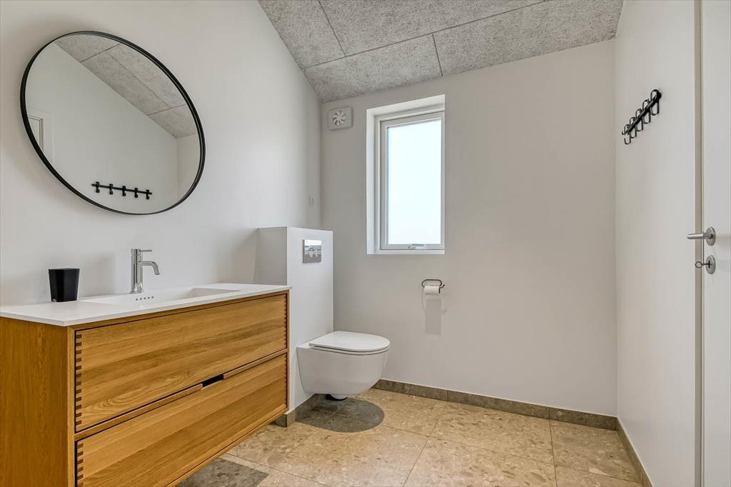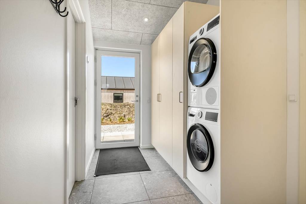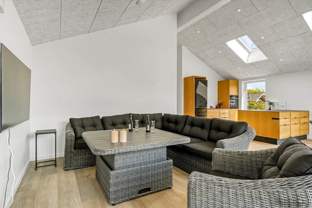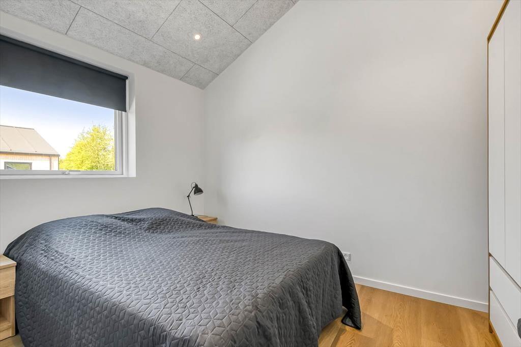 Træd indenfor i det spritnye sommerhus og mærk, hvordan lyset strømmer ind gennem de store vinduespartier og skaber en behagelig, let atmosfære. Højt til loftet og et elegant, åbent rumforløb får stuen og køkkenet til at smelte sammen i ét – og giver masser af plads til både fællesstunder og rolig alenetid. Duften af friskbrygget kaffe fra køkkenet blander sig med lyden af grin fra stuen, hvor familien samles om spil, bøger og hyggelige måltider. De to badeværelser gør det nemt at være mange under samme tag, og både store og små kan trække sig tilbage til husets indbydende værelser, når dagens oplevelser er fordøjet. Her får du ikke bare en feriebolig – men et rart og rammende sted at være sammen.