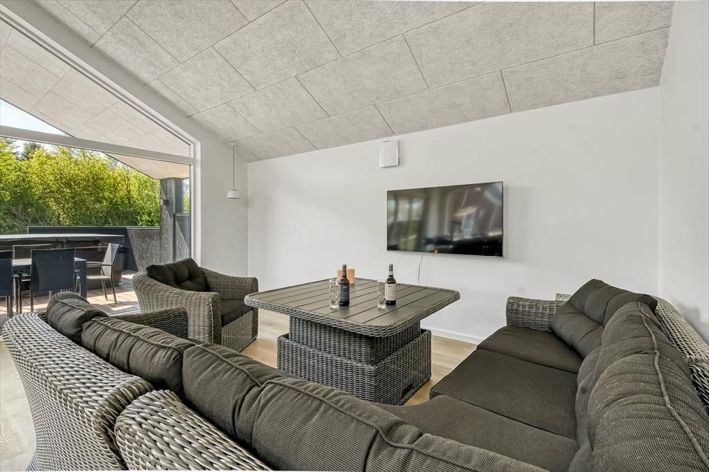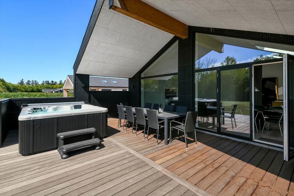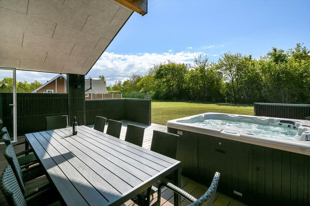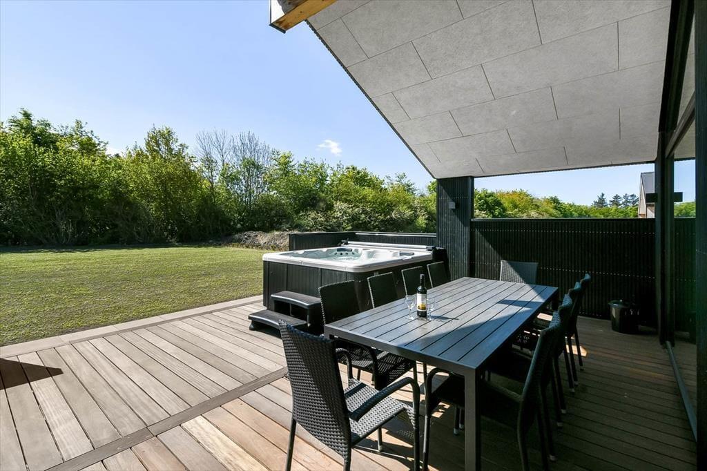 den vestjyske sommer er det oplagt at leve livet udenfor – og det kan du i den grad gøre her. På terrassen kan du nyde morgensolen med en blød plaid om skuldrene og en dampende kop te i hånden, mens duggen stadig glitrer på græsset. Senere på dagen indbyder det udendørs spabad til ægte afslapning: Boblerne bruser blidt, og vandet omfavner kroppen, mens du mærker feriefreden brede sig. Når solen står højt, og duften af aftensmad hænger i luften, bliver terrassen samlingsstedet for gode samtaler og lange aftener under åben himmel. Grunden omkring huset giver plads til leg, afslapning og udeliv i jeres helt eget tempo – uanset om du foretrækker boldspil på plænen eller en stille stund med en bog.