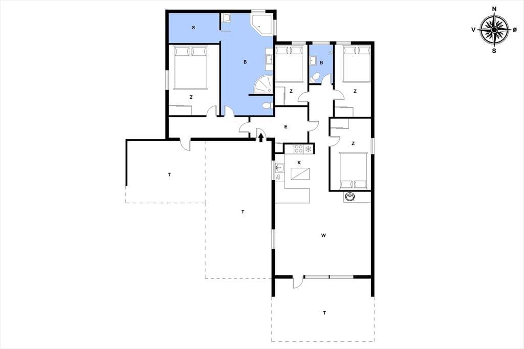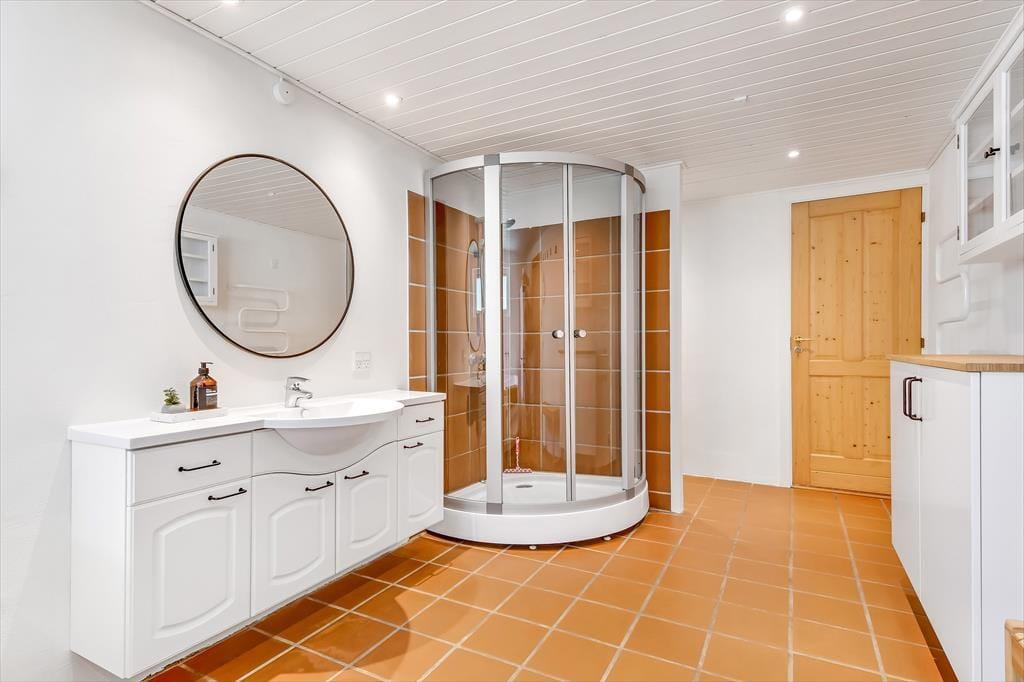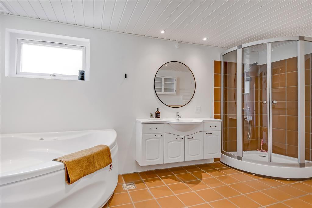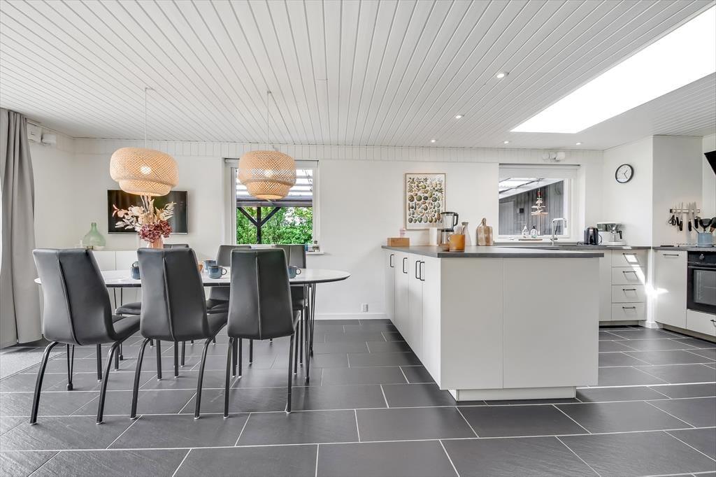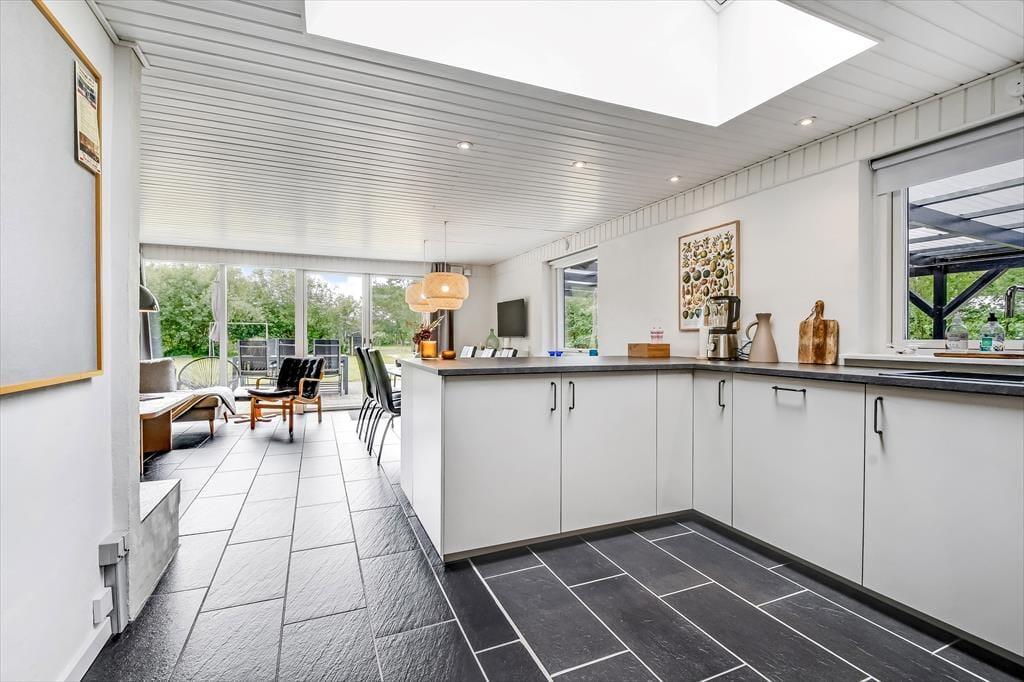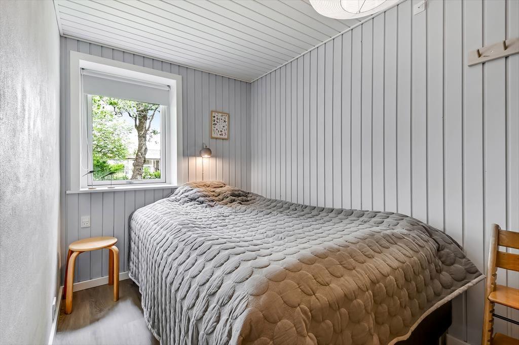 Alt i alt får du og dine kære en skøn ramme om ferielivet her på adressen. Sommerhuset blev grundigt renoveret i 2024, og der er hele 124 m2 at brede sig på, så selv hvis I er seks personer samlet, kan I have følelsen af at have godt med plads omkring jer. Når det er sengetid, har I fire soveværelser at fordele jer på. Det ene ligger lidt for sig – og lige ved siden af det største af husets to badeværelser. Her er der for øvrigt ikke bare en bruser, men også et spabad og en sauna, så hvis du drømmer om at fylde ferien med wellness og afslapning, kan det passende foregå her. Det er for øvrigt rart at opholde sig i stuen, der er et indbydende rum med integreret køkken, indbygningspejs nær sofaen og en dejligt lys atmosfære.