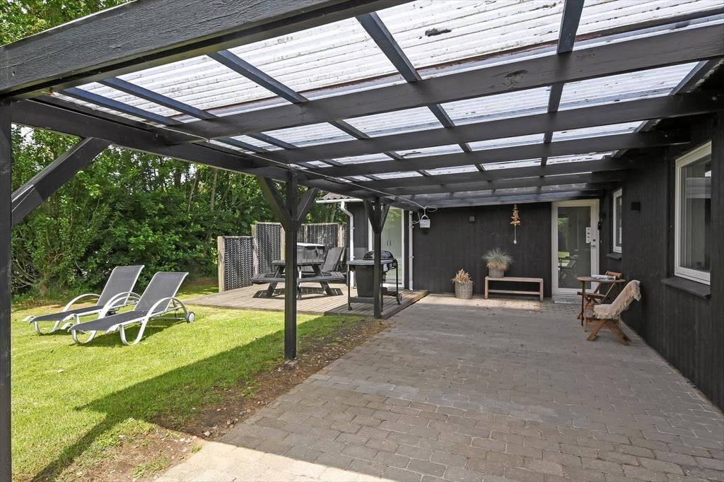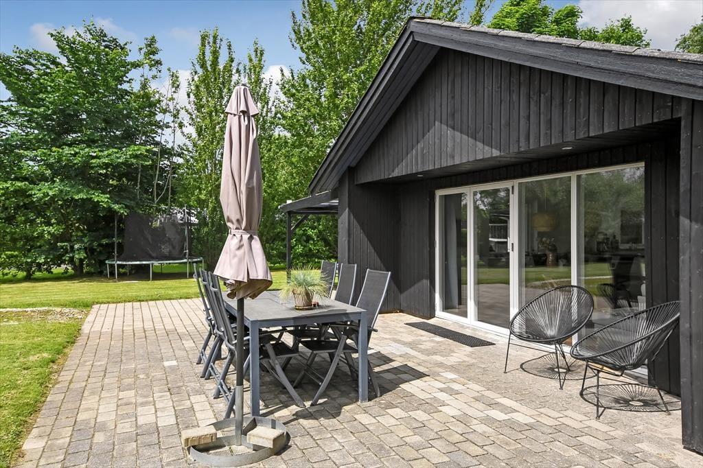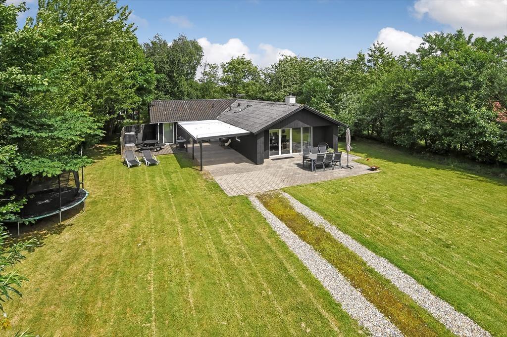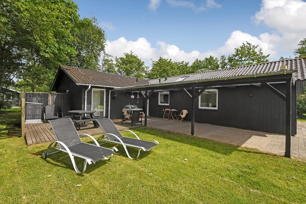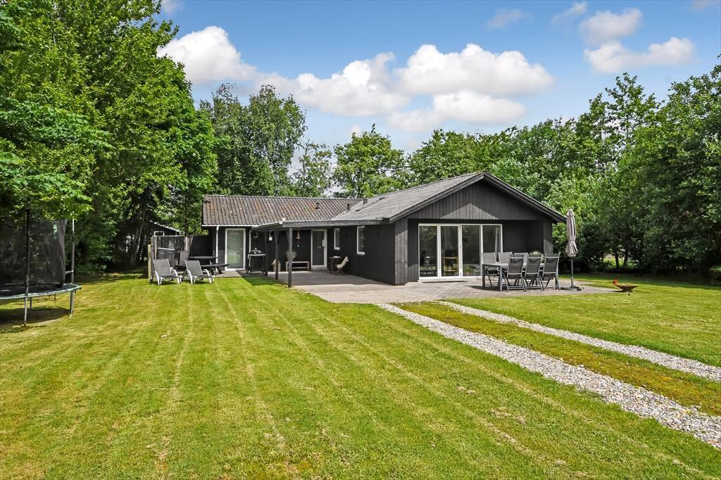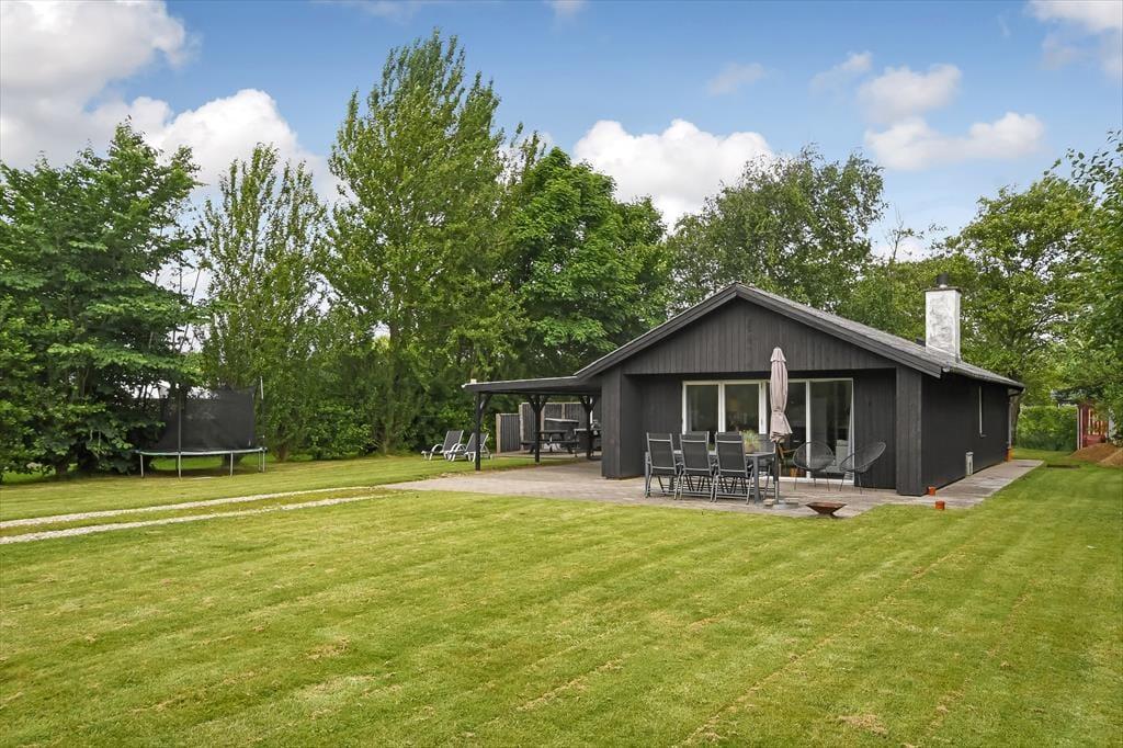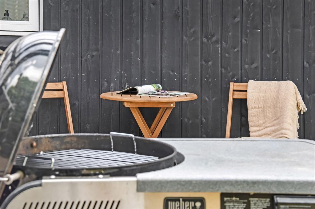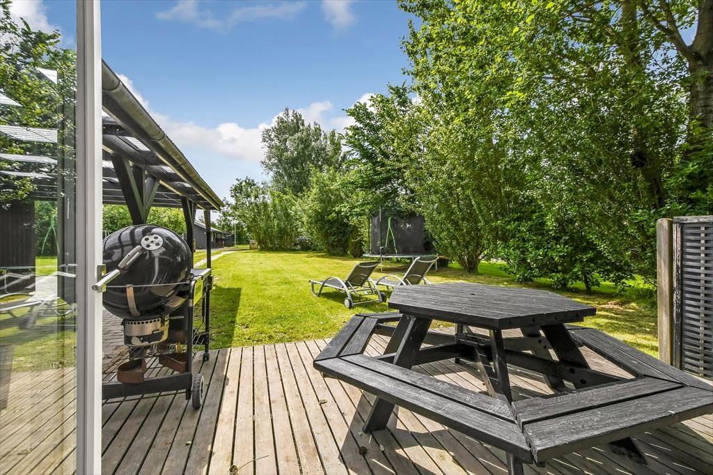 Det gode solskinsvejr og de grønne omgivelser kan nydes i fulde drag, når du slapper af på husets terrasser. Der er flere at vælge imellem – inklusiv en overdækket opholdsplads, hvor du og dine kære kan blive siddende til langt ud på aftenen, selvom duggen for længst er faldet. Hvis der er nogen i familien, der hellere vil hoppe på trampolin frem for at slænge sig i en liggestol, er der mulighed for det. Og I kan også alle deltage i en hurtig fodboldkamp eller en dyst i kongespil på græsplænen, inden det er tid til at tage ud for at udforske Bork Havn og omegn.