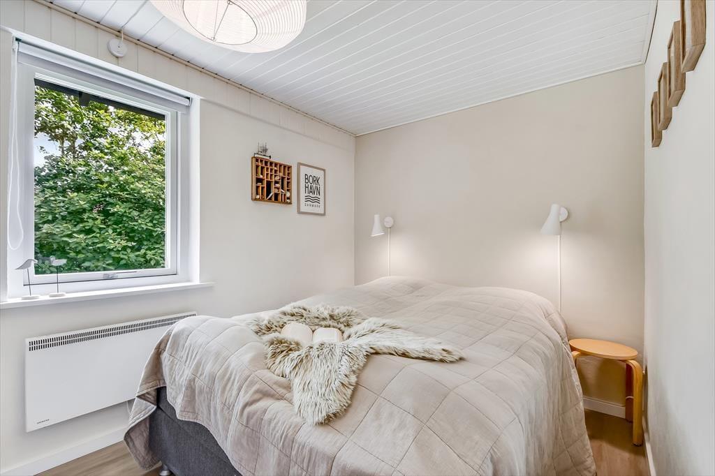 Sommerhuset ligger roligt placeret på en lille, lukket sidevej – bare en kort gåtur fra den nærmeste legeplads og kun 600 meter fra Ringkøbing Fjord. Hvis du elsker at surfe eller gerne vil prøve det for første gang, er Bork Havn en dejlig feriedestination, for den lokale strand har lavt vand og gode vindforhold, så det er et godt sted at stævne ud på vandet. Byens charmerende havnemiljø skal nok blive populært, hvis du vil invitere familien på is eller bare daske rundt i de maritime omgivelser, og der er også en børnevenlig badestrand, hvor I kan soppe eller dyppe jer på en varm sommerdag. Med købmand, minigolfbane, cykeludlejning og restauranter er her alt, hvad I skal bruge, og der er sågar bare 10 minutters kørsel til Vesterhavet, hvis du får lyst til at slutte dagen af med at se solnedgangen fra en klittop.