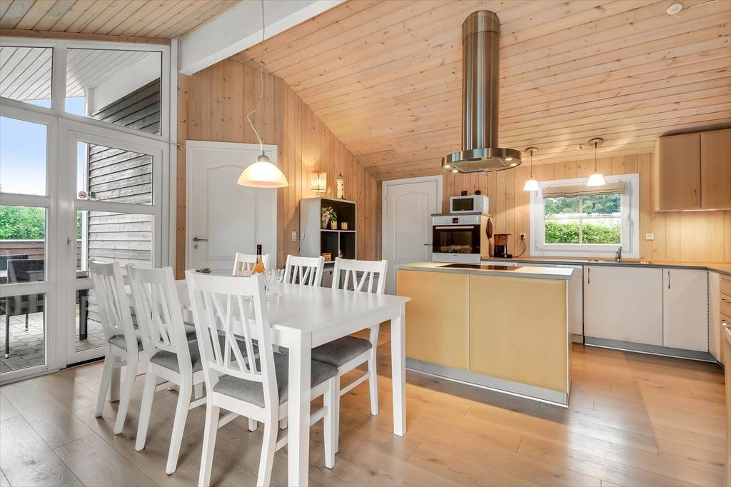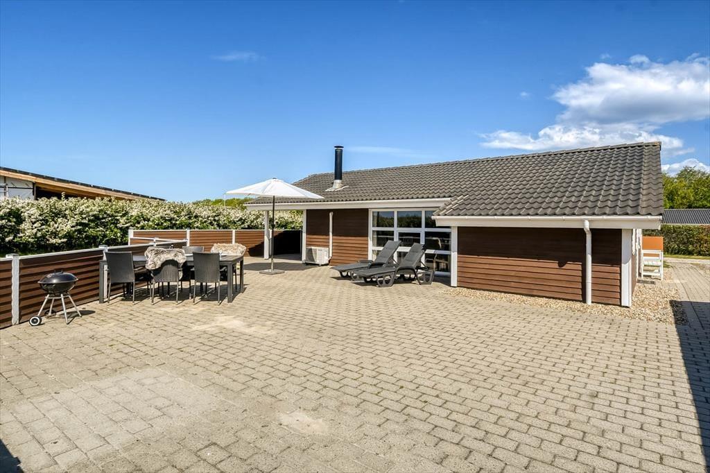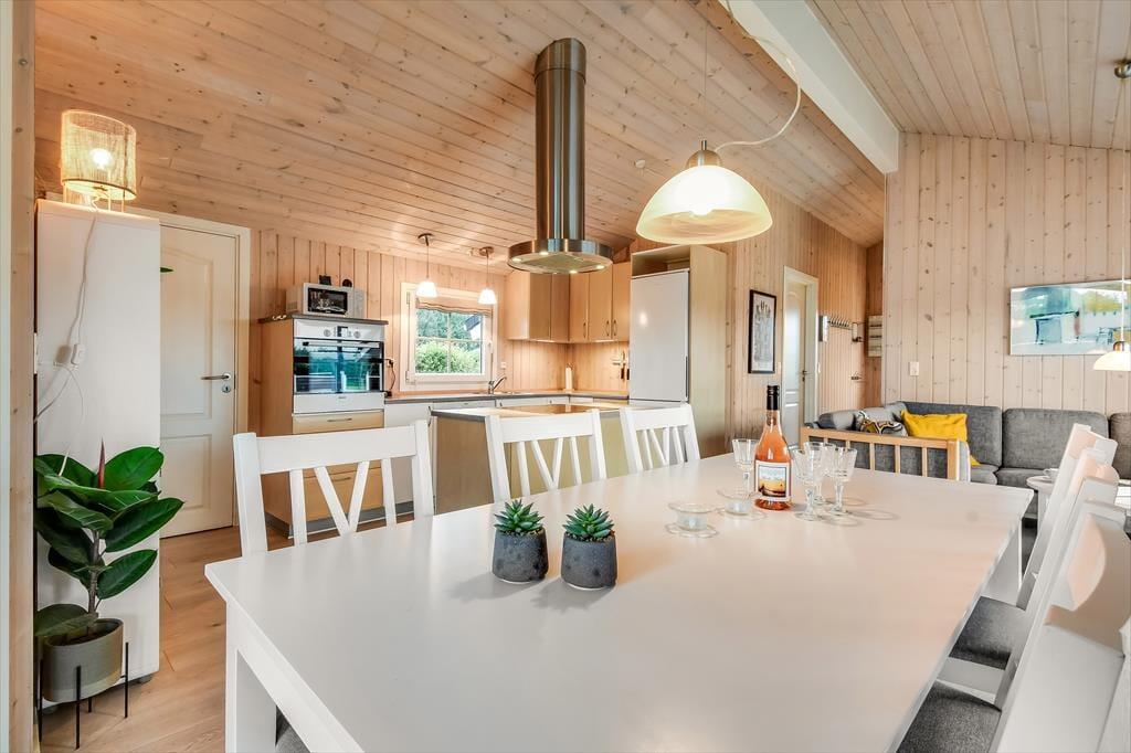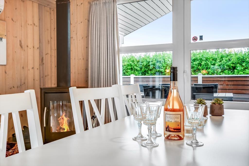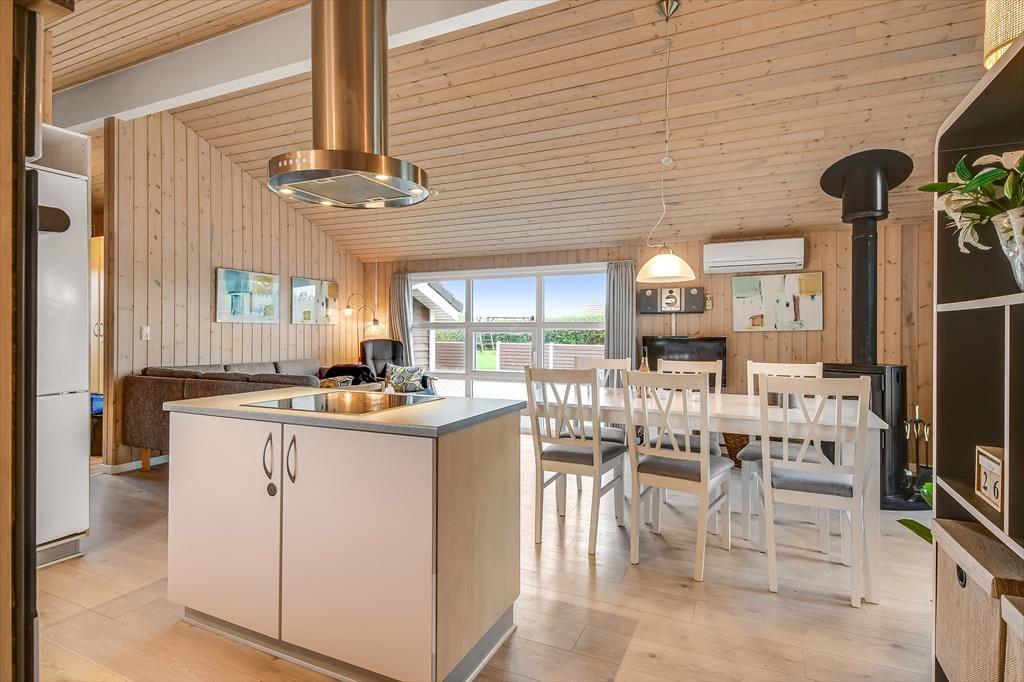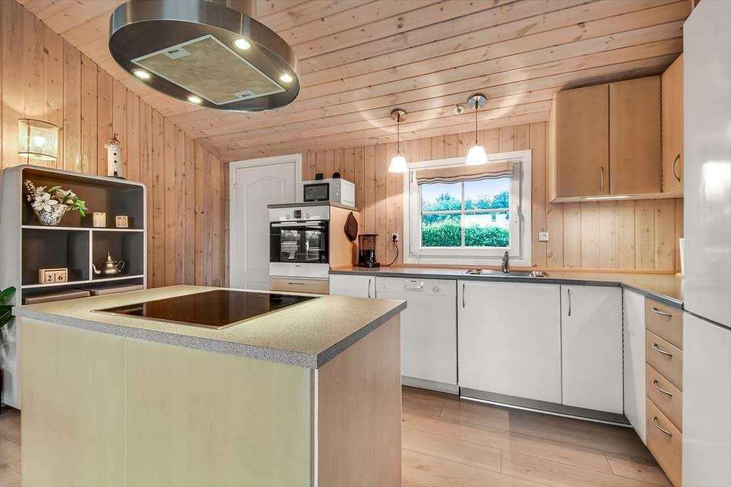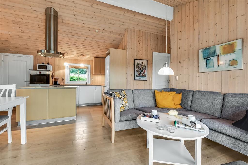 Sommerhuset, der er opført i 2006, præsenterer sig allerede på pæn og velordnet vis udefra, og inde bag træfacaden får du det samme tjekkede indtryk. Centralt i huset ligger stue og køkken samlet, og det er det helt oplagte sted at være, når du vil nyde tiden med dem, du holder allermest af. Alt efter jeres humør og præferencer kan I hygge jer med brætspil, strikketøj, filmaftener og andre afslappende aktiviteter, og hvis I elsker at lave mad, kan I også bruge lang tid på at kræse om både små og store måltider. Brændeovnen kan du tænde op i, hvis vejret indbyder til det – og på eventuelle kølige dage kan det også føles helt fantastisk at slappe af med et varmt spabad og en tur i saunaen. Begge dele kan lade sig gøre på badeværelset, mens de tre soveværelser sørger for, at alle i familien kan sove komfortabelt.