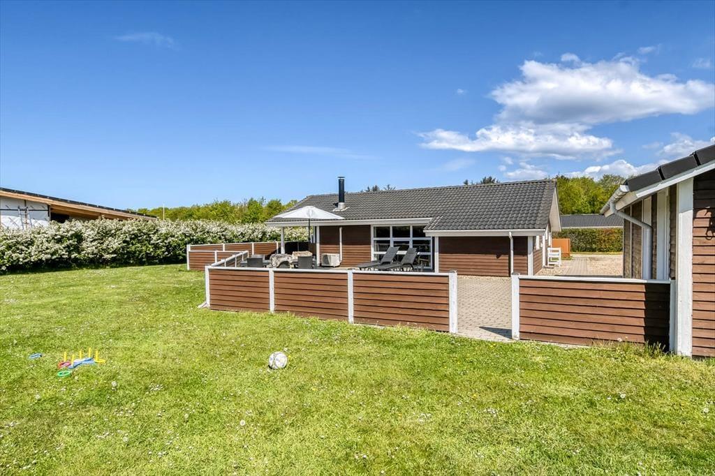 Ranunkelvænget ender blindt, og i det hele taget er sommerhusområdet lukket, så det er et fredeligt og børnevenligt sted at holde ferie. Bare 100 meter væk ligger den nærmeste legeplads, og det er nemt at komme frem til både Bork Legeland og Bork Vikingehavn, der begge er skønne udflugtsmål for børnefamilier. Hvis du er til fysiske aktiviteter og i særdeles vandsport, kan du glæde dig over at have kort afstand til Bork Havns populære surfstrand, hvor det også er muligt at sejle kajak, prøve SUP og meget mere. På den anden side af det hyggelige havnemiljø finder du en mindre badestrand med lavt og roligt vand – og hvis du er til større bølger og store sandstrande, tager det knap ti minutter at køre til Nymindegab ud mod Vesterhavet.