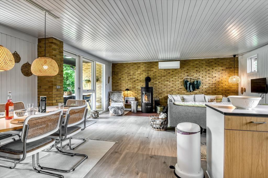 Husets tre gode soveværelser og den dejlige stue giver dig og dine kære gode plads til både nattesøvnen og de sociale hyggestunder. Ved entréen er der separat bad og toilet, og det veludstyrede køkken er integreret med stuen, så morgenbadet kan du få helt i fred, mens du kan brygge kaffe og forberede dagens første måltid på samme tid, som du snakker med familien. Hvis det er køligt i vejret, og I har planer om at tilbringe formiddagen inden døre, kan I tænde op i brændeovnen og gå i gang med at bage kage eller finde bøger og brætspil frem fra feriebagagen – og hvis vejret er mere sommerligt, kan I flytte ferielivet ud på den tilstødende terrasse.