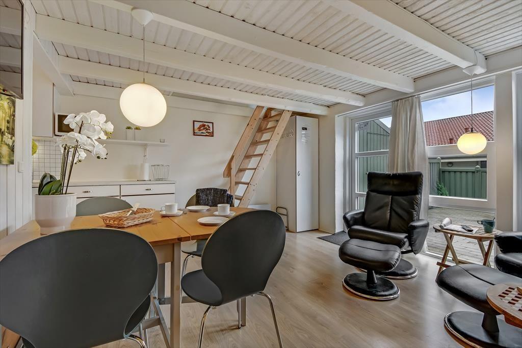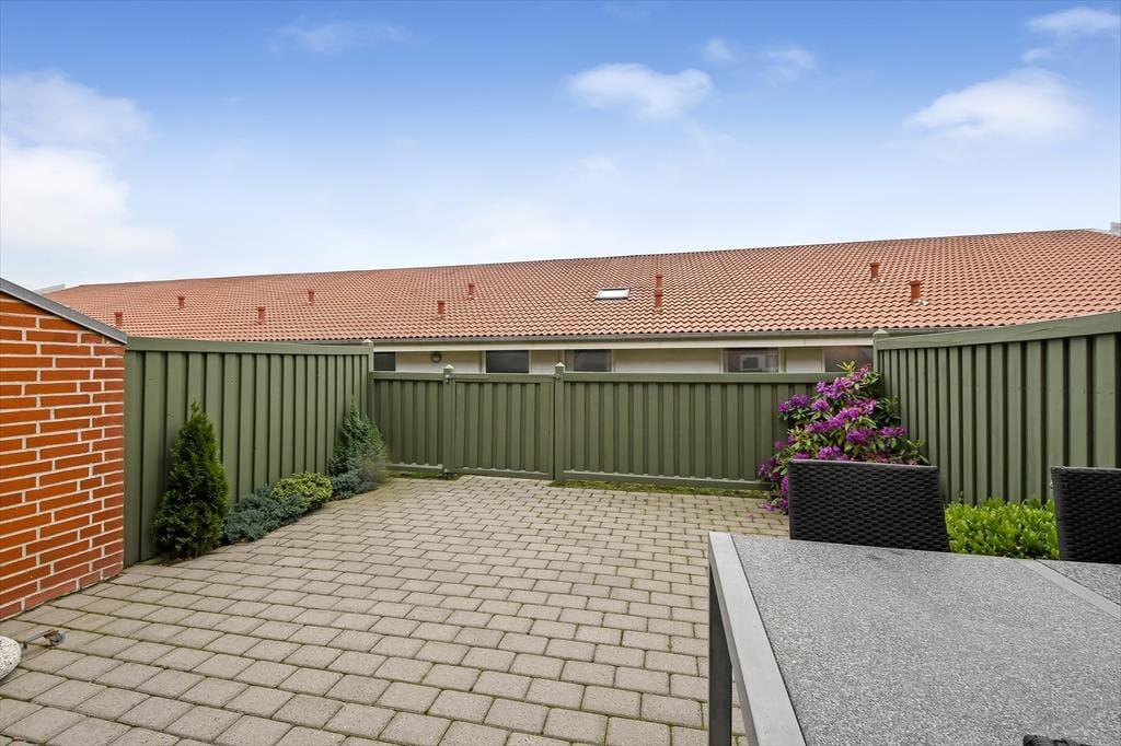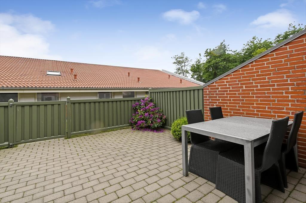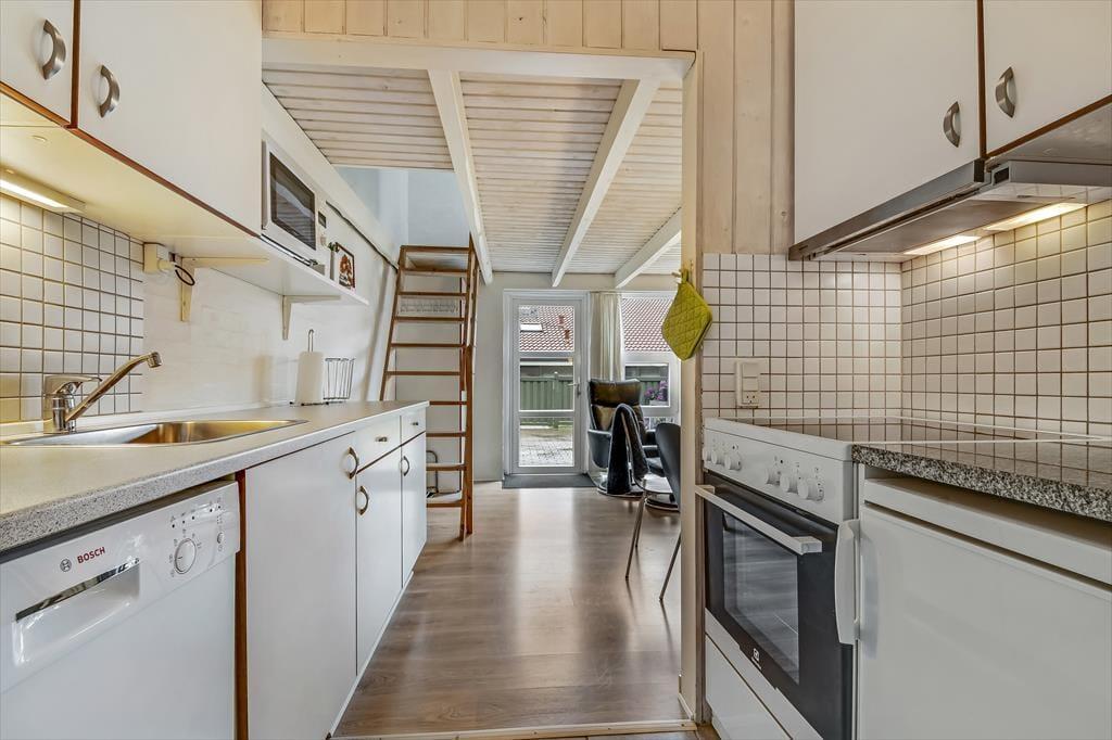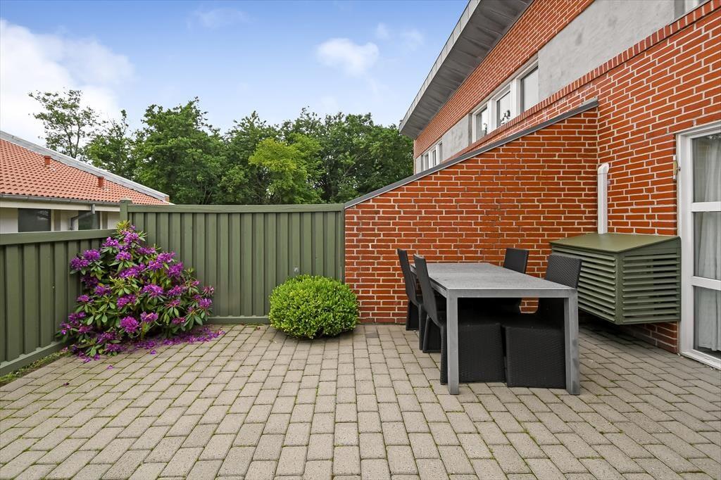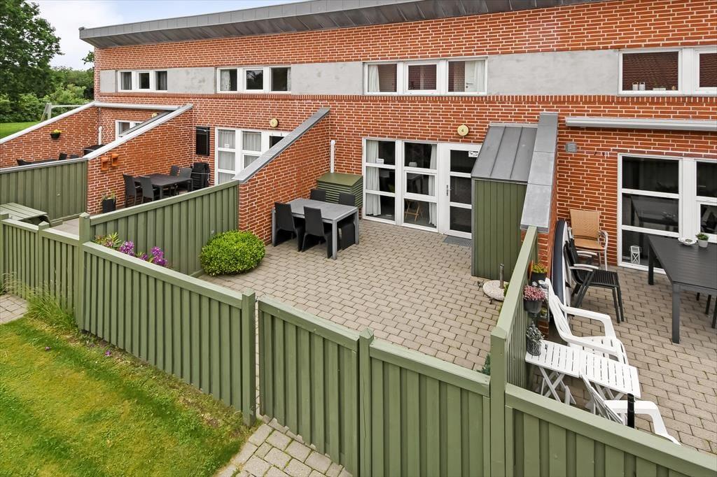 I forlængelse af stuen breder en dejlig terrasse sig, og det er det helt rette sted at være, når solen står højt på himlen, og der er sommerstemning i luften. Terrassen er helt aflukket, så der er skærmet godt af, når du vil nyde en kop formiddagskaffe eller få en kølig forfriskning inden aftensmaden – som for øvrigt også kan indtages i det fri, hvis du og familien ønsker at få det maksimale ud af det gode vejr. Hvis du har små børn med på ferie, vil de med garanti blive glade for bebyggelsens hyggelige legepladser, og uanset alder er det herligt at have både fjord, havn og badestrand inden for meget bekvem rækkevidde.