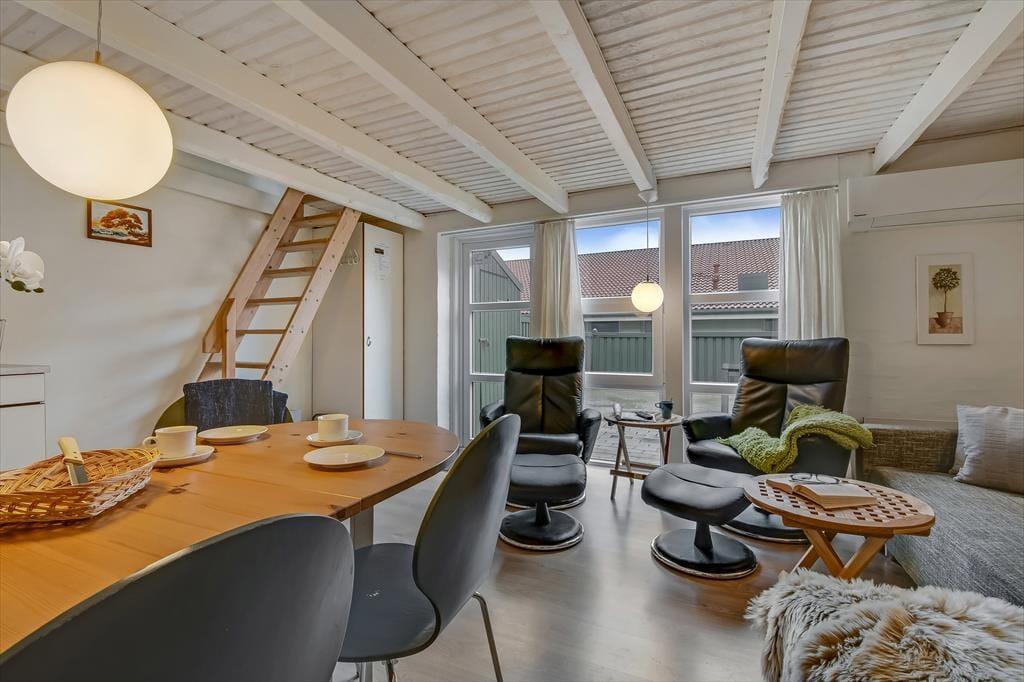 Med sådan en beliggenhed får du rig mulighed for at udforske Bork Havn og det smukke landskab langs med Ringkøbing Fjord – og når du vender hjem efter alle oplevelserne, fungerer lejligheden som din rare og trygge base. Du og dine kære kan se frem til masser af hyggestunder i stuen, der er indrettet med sofa, lænestole og spisebord såvel som et integreret køkken i lyse farvetoner. Et badeværelse er her selvfølgelig også, og når det er sengetid, kan I fordele jer på tre gode soveværelser. Bemærk venligst, at to af dem ligger på førstesalen, og de er udstyret med skydedøre, hvis du gerne vil lukke helt af.