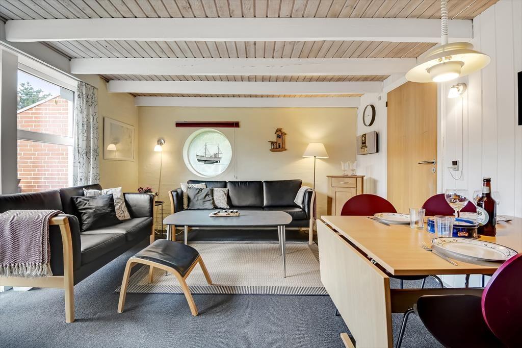 Indenfor byder rækkehuset på en varm og hyggelig atmosfære, der straks får jer til at føle jer hjemme. Den åbne planløsning kombinerer stue og køkken, hvilket skaber et skønt samlingspunkt for hele familien. Uanset om I slapper af foran tv'et, læser en god bog eller spiller brætspil, er der plads til alle. Fra stuen har I desuden udsigt til det den uforstyrrede terrasse, da ferielejligheden ligger i enden af en række, hvilket giver en dejlig fornemmelse af ro. Soveværelserne er komfortable og indrettet med fokus på ro og afslapning, så I kan få en god nattesøvn efter en dag fuld af oplevelser.