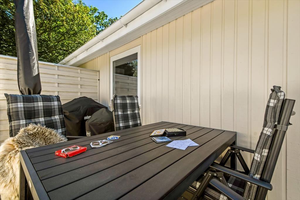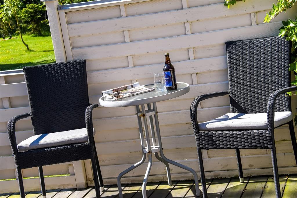 På solbeskinnede og sommervarme dage er det intet mindre end herligt at tilbringe tiden i det fri. Grunden er med sine 225 m2 ikke specielt stor, men pladsen er godt udnyttet, så der er en lille græsplæne og en grusbelagt indkørsel foruden grøn randbeplantning, som skærmer af mod syd og vest. Sidst, men ikke mindst, råder du over en skøn terrasse, der er helt aflukket og har flere gode opholdspladser mod øst, syd og vest. Hvis solen bliver for hed, kan du sætte dig ind under parasollens skygge, og sidst på dagen handler det bare om at tænde for grillen, hvis du vil lave mad under åben himmel.