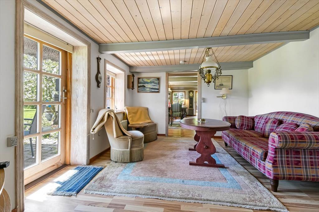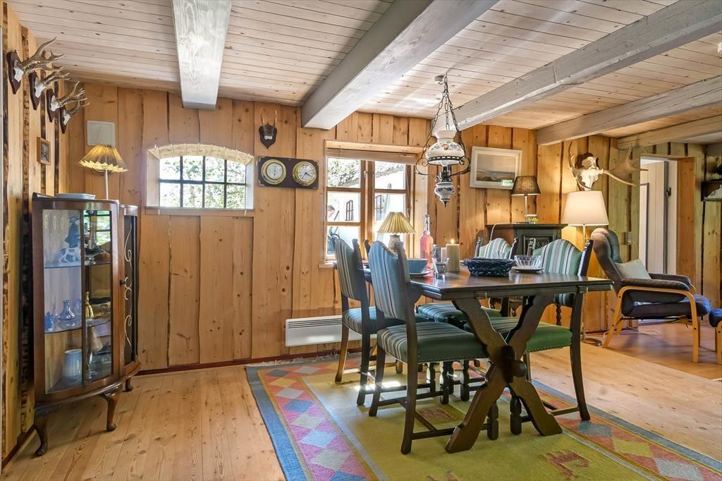 Sommerhuset er hyggeligt indrettet med en autentisk charme og lavt til loftet, der får dig til at sænke skuldrene i samme øjeblik, du træder ind. Her er ikke tale om moderne minimalisme, men om varme farver, personlige detaljer og en stemning, der inviterer til afslapning. I stuen er der god plads til at slænge sig med en kop kaffe og en bog, mens brændeovnens knitren skaber hygge, når mørket falder på. Når natten falder på, kan du falde i søvn til stilheden og vågne til morgensolens bløde stråler gennem vinduet – en oplevelse, som både to mennesker og to hunde vil sætte pris på.