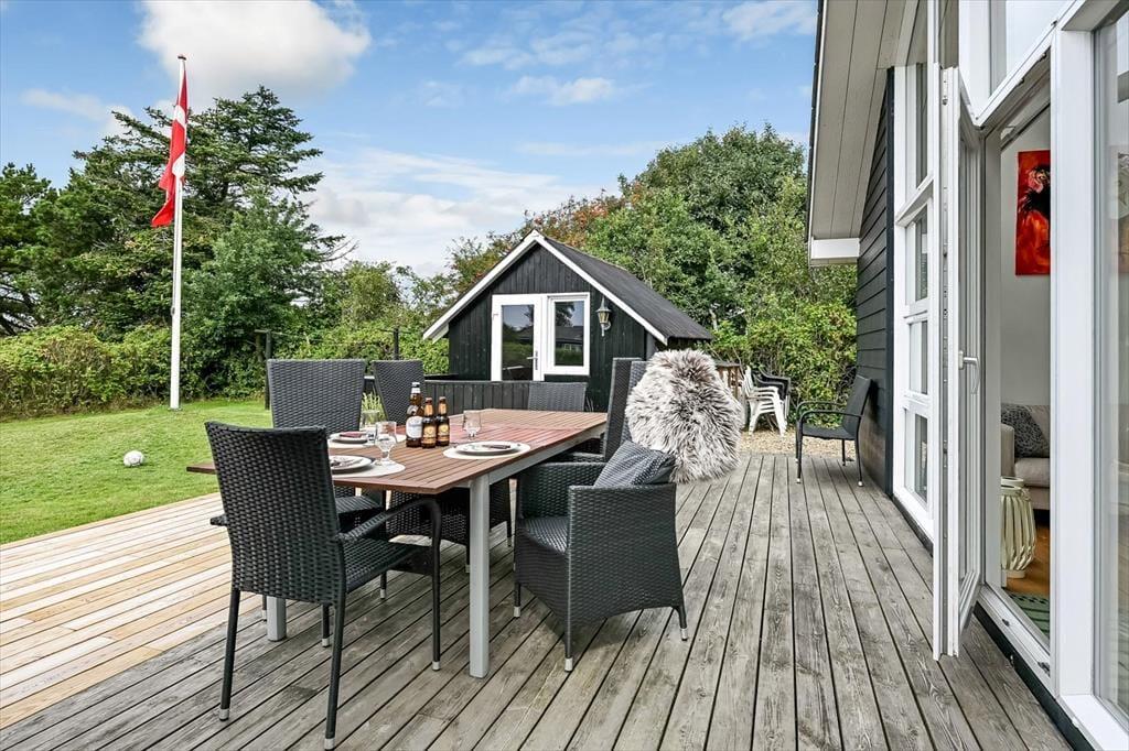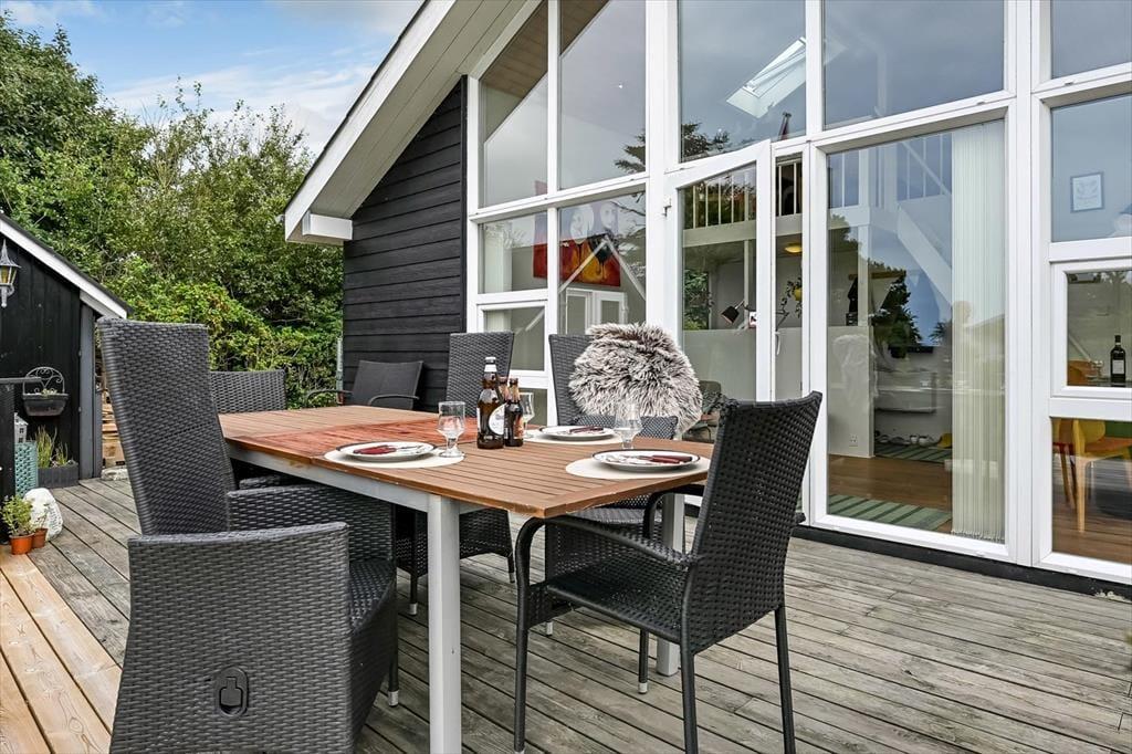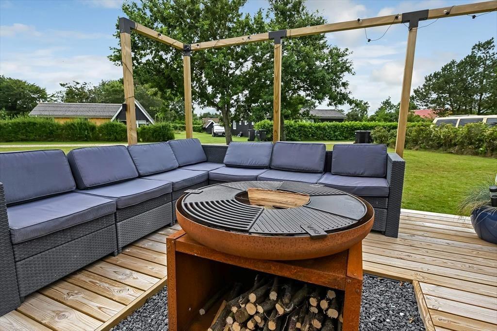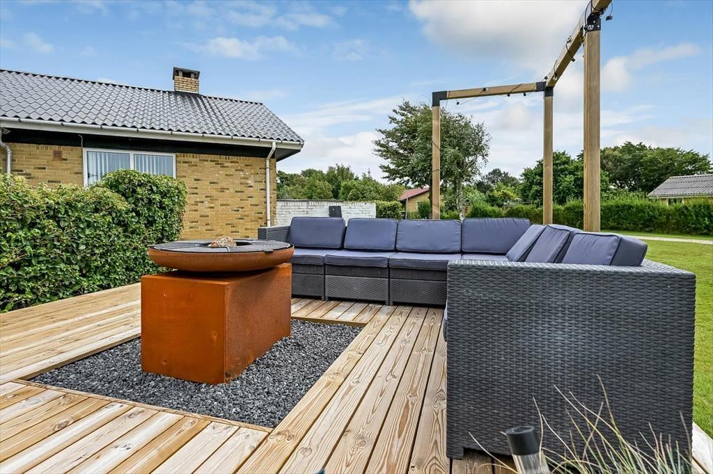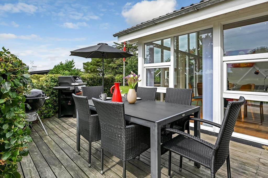 Sommerhusets grund er stor og velanlagt, og selv hvis I er mange samlet, har I godt med plads til at lege, spille bold og nyde det lune og solrige vejr på helt rolig vis. Den pæne græsplæne kan danne rammen om børnenes kolbøtter og andre fysiske udfoldelser, og omkring huset ligger der flere terrasser, så du og dine kære kan sætte jer der, hvor der er mest sol og læ. Parasollen kan du slå op, hvis I vil have skygge til sommerfrokosten, og hvis du elsker at grille, kan aftensmaden blive tilberedt i det fri hver eneste dag.