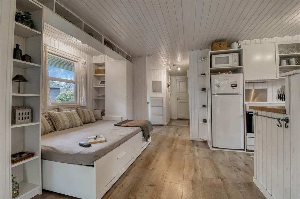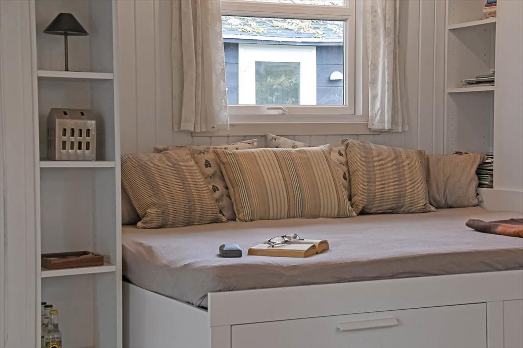 Haven er et lille paradis for både store og små. Græsplænen indbyder til leg og boldspil, og de mindste kan udforske sandkassen eller gynge under trækronerne. I hjørnet af haven finder du det hyggelige shelter, hvor du kan lave snobrød over bålet eller overnatte under stjernerne. På terrassen kan du tage dagen i dit eget tempo – fra morgenkaffen i den friske luft til aftengrillen, når solen går ned. Haven er afskærmet, så du kan nyde privatlivet og den rolige stemning fuldt ud.