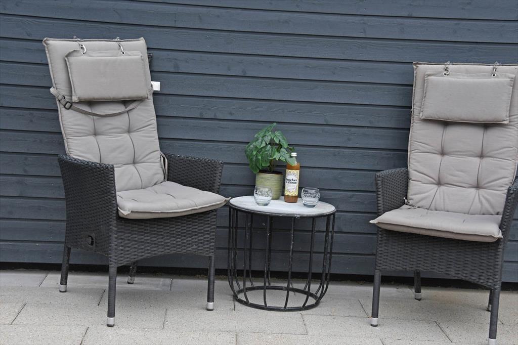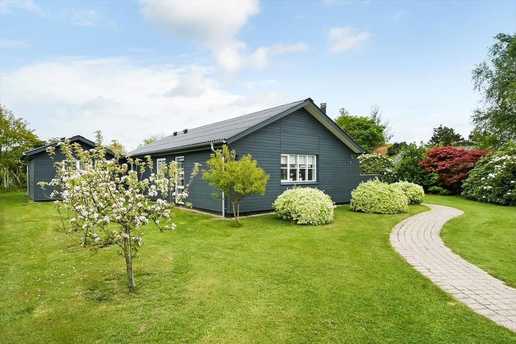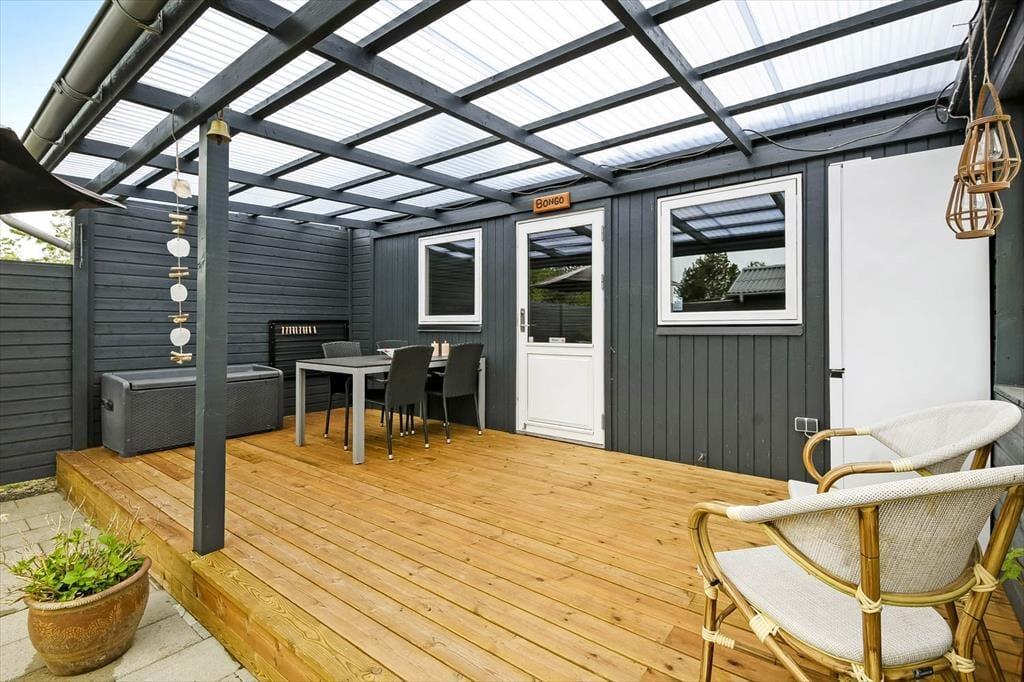 Udenfor venter en skøn lukket gårdhave, hvor du kan nyde solen i fuldkommen ro og mag. De to terrasser giver mulighed for at følge solens gang hele dagen – start morgenen med en kop kaffe på den ene terrasse og afslut dagen med en lækker grillmiddag på den anden. Børnene kan lege trygt på græsplænen, mens de voksne slapper af med en god bog eller et glas vin.