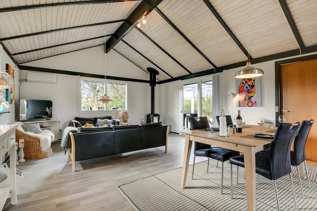 Træd ind i en verden af dansk hygge, hvor det høje loft til kip giver en luftig og lys atmosfære, og hvor brændeovnens knitren spreder varme på kølige aftener. Det store opholdsrum danner rammen om fælles måltider og hyggelige stunder med brætspil og film. Køkkenet ligger i åben forbindelse med stuen, så du kan nyde samværet, mens der tilberedes lækker mad. Huset byder på to soveværelser med bløde senge, der lover en god nats søvn, og et badeværelse med alt, hvad du behøver for en afslappende ferie. Her er plads til, at hele familien – inklusive to firbenede venner – kan slappe af og nyde hinandens selskab.