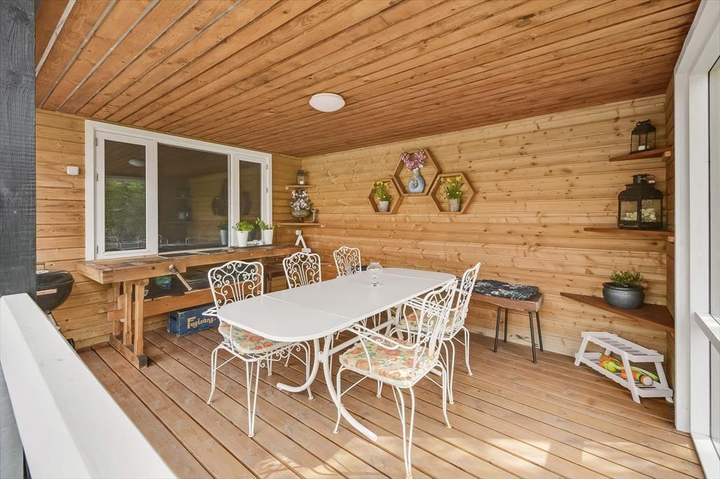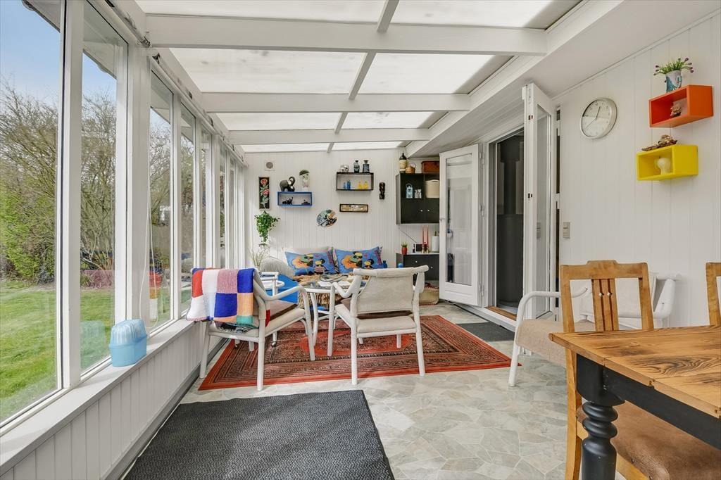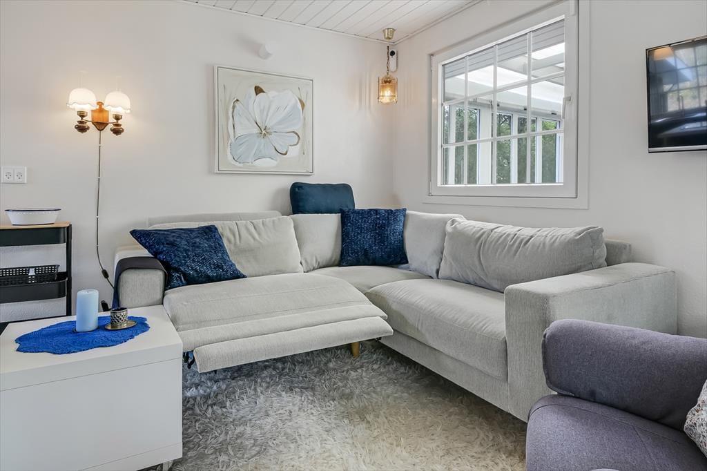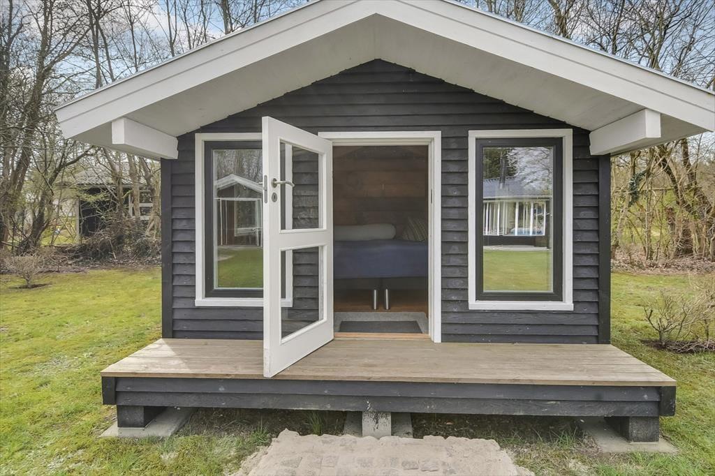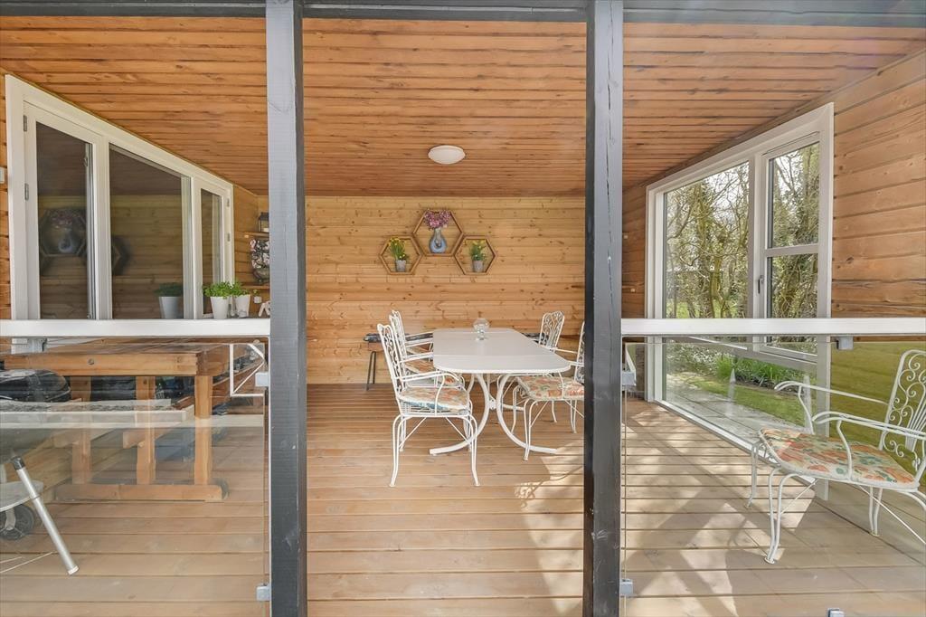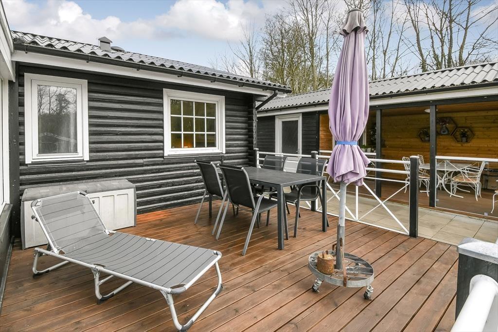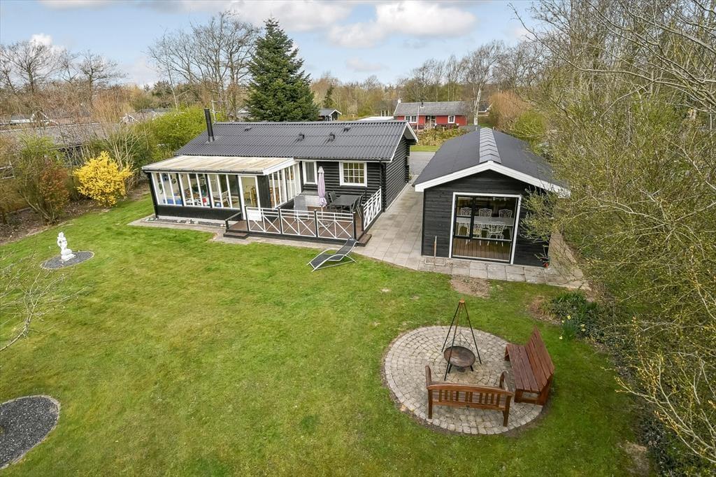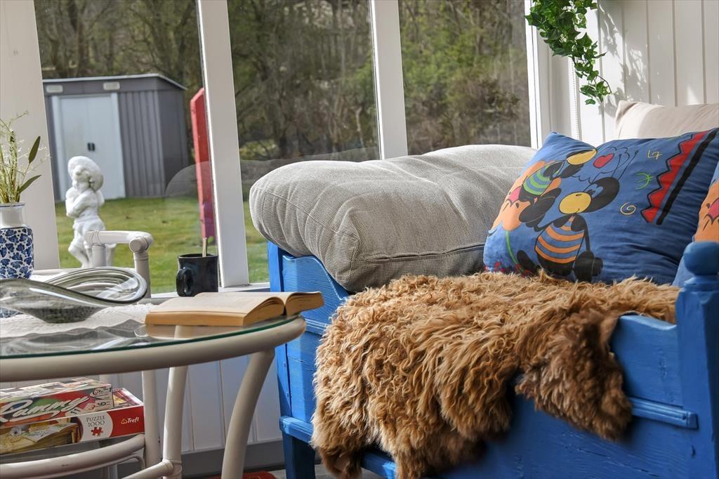 Der er noget særligt over at starte dagen med en kop kaffe i morgensolen, mens fuglene synger, og haven langsomt vågner. Det kan du glæde dig til her, for huset ligger i rolige omgivelser, hvor den grønne have er perfekt til afslapning og udeliv. Terrassen inviterer til lange, dovne eftermiddage med kortspil og snakke, og i haven er der god plads til, at hunden kan snuse rundt, mens du nyder stilheden og det høje himmelrum. Når solen står højt, og grillen dufter af sommer, kan du slå dig ned med familien og nyde måltider i det fri – og om aftenen, når duggen falder, kan du trække tæppet op over benene og se dagen ebbe ud med stjernerne som selskab.