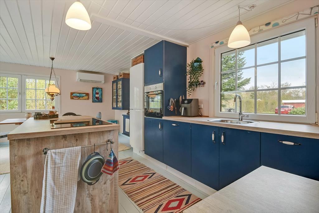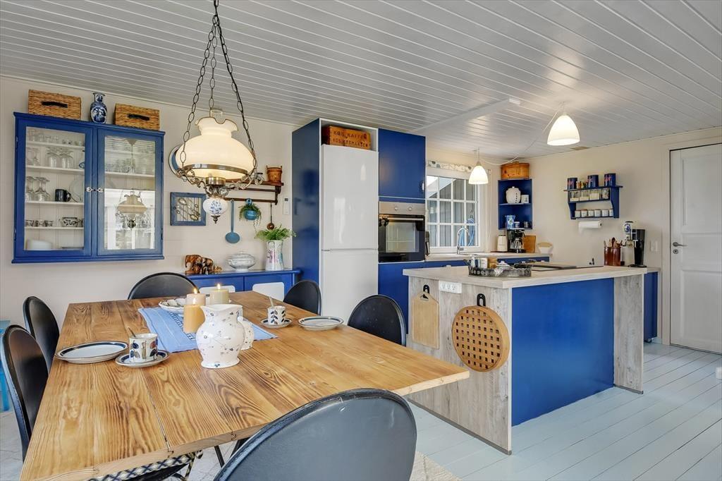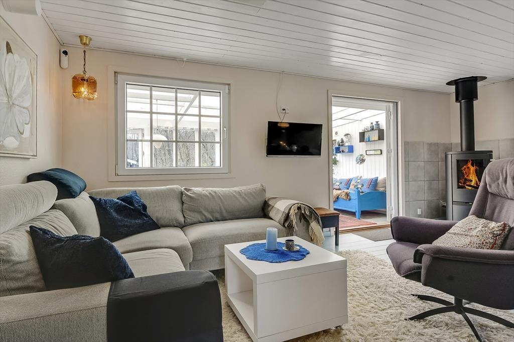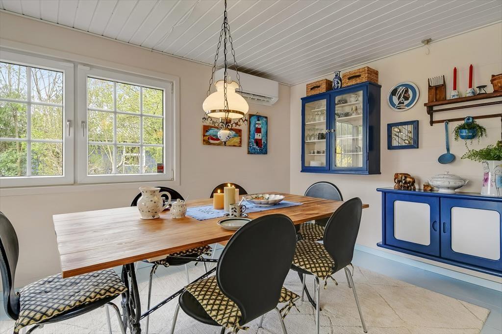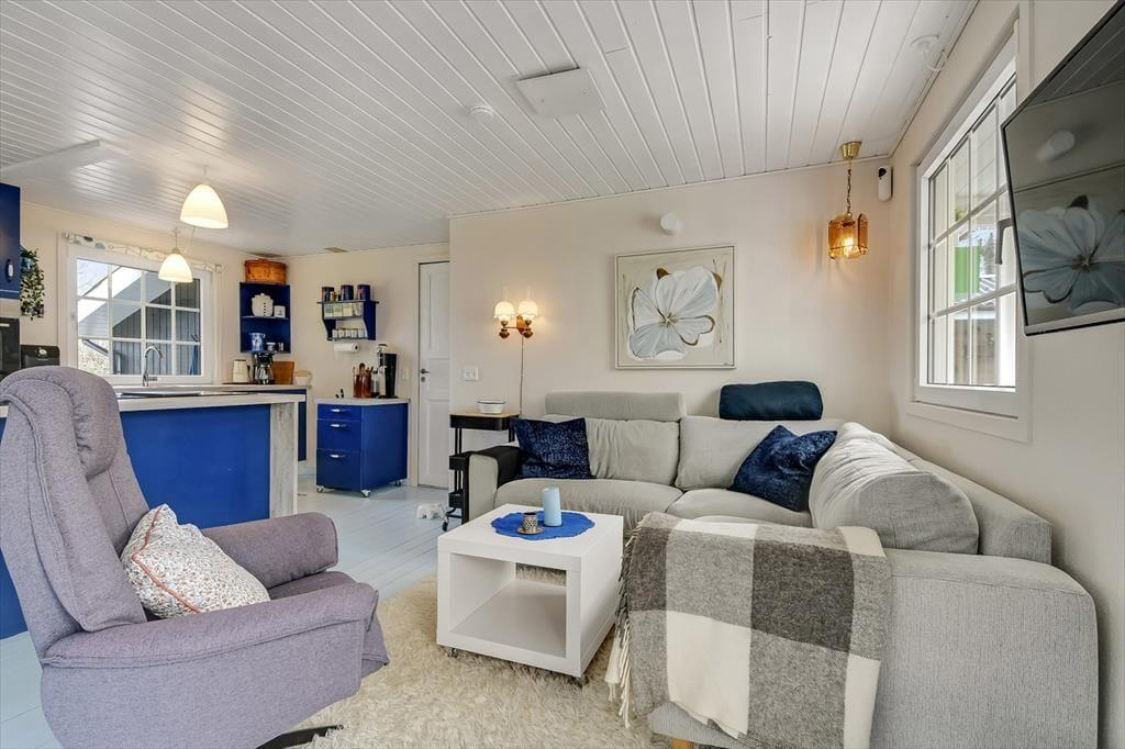 Der er en hjemlig og varm atmosfære i sommerhuset på Mågevænget 17. Indretningen er fuld af fine detaljer og personlige elementer, der med det samme giver dig fornemmelsen af at være landet et sted, hvor der er tænkt på både hygge og funktionalitet. I stuen kan du sætte dig til rette i sofaen og nyde synet af flammerne i brændeovnen, mens duften af aftenens middag breder sig fra det åbne køkken. Hver en krog i huset er udnyttet med øje for både komfort og charme, og du vil hurtigt finde din egen favoritplads – måske i lænestolen med en god bog eller ved spisebordet med udsigt til haven. Soveværelserne er enkelt og hyggeligt indrettede, og om sommeren kan feriegæsterne fordele sig mellem huset og det dejlige anneks, der indbyder til fredelige nætter med åben dør og måneskin i baggrunden.