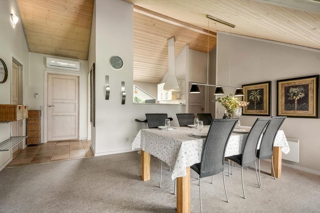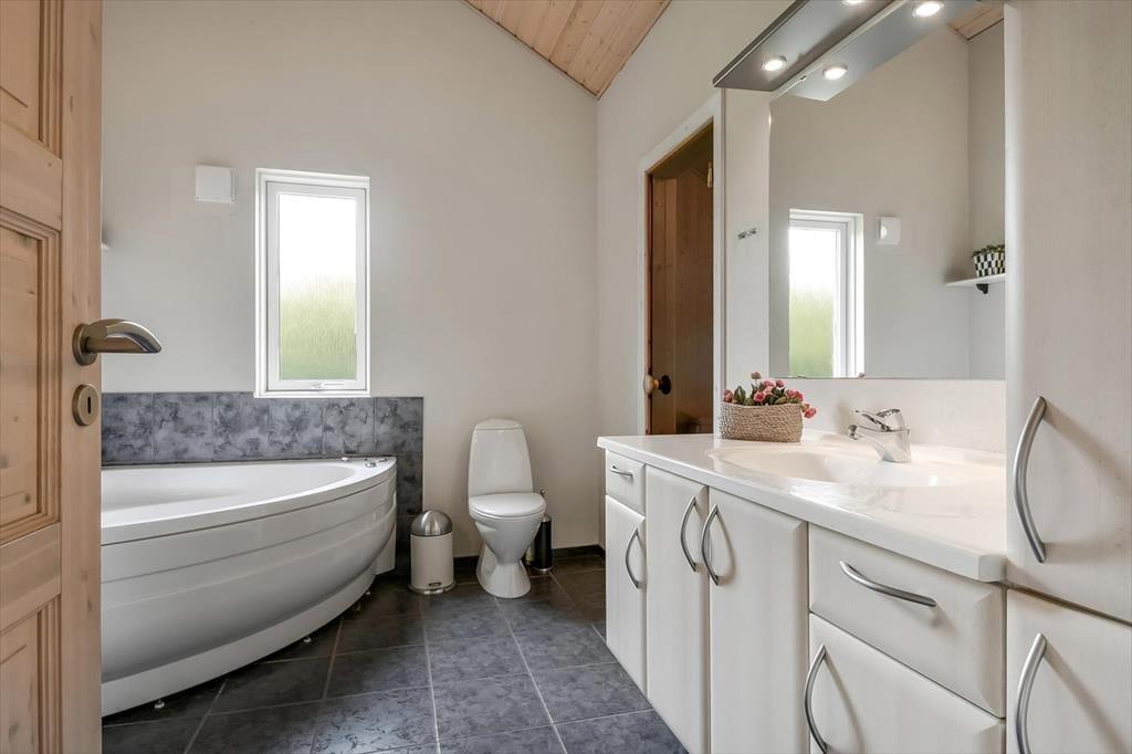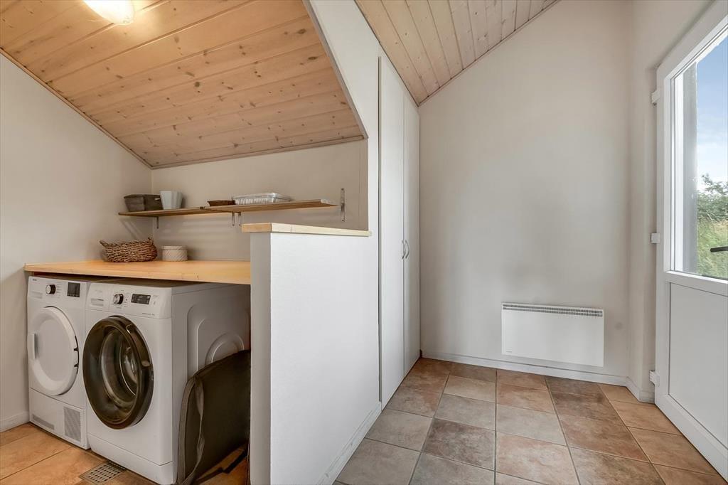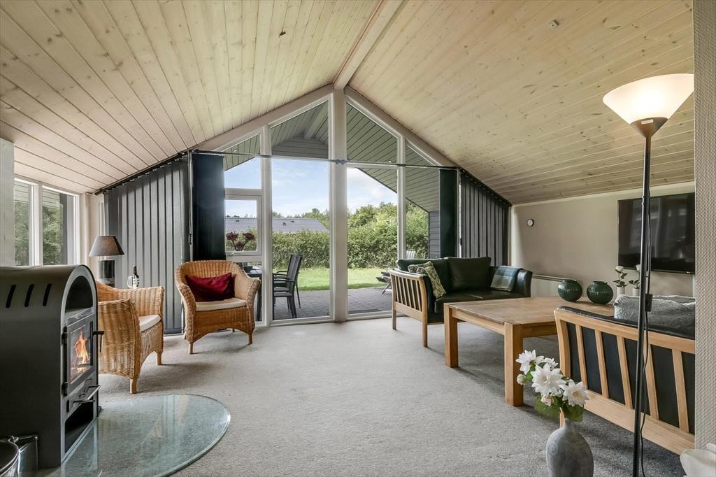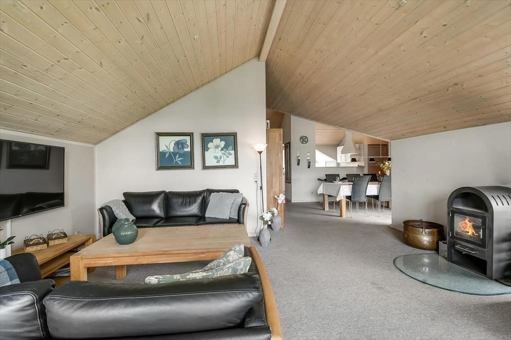 Indendørs byder sommerhuset på en varm og indbydende atmosfære, hvor I straks vil føle jer hjemme. Stuen er husets naturlige samlingspunkt med bløde møbler, spiseplads og åbent køkken, så der er plads til samvær uanset, om der bliver lavet mad, spillet kort eller fortalt gode historier. På de køligere dage kan I tænde op i brændeovnen og mærke varmen brede sig, mens regnen stille trommer på ruderne. Badeværelset er rummeligt og en af husets store fordele – her kan I nemlig forkæle jer selv med afslappende stunder i spabadet eller en tur i saunaen, når kroppen skal varmes igennem efter en lang dag ved fjorden. Ydermere er her også et ekstra toilet. Hele huset emmer af hygge og nærvær og skaber de perfekte rammer for en ferie med plads til både afslapning og samvær.