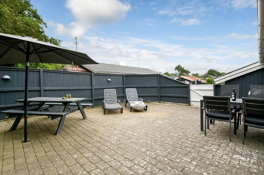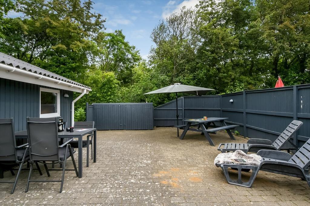 Terrassen udenfor er den oplagte base for afslapning i solens stråler – og herfra kan du følge med i det stille liv i Bork Hytteby, hvor ferieglade gæster går forbi på vej til fjorden eller legepladsen. Huset er placeret på en lille grund, men den er udnyttet med omtanke, så du både kan finde sol og læ, når du har brug for det. Duften af grillmad og lyden af en glad hund, der udforsker området, blander sig med fuglefløjt og den blide brise fra fjorden. Hvis du har børn med, er legepladsen i området et stort plus – og selv som voksen kan du glæde dig over den stemningsfulde atmosfære, som præger hele Hyttebyen. Det er ferie i sin enkleste og mest afslappede form.
