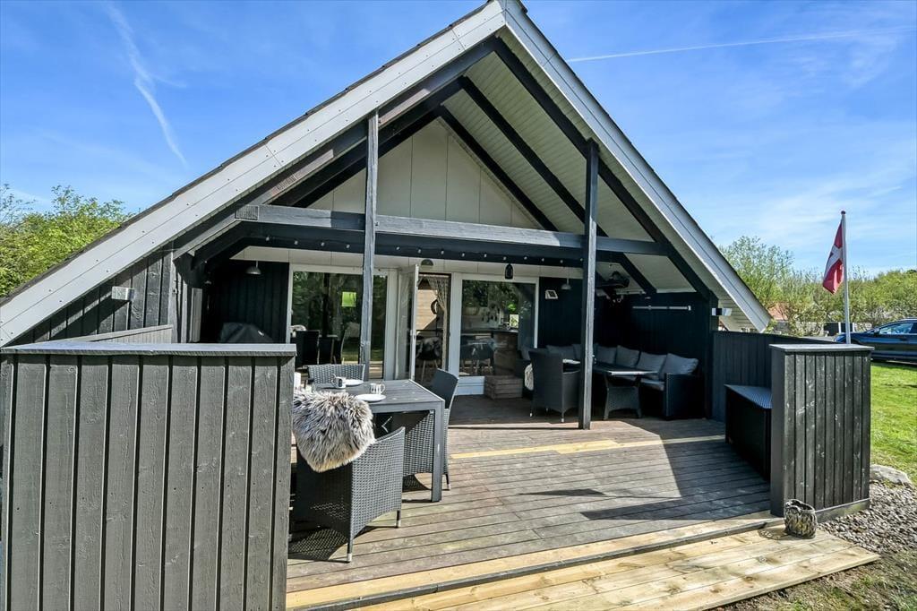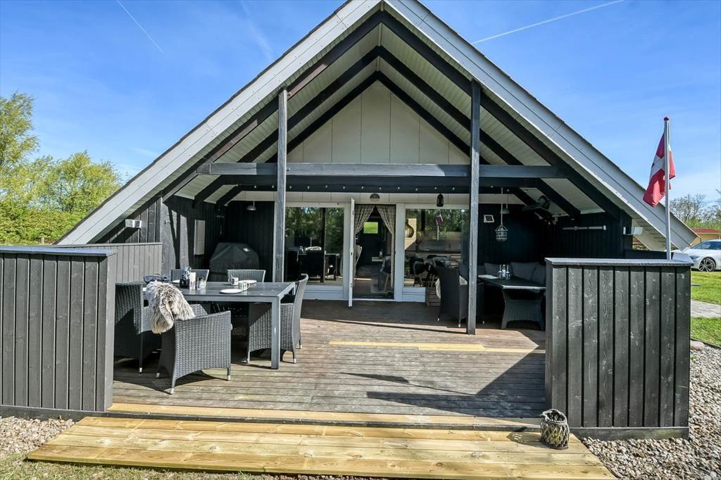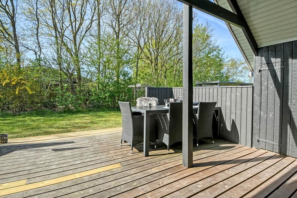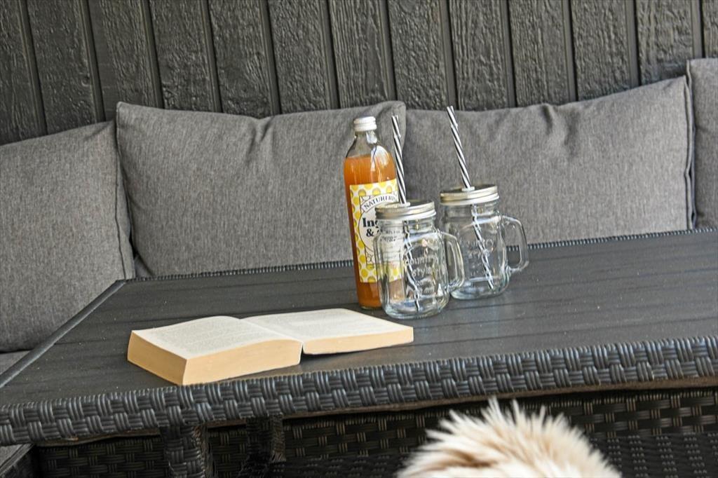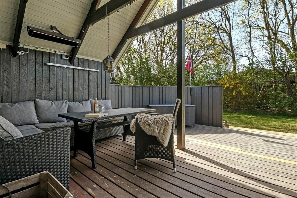 Udenfor venter en dejlig og ugeneret terrasse, hvor I kan nyde livet i læ for vinden og med sol det meste af dagen. Her er det oplagt at starte dagen med morgenkaffen i hånden og fuglesang i ørerne, mens børnene leger på plænen, og hundene trygt kan gå på opdagelse i haven. Når solen står højt, kan I rykke ud med frokosten, lægge jer til rette med en god bog eller bare nyde den stille stemning, som kun et sommerhusområde som Bork Havn kan tilbyde. Og når aftenen falder på, er det helt oplagt at tænde op i en grill og spise under åben himmel, mens dagens sidste solstråler farver himlen gylden.