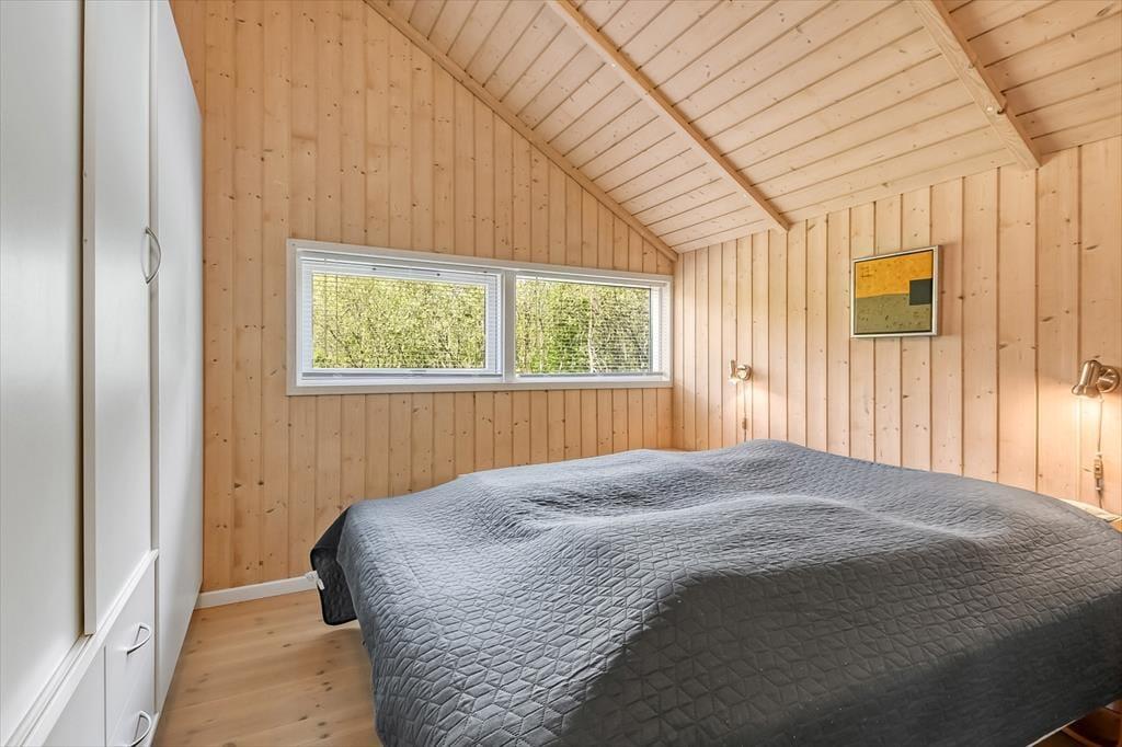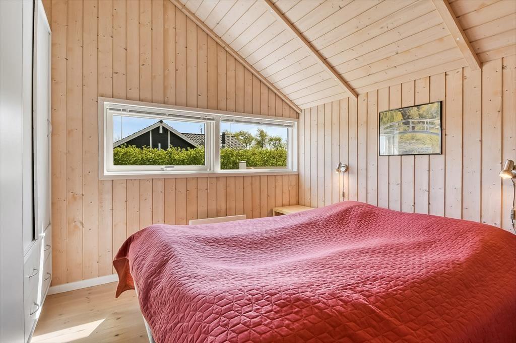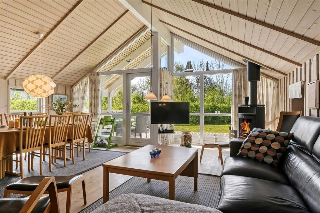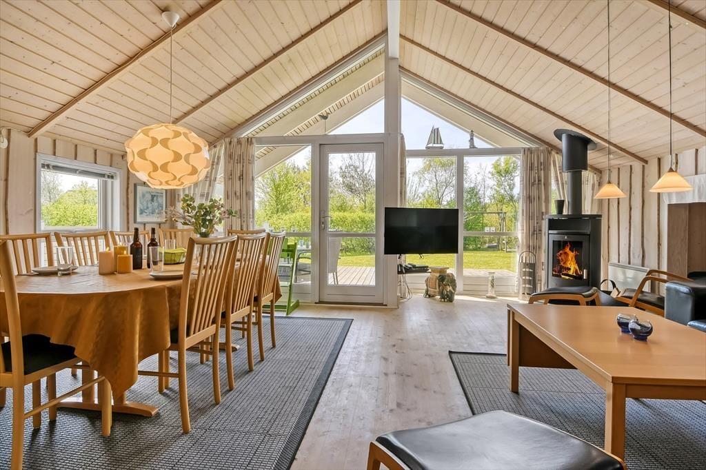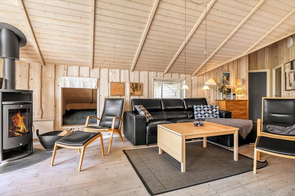 Indendørs byder sommerhuset på gode rammer til samvær og hyggelige stunder. Den åbne stue og køkkenalrum danner et naturligt samlingspunkt, hvor du kan dække op til måltider, læne dig tilbage med en god bog eller blot nyde varmen fra brændeovnen på kølige dage. Vinduerne lukker dagslyset ind og skaber en let og behagelig atmosfære, der indbyder til ro og afslapning. De mange sovepladser gør det muligt at være flere samlet, uden at gå på kompromis med komforten, og planløsningen giver mulighed for privatliv og nærvær på samme tid. Det er nemt at falde til og skabe nye ferieminder i de hjemlige omgivelser.