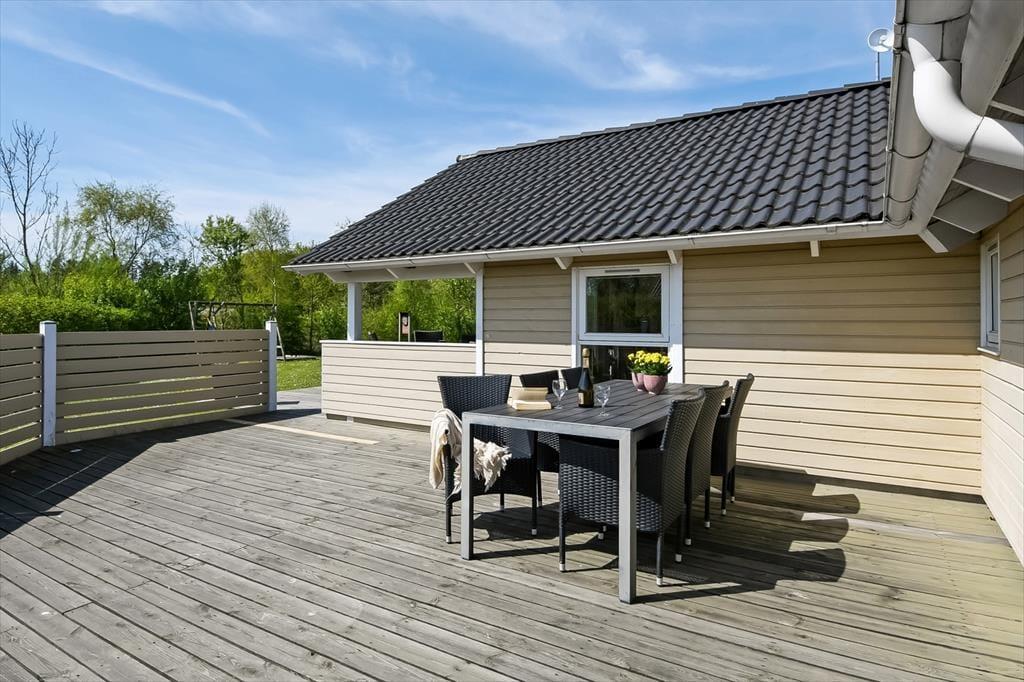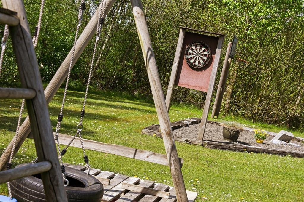 Udenfor venter en have med plads til leg, afslapning og udeliv. Græsplænen indbyder til spil og boldlege, og børnene vil hurtigt finde glæde ved gyngestativet eller en runde dart. De voksne kan slå sig ned på terrassen, nyde en kop kaffe i morgensolen eller forberede aftensmaden på grillen, mens børnene leger i nærheden. Fordi huset ligger i bunden af et lukket vænge, kan du nyde udelivet uden forstyrrelser og med god afskærmning fra naboer. Det giver plads til at lade roen sænke sig og feriestemningen tage over – uanset om dagen står på aktivitet eller afslapning.