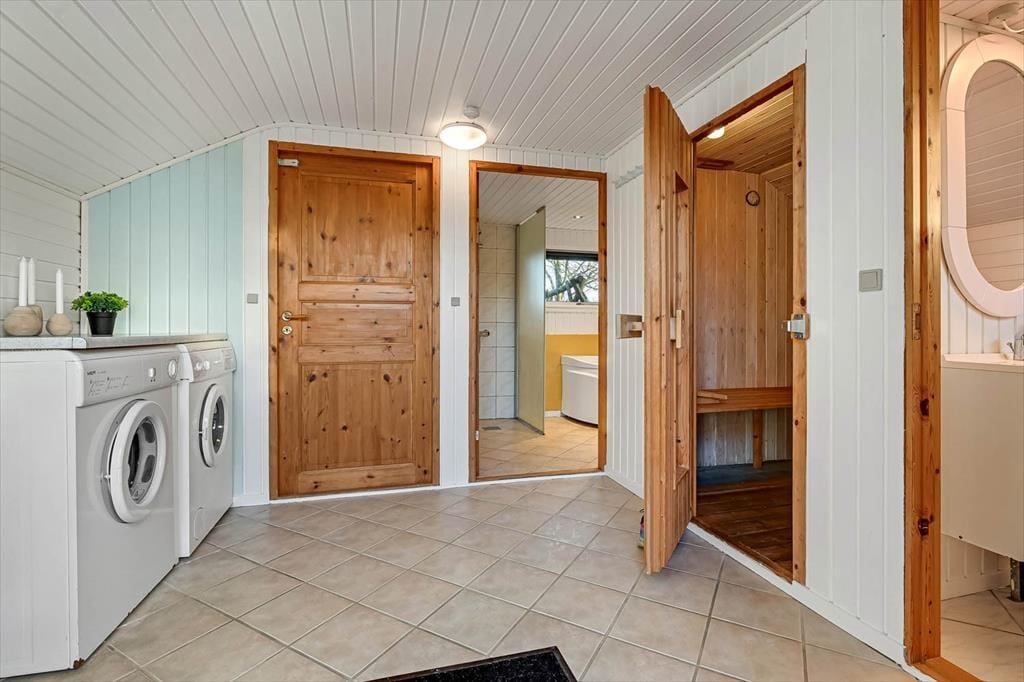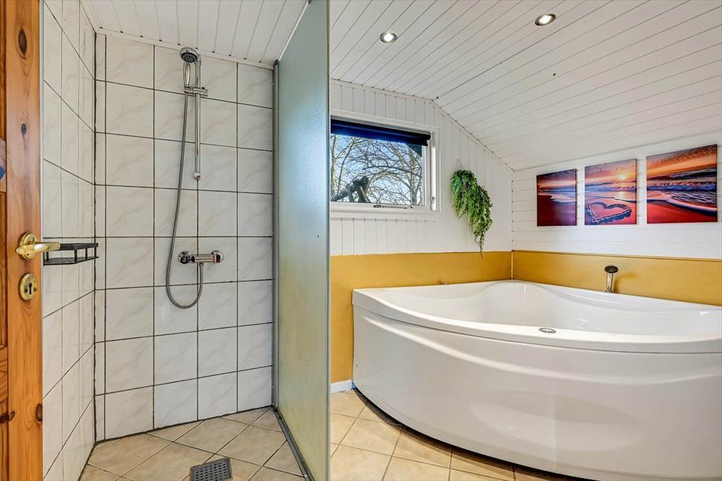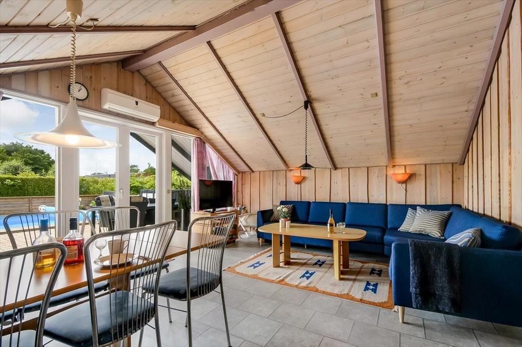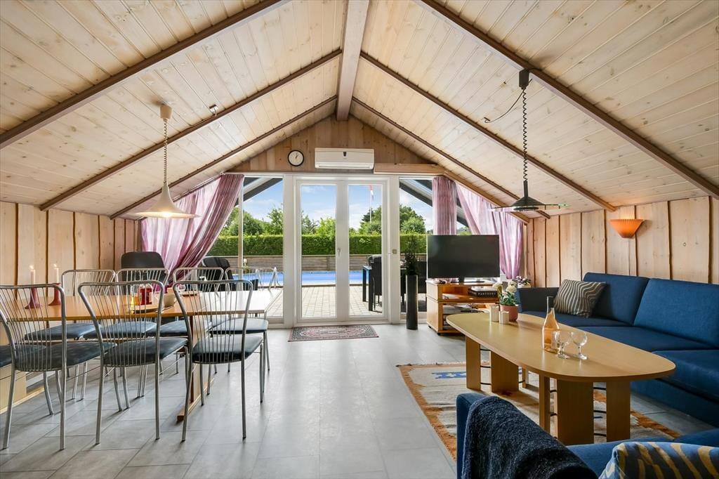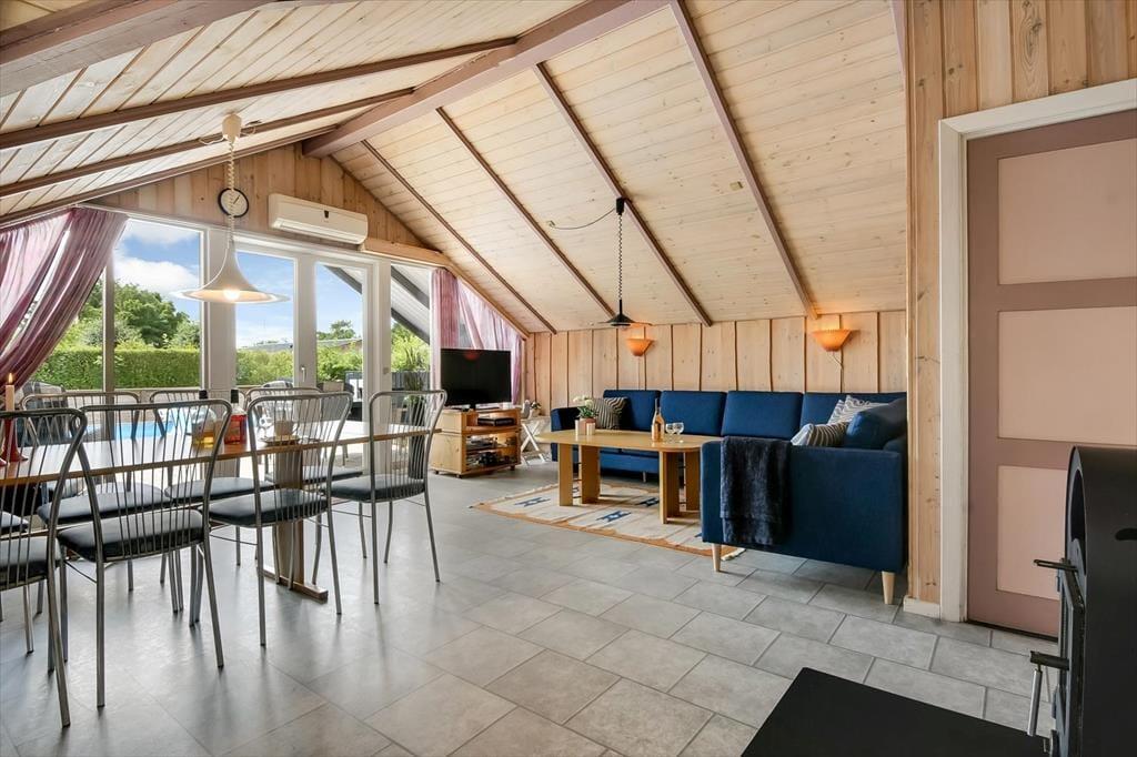 Træder du indenfor i sommerhuset, mærker du straks roen sænke sig. De lyse opholdsrum indbyder til samvær og afslapning, og du kan glæde dig til at tænde op i brændeovnen, mens duften af aftensmad breder sig fra det åbne køkken. Det er let at forestille sig en stille morgen med kaffe og morgenbrød rundt om spisebordet – og lige så let at se børnene sidde i sofaen og læse en tegneserie eller tage en lur i bløde puder. Når kroppen trænger til lidt ekstra forkælelse, kan I lægge vejen forbi det separate wellnessanneks, hvor et badeværelse med både spabad og sauna venter på jer. Her kan skuldrene sænkes helt, mens dampen stiger og dagens indtryk falder til ro.