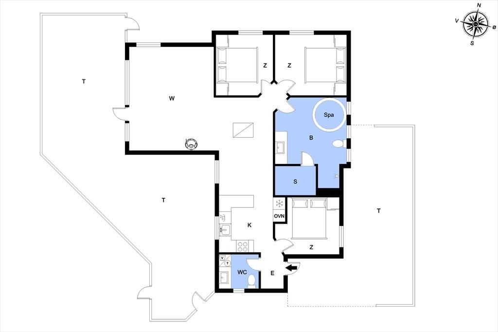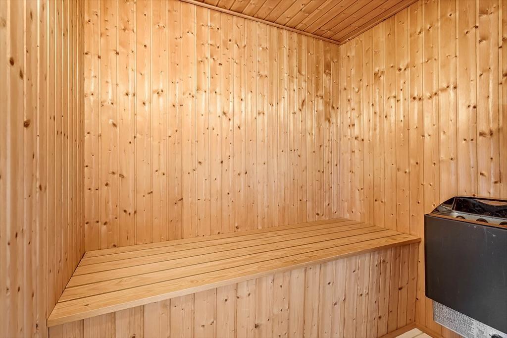 Indenfor møder du en lys og indbydende atmosfære, hvor der er kræset for detaljerne i indretningen. Det veludstyrede køkken ligger i åben forbindelse med opholdsrummet, hvilket giver jer mulighed for at være sammen om madlavning, måltider og hygge, uanset hvor i rummet I befinder jer. I sofahjørnet kan I samle jer til brætspil eller en god film, mens ilden knitrer i brændeovnen og spreder varme og hyggelig stemning. Badeværelset er en sand oase, hvor I kan læne jer tilbage i spabadet og nyde boblernes massage, inden en tur i saunaen fuldender den afslappende ferieoplevelse. Alt i alt danner sommerhuset de perfekte rammer for, at hele familien kan føle sig hjemme og nyde hinandens selskab i en afslappet atmosfære.