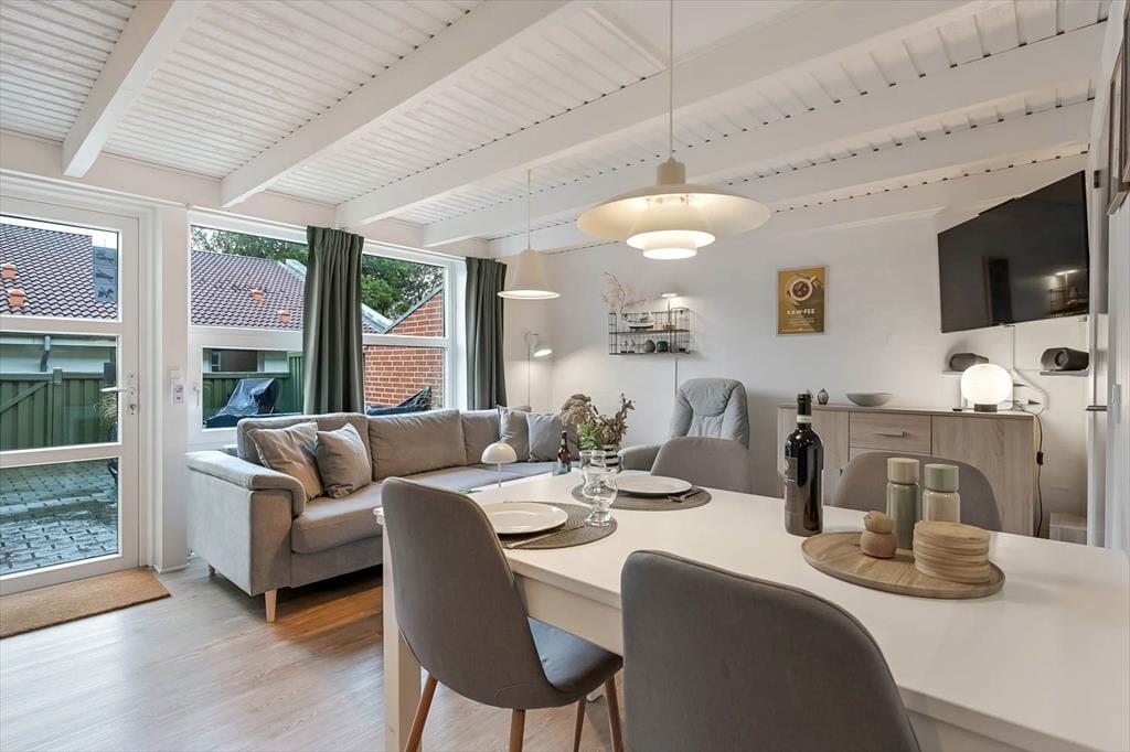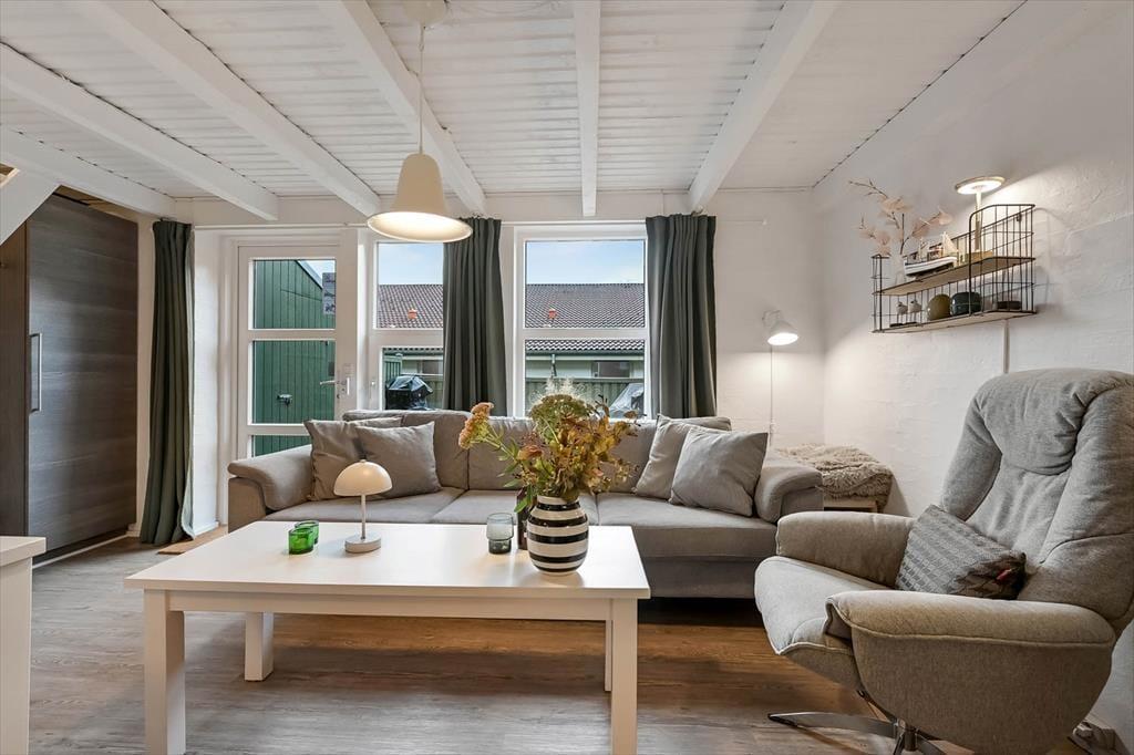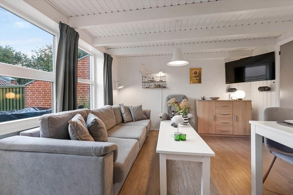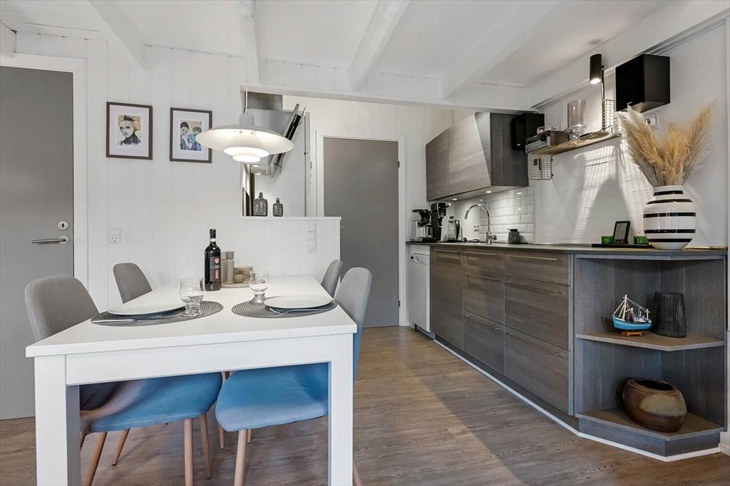 Når du træder ind i ferielejligheden, mødes du af en indbydende og gennemført moderniseret indretning, hvor det nye danner ramme om frisklavet morgenmad eller aftensmad lavet i fællesskab, mens samtalerne flyder på tværs af det lyse opholdsrum. Stuen har en afslappet atmosfære, hvor du nemt kan synke ned i sofaen efter en dag ved fjorden, eller hvor familien kan samles om brætspil, kort eller en god film. Ferielejligheden er indrettet med omtanke, så alle har mulighed for at finde ro og trække sig tilbage, og detaljerne er udvalgt for at skabe den behagelige, lette stemning, som gør ferieoplevelsen fuldendt. Her bliver det hurtigt tydeligt, at ferien handler om at være sammen – uden forstyrrelser og med masser af plads til netop dét, I har lyst til.