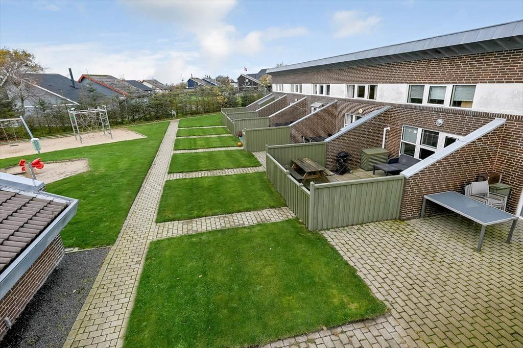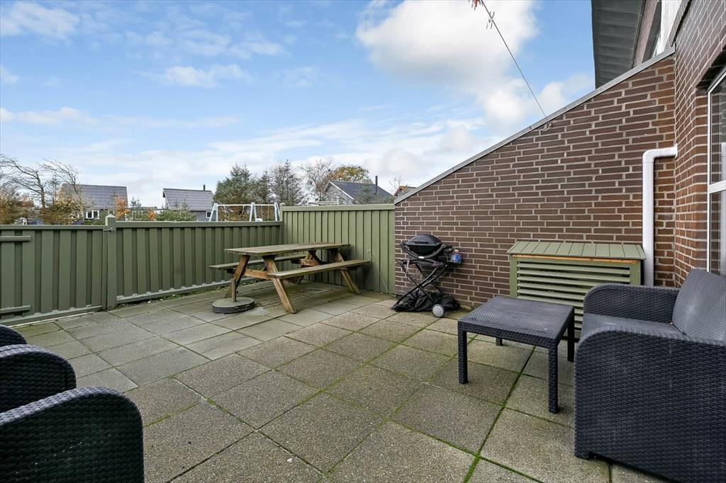 Ferielejlighedens indhegnede terrasse er et af stedets helt store plusser, særligt for jer, der har hunden med på ferie. Her kan familiens firbenede ven bevæge sig frit, mens I andre slapper af med en kop kaffe og mærker solen varme kinderne. Terrassen er et skønt sted at nyde dagens rolige stunder – fra morgenens første lys til de lange, lyse sommeraftener. Udenfor lige ved lejligheden ligger en offentlig legeplads, som helt sikkert vil vække begejstring hos de yngste gæster. De kan løbe direkte ud for at lege, mens de voksne følger med fra terrassen eller bare nyder roen i det grønne område omkring lejlighedskomplekset. Når vejret kalder på vandpjask, ligger svømmehallen blot få skridt væk, og som gæst har du fri adgang til bassinerne, der er forbeholdt lejlighedernes gæster.