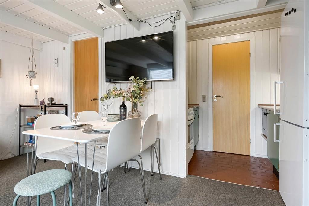 Når du træder ind i ferielejligheden, mødes du af en lys og rar atmosfære, hvor feriestemningen hurtigt falder på plads. Indretningen er enkel og hyggelig, og du vil hurtigt finde dine egne små yndlingssteder – hvad enten det er sofahjørnet, hvor du kan lade roen sænke sig efter en frisk gåtur langs Ringkøbing Fjord, eller spisepladsen, hvor dagens måltider indtages, mens snakken går frit. Her er god plads til, at fire personer kan nyde hverdagen langt væk fra hverdagens travlhed, og det er nemt at skabe rammerne for både afslapning og nærvær. På de stille morgener kan du lade døren stå på klem og høre fuglene synge udenfor, mens du gør klar til endnu en dejlig feriedag i Bork Havn.