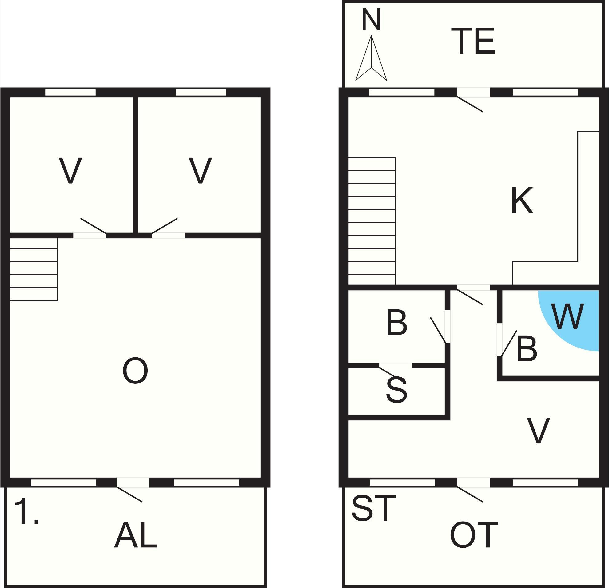 1 Opholdsstue: Brændeovn, stereoanlæg med cd, dvd-afspiller, tv, kabel-tv