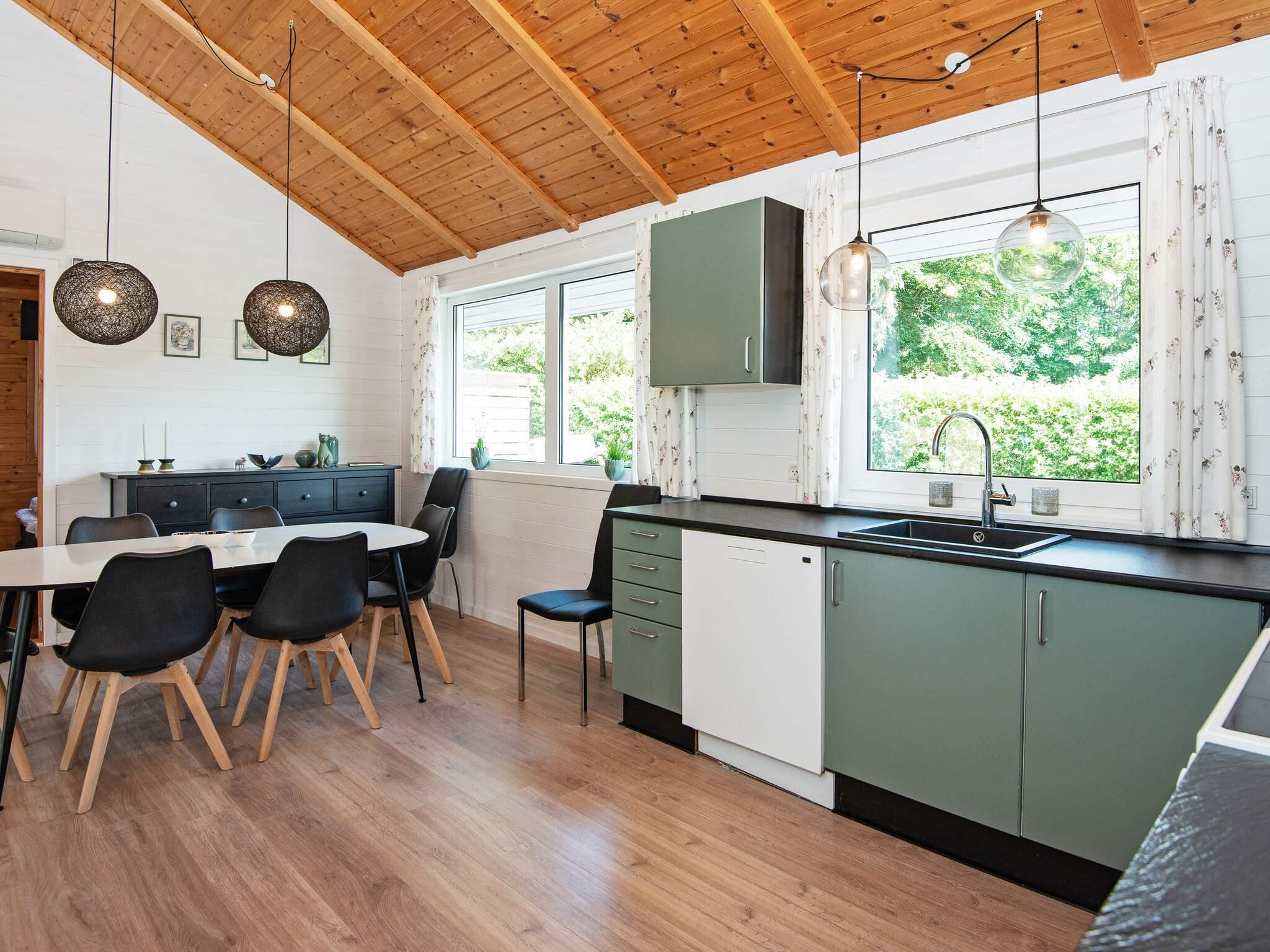 Udenfor er der direkte adgang til en rummelig træterrasse, delvist overdækket, fra stuen. Terrassen byder på masser af plads til at slappe af, nyde måltider eller blot nyde den friske luft, og du kan som regel finde et beskyttet opholdsområde til at nyde fredelige stunder. Med sin gennemtænkte indretning, wellness-faciliteter og nærhed til fjorden er dette feriehus ideelt for familier eller grupper, der søger både afslapning og aktivitet. Bemærk venligst, at udlejning til ungdomsgrupper ikke er tilladt.