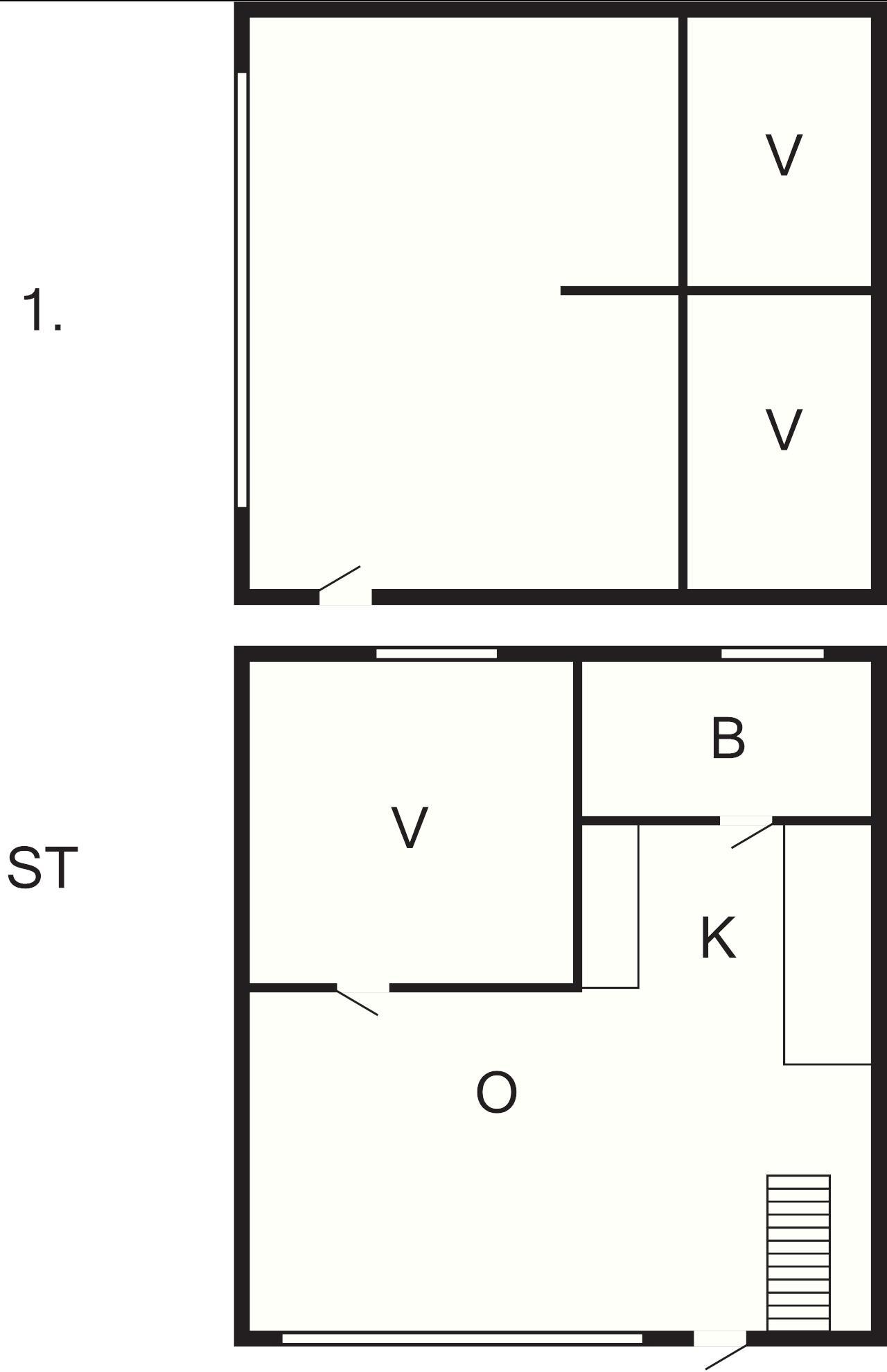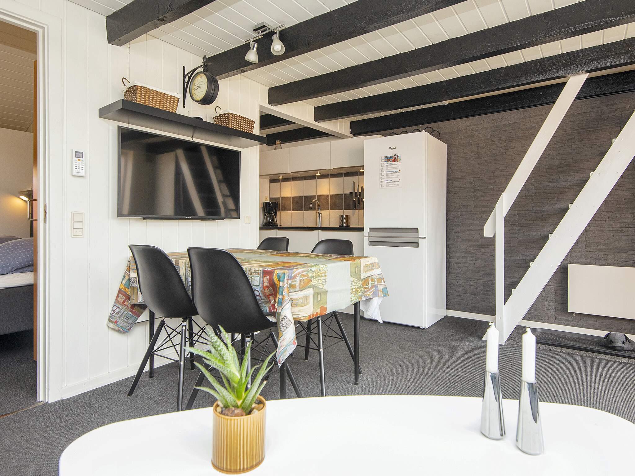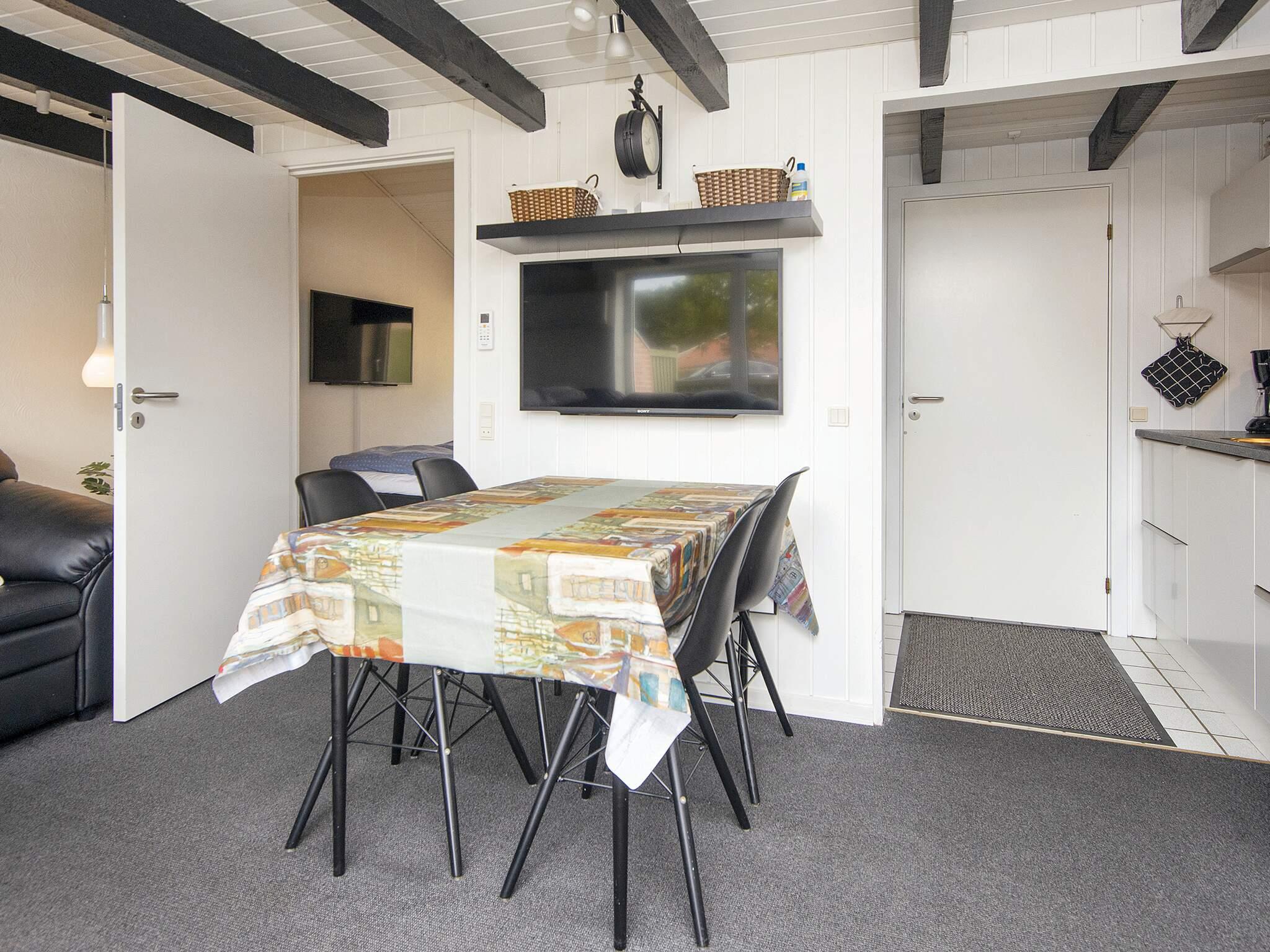 I stueplan finder I et veludstyret køkken åbent til tv-stuen, som også har spiseplads, samt badeværelse med bruser og soveværelse med dobbeltseng og tv. Ovenpå på første sal er der soveværelse med dobbeltseng og enkeltseng.