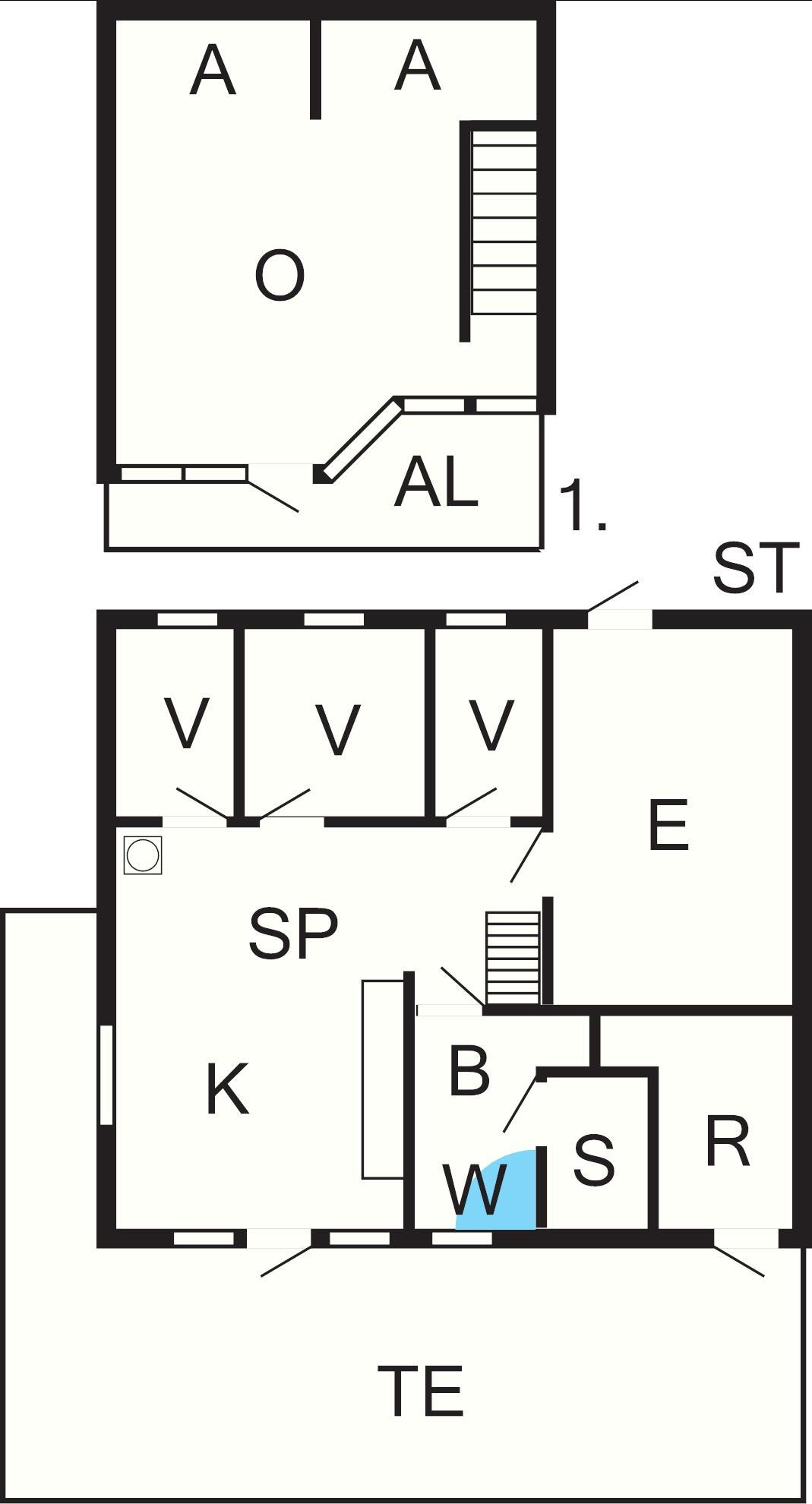 I stuen er der 2 alkover, hvor I kan tage et hvil efter en begivenhedsrig dag. På 1. sal er der fra stuen en skydedør til en 14 m² delvist overdækket altan, hvorfra I kan nyde aftensolen gå ned i vandet, mens I indtager aftensmaden eller nyder en forfriskning på altanen. I stueetagen er der gulvvarme i køkken/alrum, badeværelse og saunaen. I det store køkken/alrum er der skydedør til en stor, vestvendt terrasse og til haven. Fra spisebordet i køkken/alrummet er der udsigt til vandet.