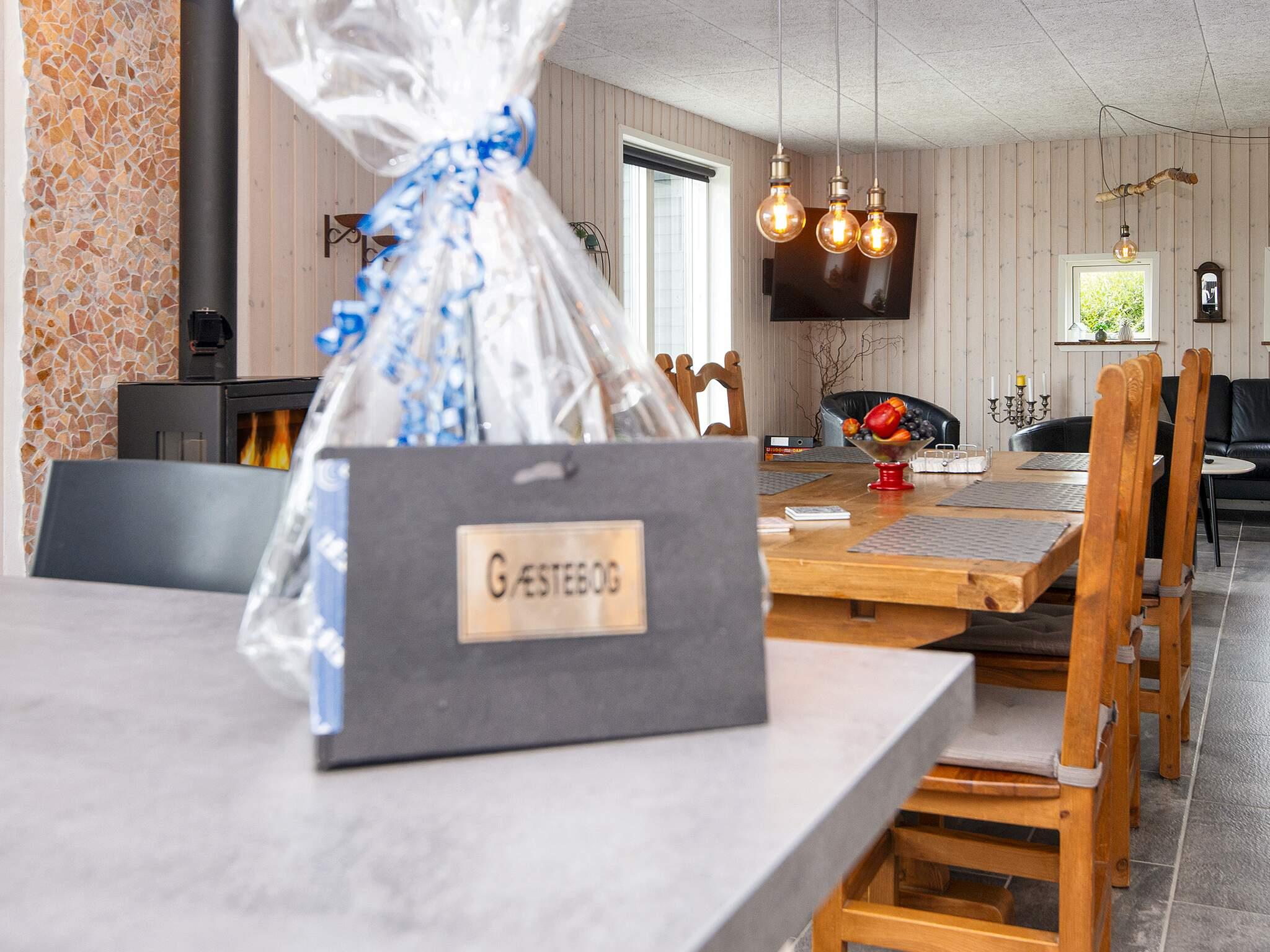 Inde i sommerhuset finder I et dejligt åbent køkken og stue med brændeovn centralt placeret i værelset. Her kan du nyde den stemning, brændeovnen skaber, uanset om du står i køkkenet og laver mad eller slapper af i stuen med en god bog. Der er også en vinkøler for at sikre, at vinen har den rigtige temperatur til en god middag. WIFI i hele huset.