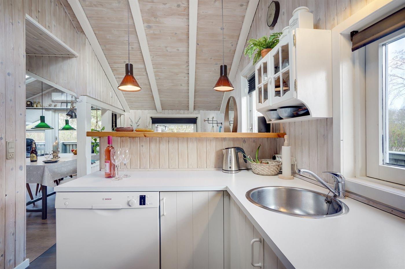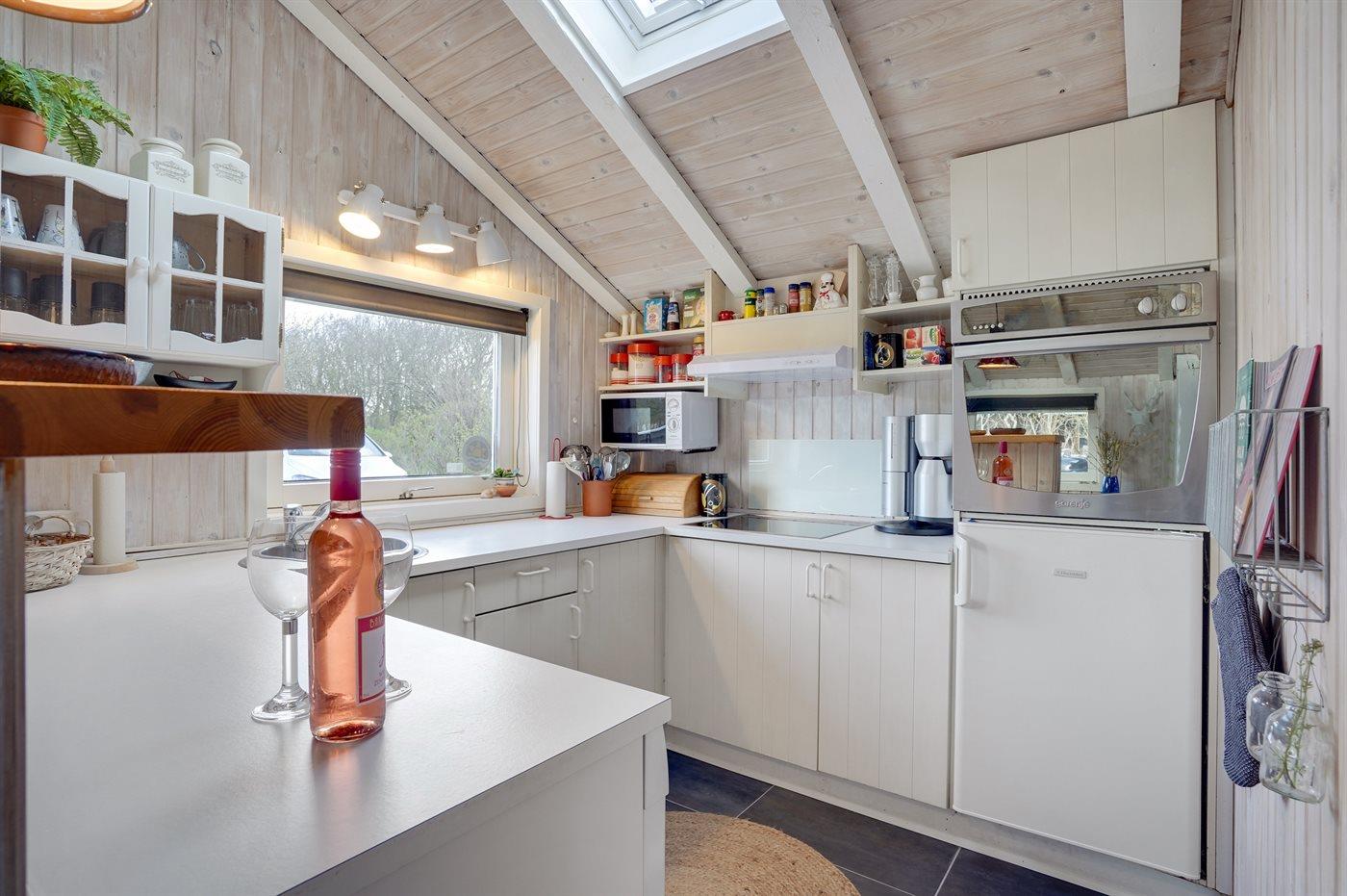 Køkkenet er udstyret med 1 køleskab. Der er 4 induktionskogeplader, varmluftovn, mikrobølgeovn samt opvaskemaskine. Der er ekstra køleskab i vaskerummet.