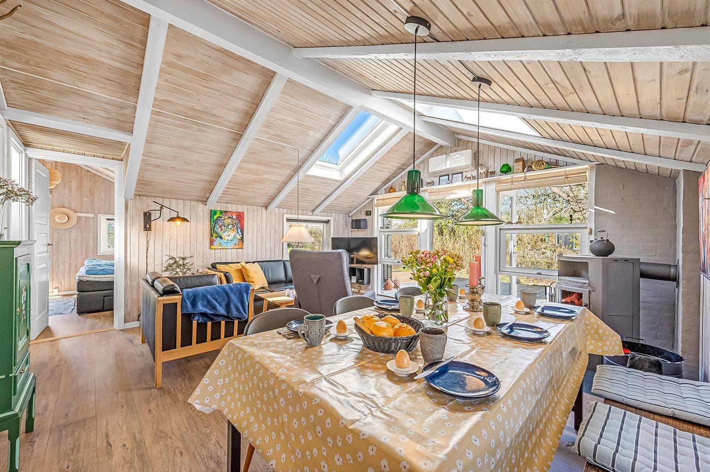 Indenfor indbydes der til hygge og samvær med et brætspil ved spisebordet, eller med en god bog foran brændeovnens knitren. Sommerhuset blev i 2024 opgraderet med et nyt, smukt og stilfuldt indrettet badeværelse. Udenfor kan du slappe af på den store nye (2025) træterrasse, hvor du altid kan finde læ i de forskellige hyggekroge.