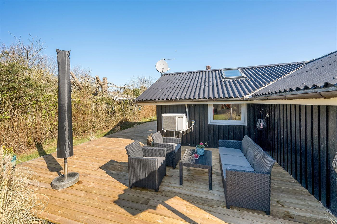 Hyggeligt sommerhus i Hemmet med stor terrasse, tæt på Ringkøbing Fjord og gode surfmuligheder.