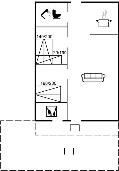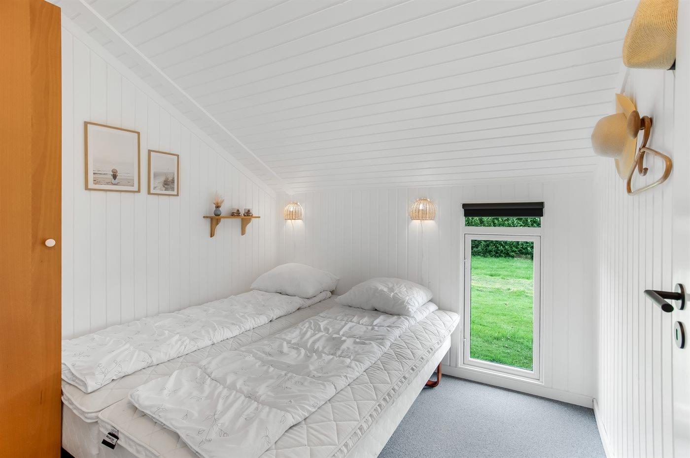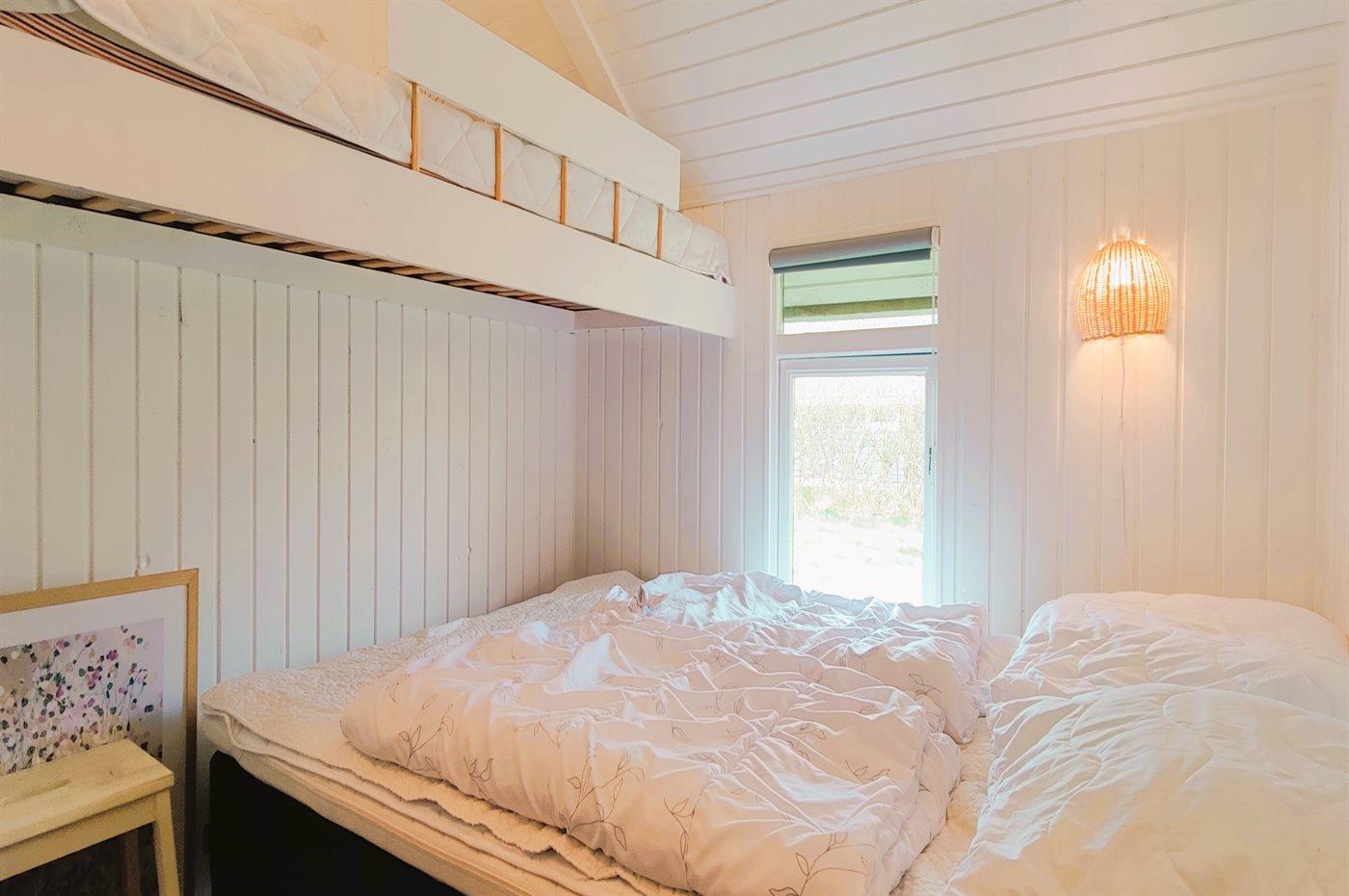 Der er i alt 2 soveværelser. Sovepladserne fordeler sig på: 4 sovepladser i dobbeltsenge.1 soveplads i køjeseng.