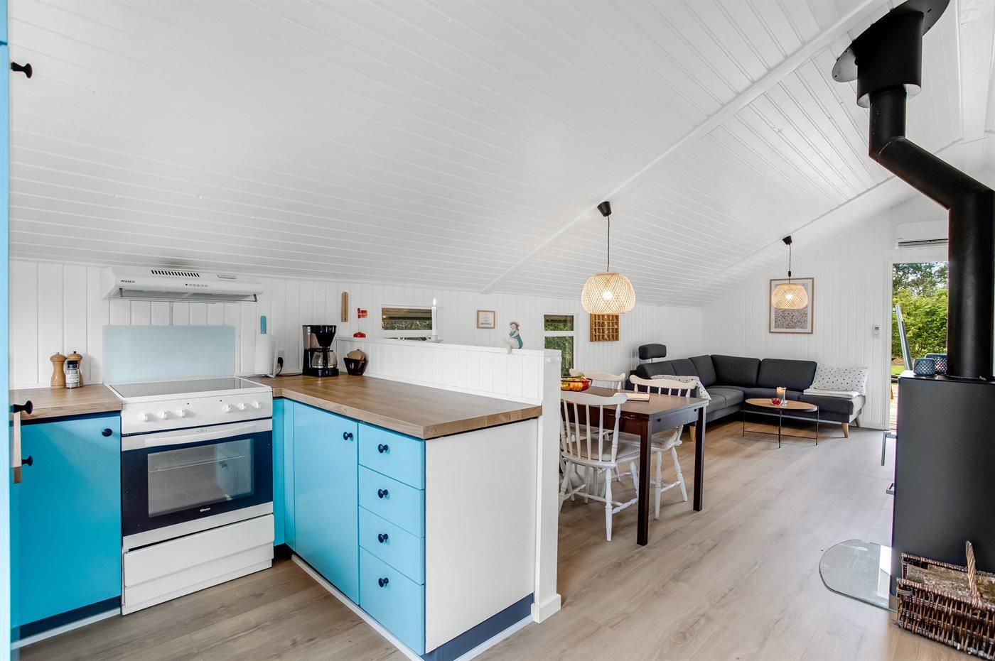 Sommerhuset egner sig til 5 personer. Ferieboligen er på 50 m² og er bygget i 1985. Det er tilladt at medbringe 2 husdyr. Ferieboligen er udstyret med 1 energibesparende luft til luft varmepumpe. Frysekapacitet på 40 liter. Der er desuden brændeovn.