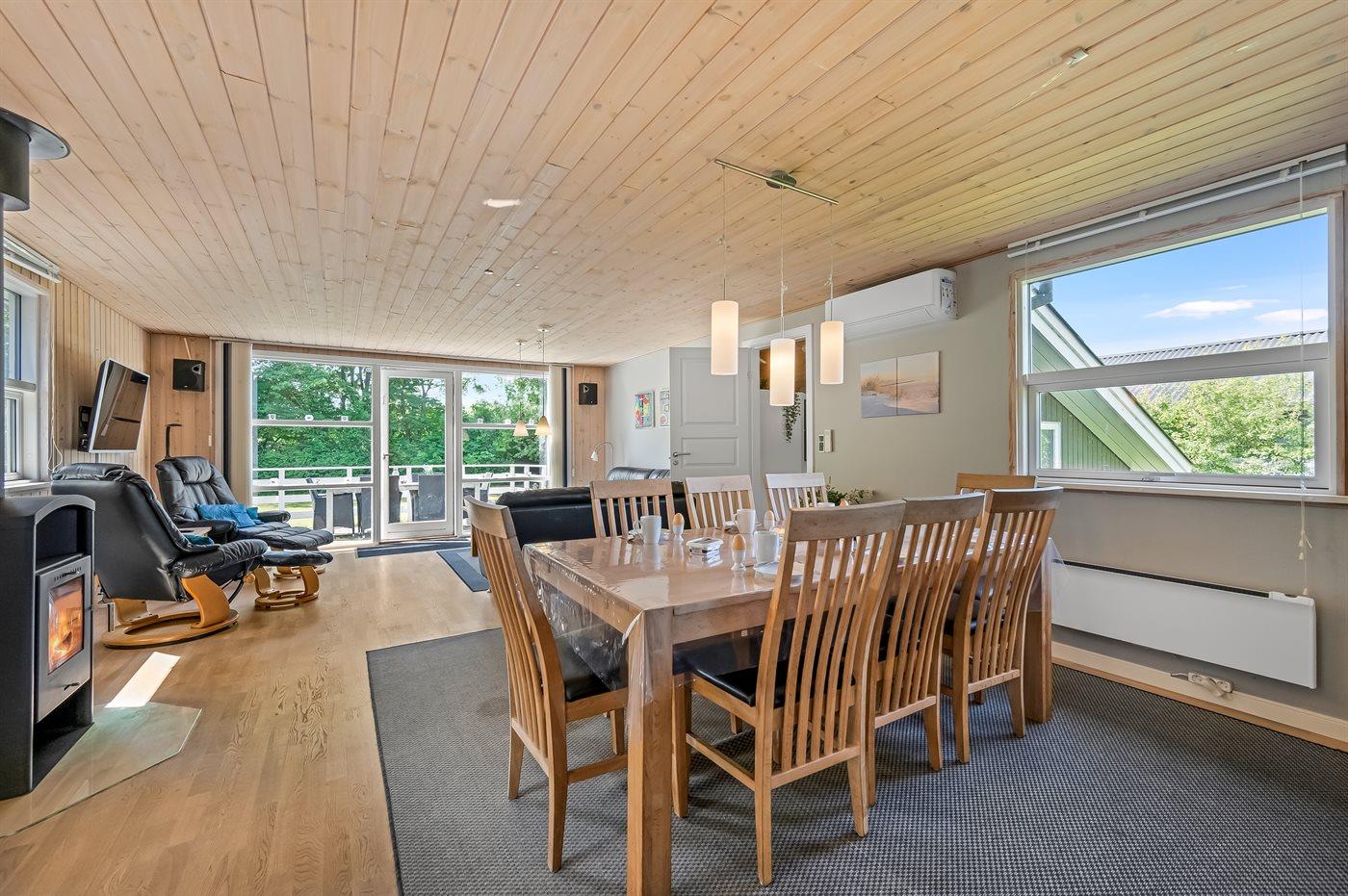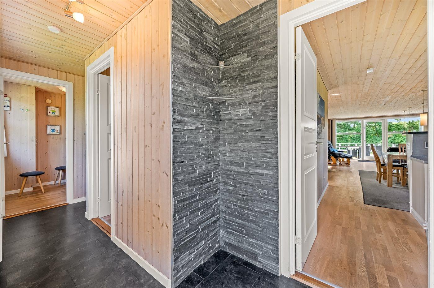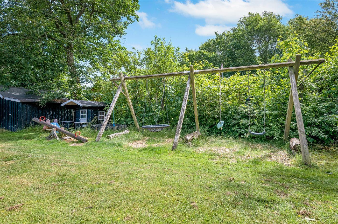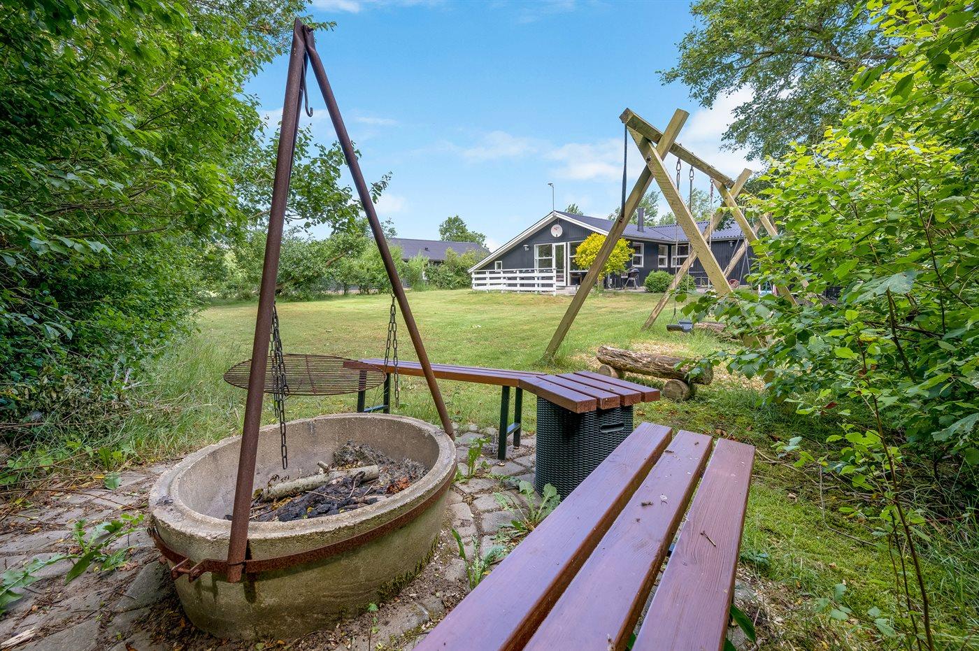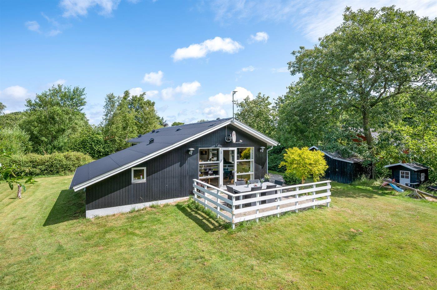 Ferieboligen er beliggende på en 1050 m² stor naturgrund. Der er 3000 m til havet. Der er 600 m til fjorden. Nærmeste forretning er beliggende i en afstand af 1500 m. Til ferieboligen hører åbent terrasseareal. Der er redskabsrum. Gynge. Sandkasse. Legehus. Vippe. Der ligger en legeplads i en afstand af 400 m. Bålsted. Grill til rådighed. Parkering ved ferieboligen.