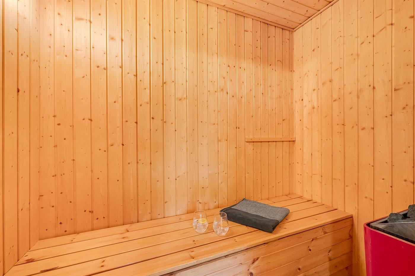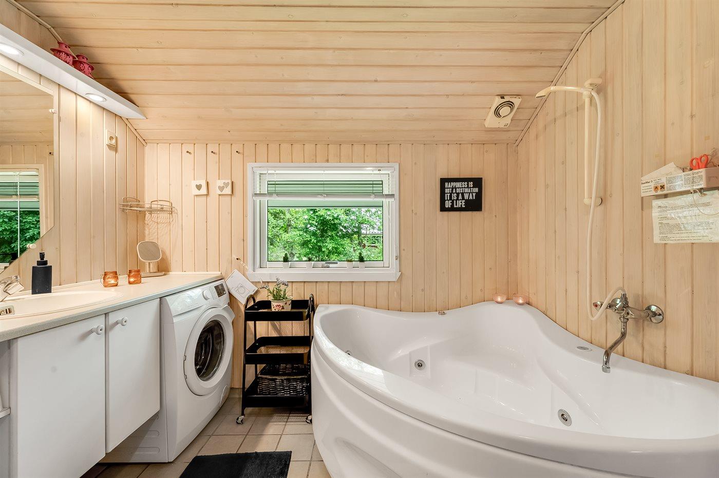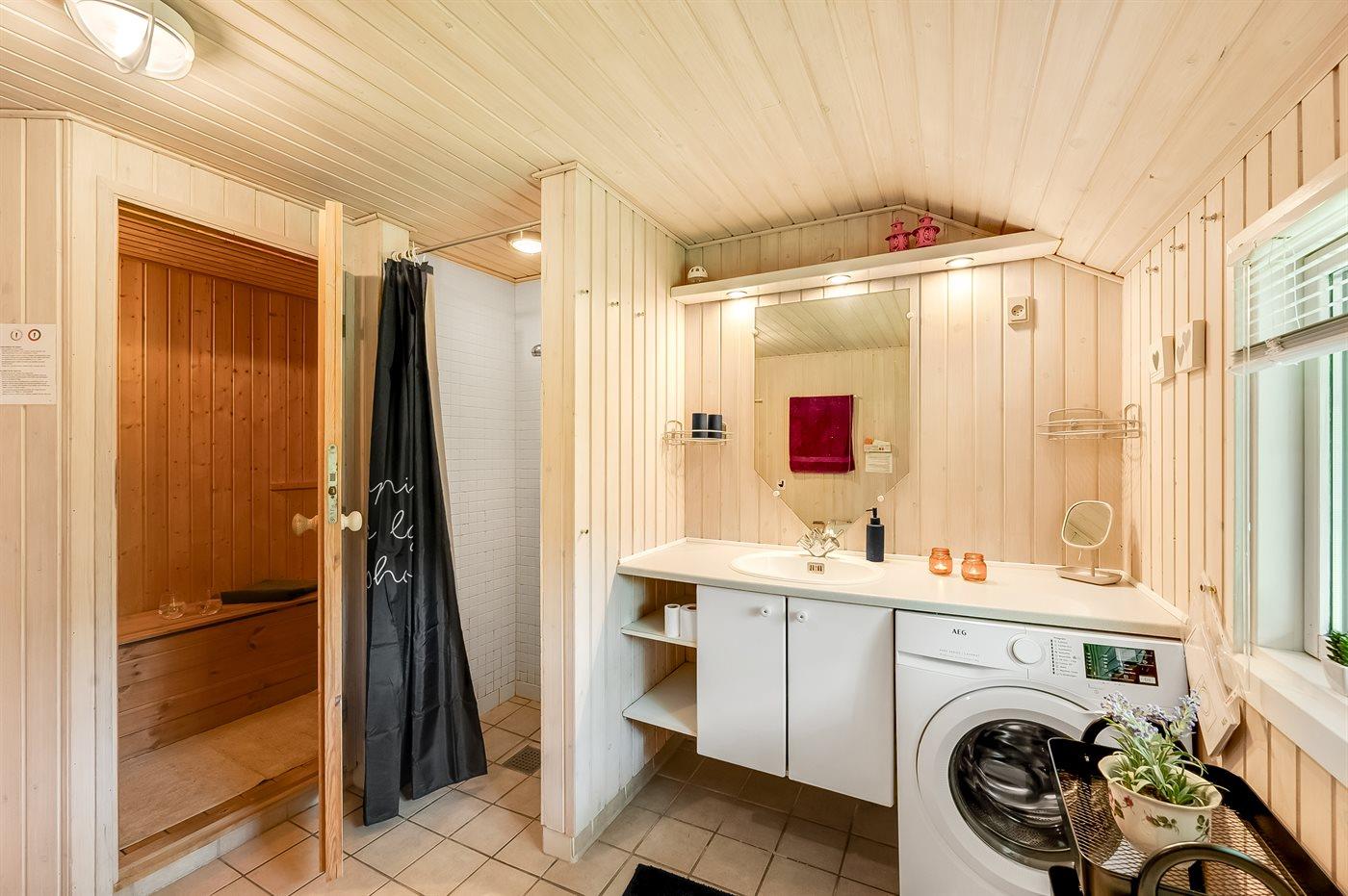 Der er 1 badeværelse med bruseniche og 1 toilet.. Der er gulvvarme på 1 badeværelse. I saunaen er der mulighed for afslapning.