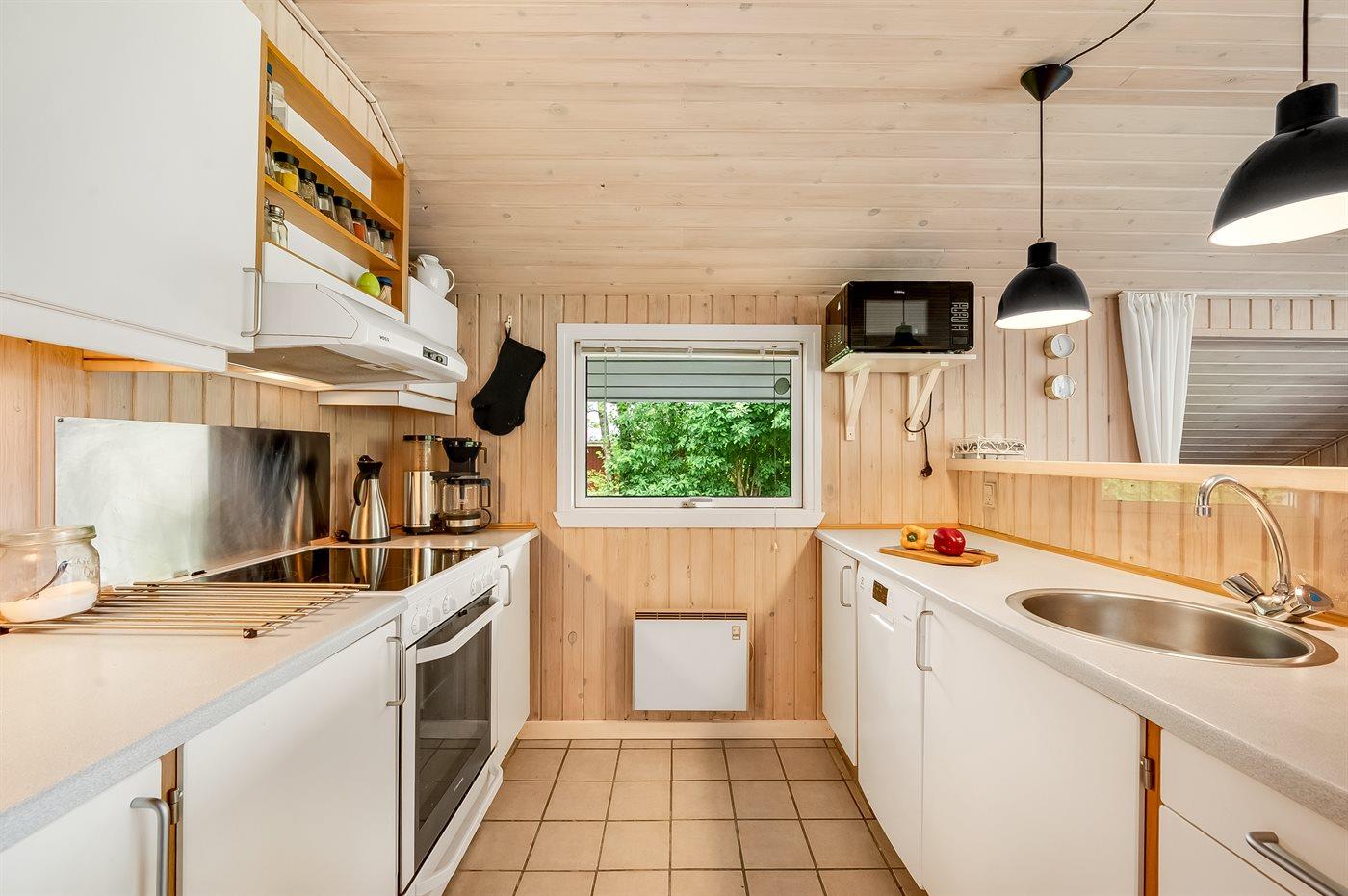 Køkkenet er udstyret med 1 køleskab. Der er 4 keramiske kogeplader, varmluftovn, mikrobølgeovn samt opvaskemaskine.