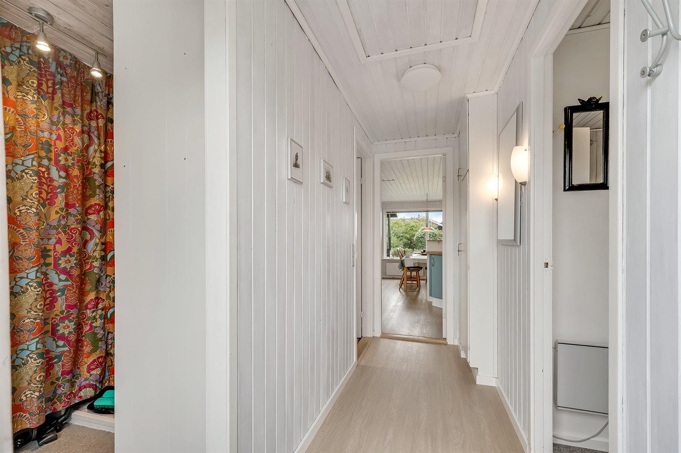 Et sommerhus i træ, bygget i 1980 og renoveret i 2008, beliggende på en natur-/havegrund. Der er fjordudsigt fra såvel hus som grund. Til huset hører åbne terrasser med havemøbler. Vægge og lofter er beklædt med træ.