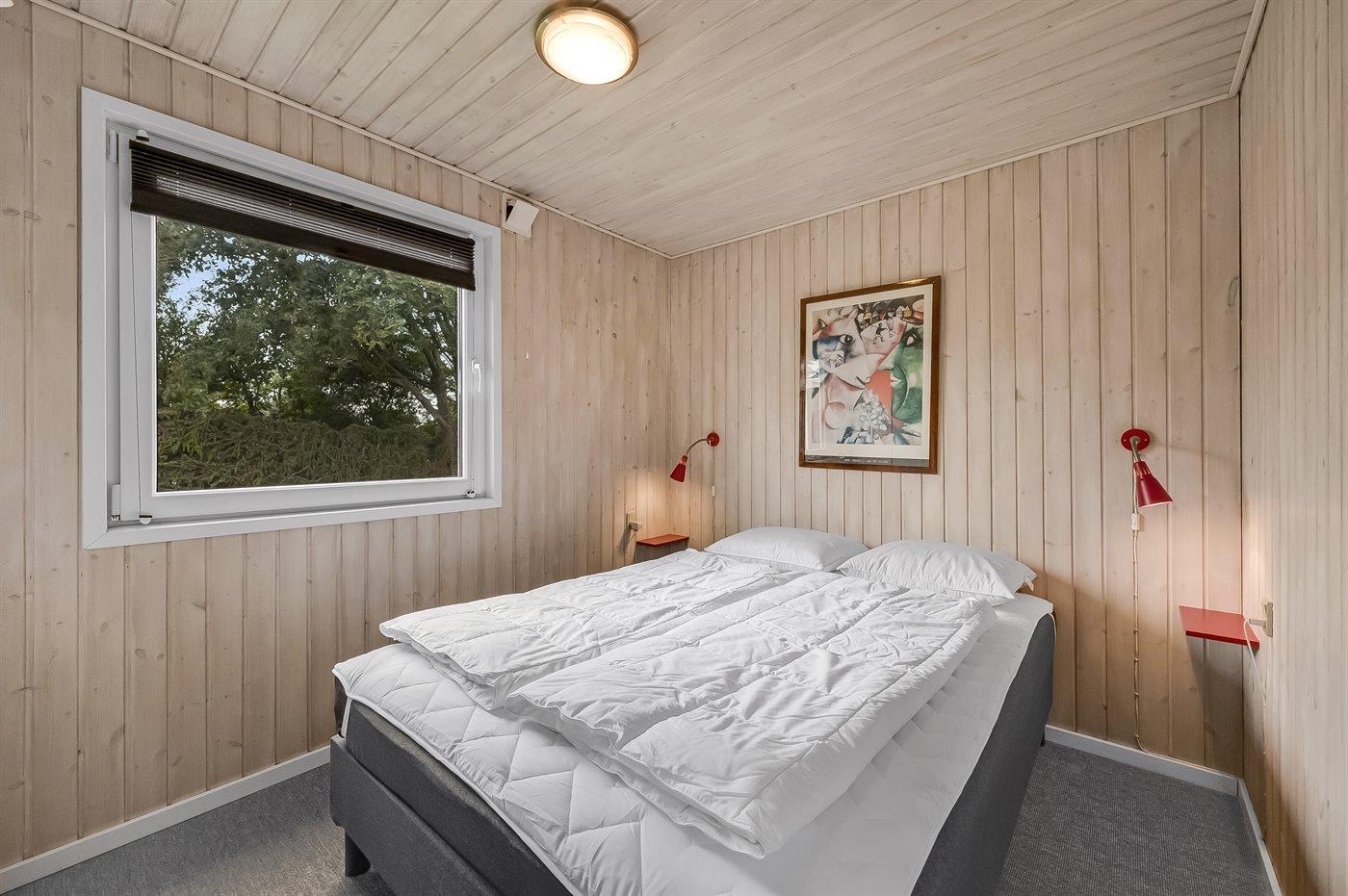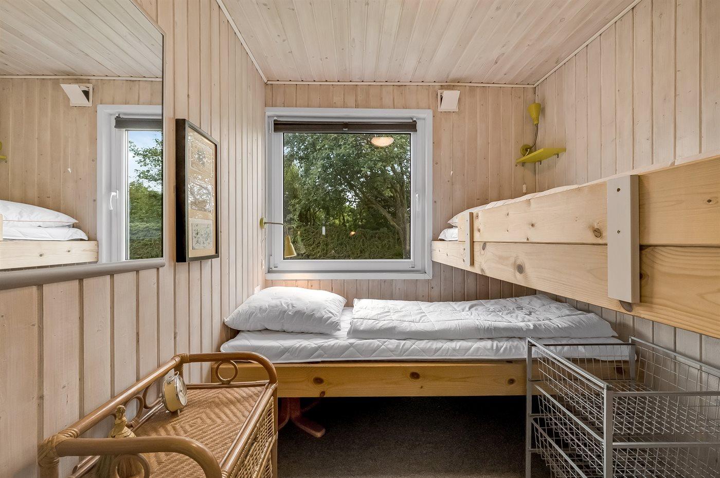 Husets sovepladser fordeler sig på 3 værelser; 1 med dobbeltseng,1 med 2 enkeltsenge og 1 med køjeseng. Til de mindste feriegæster er der barneseng til rådighed.