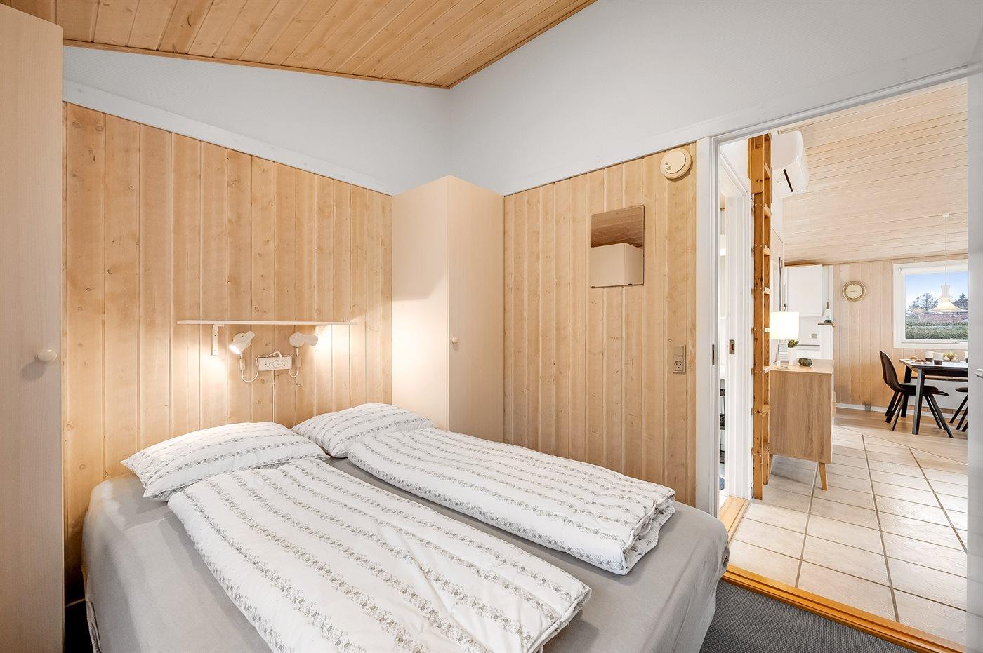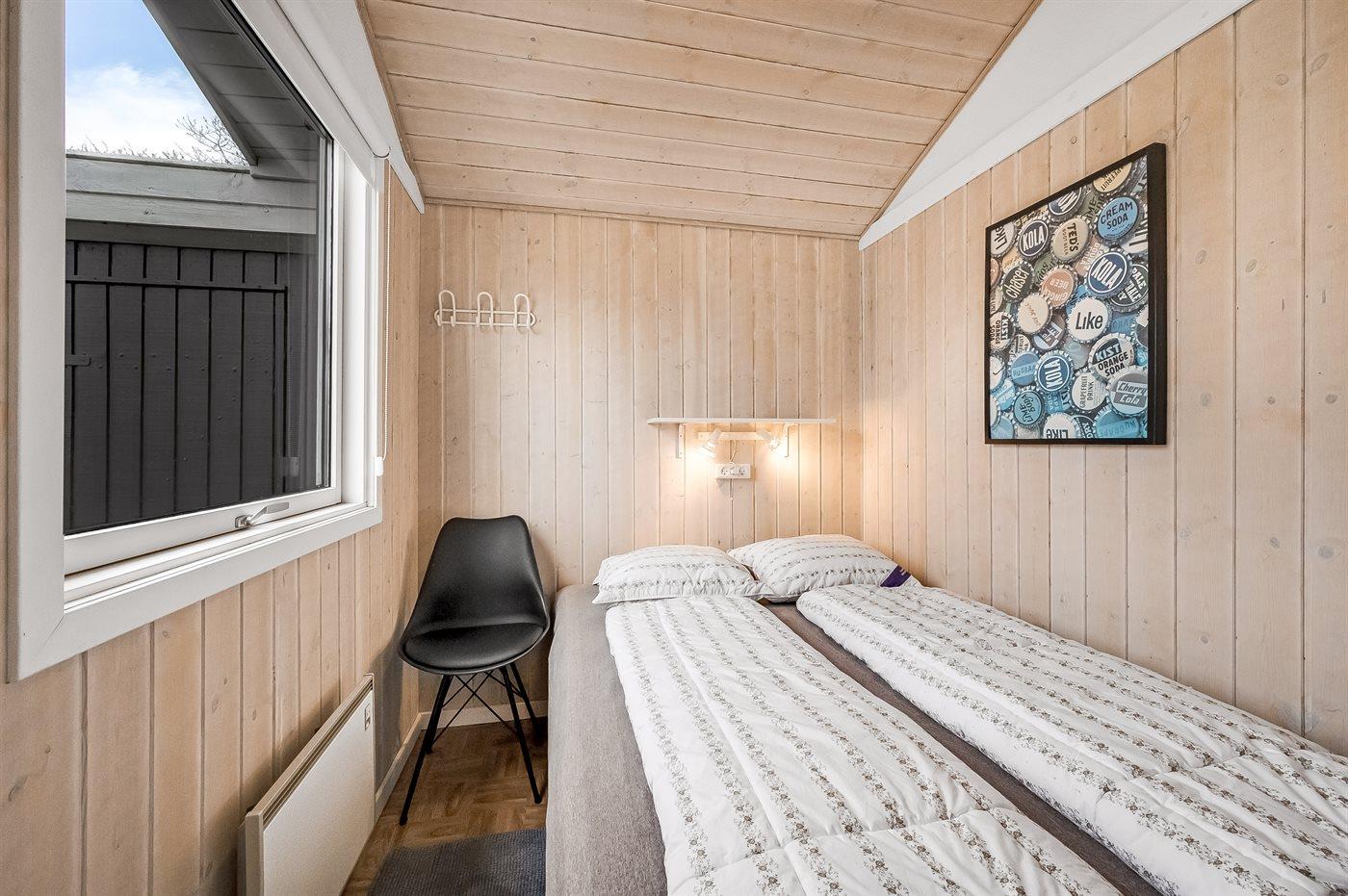 Der er i alt 2 soveværelser. Sovepladserne fordeler sig på: 4 sovepladser i dobbeltsenge. 2 sovepladser på madrasser. 2 af disse sovepladser befinder sig på husets hems. Derudover er der 1 stk. barneseng.