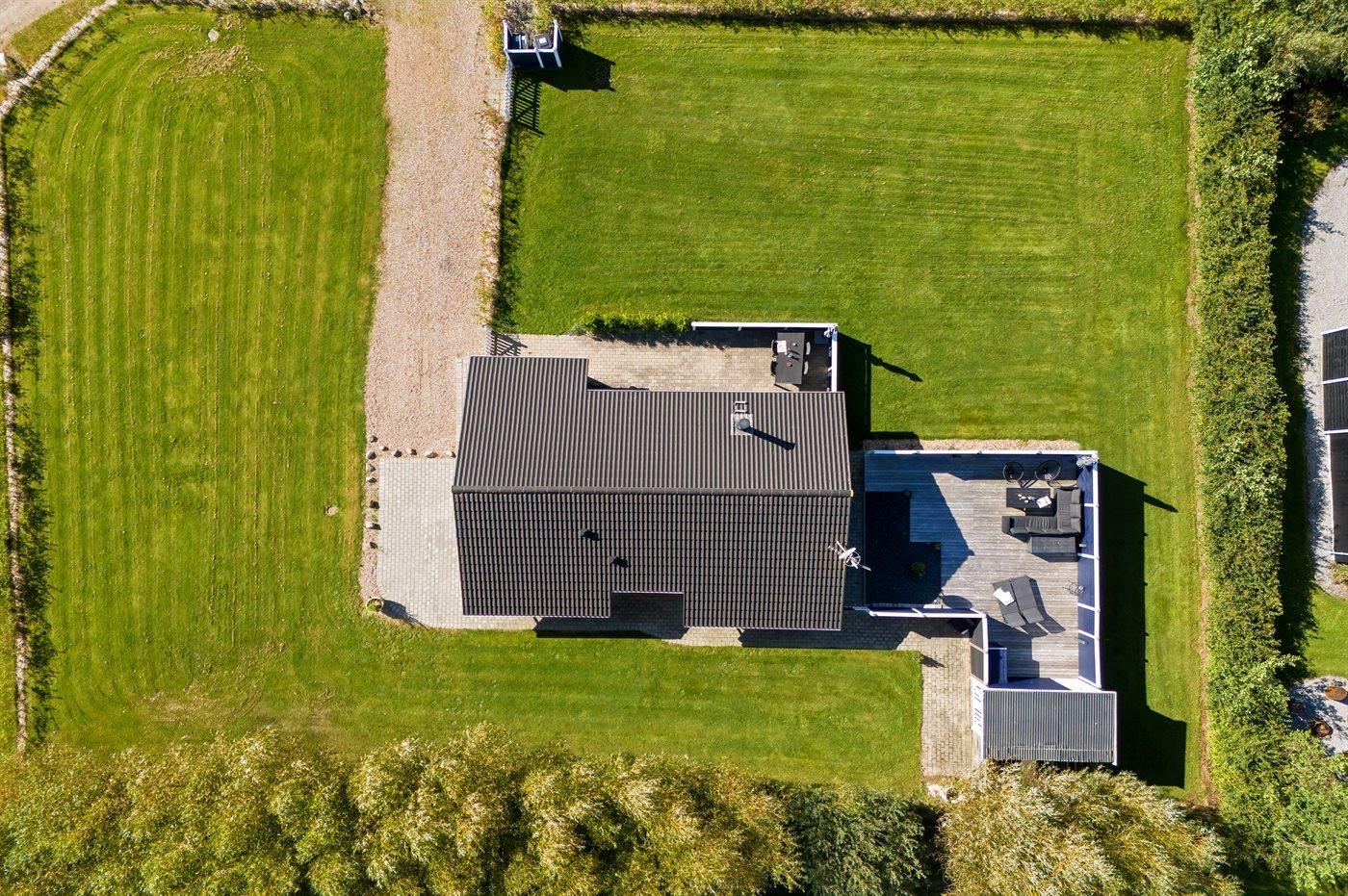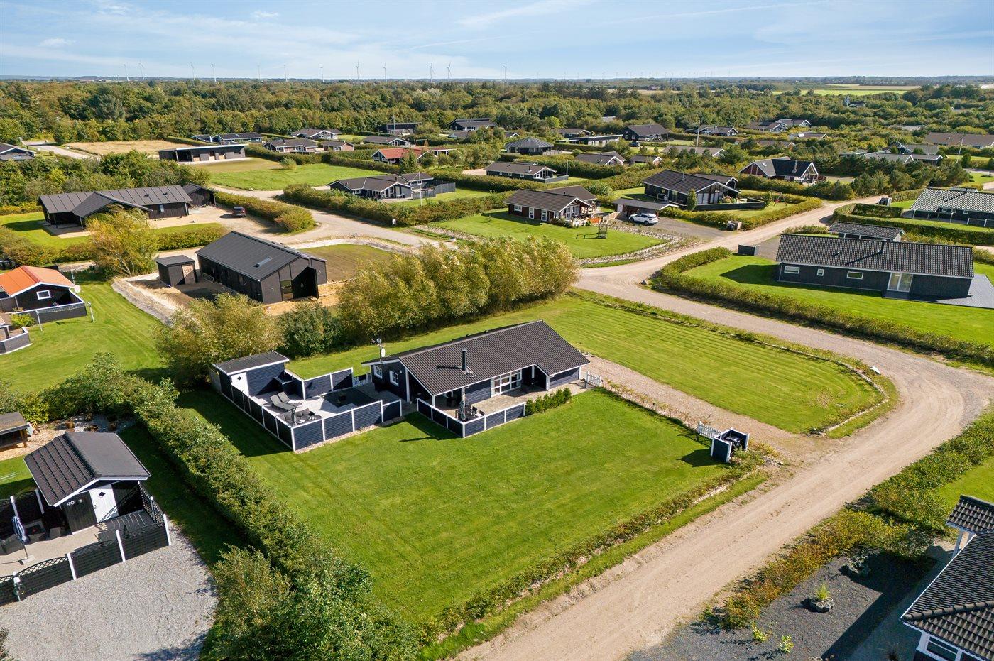 Ferieboligen er beliggende på en 1200 m² stor naturgrund. Grunden er indhegnet med et 50 cm højt hegn. Der er 6760 m til havet. Der er 1370 m til fjorden. Der er 6700 m til Vadehavet. Nærmeste forretning er beliggende i en afstand af 3000 m. Til ferieboligen hører 40 m² terrasseareal. Desuden er der 10 m² overdækket terrasse. Der ligger en legeplads i en afstand af 100 m. Parkering ved ferieboligen.
