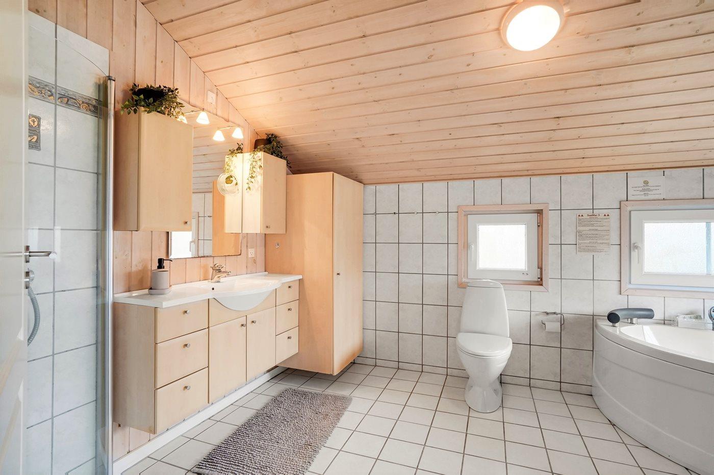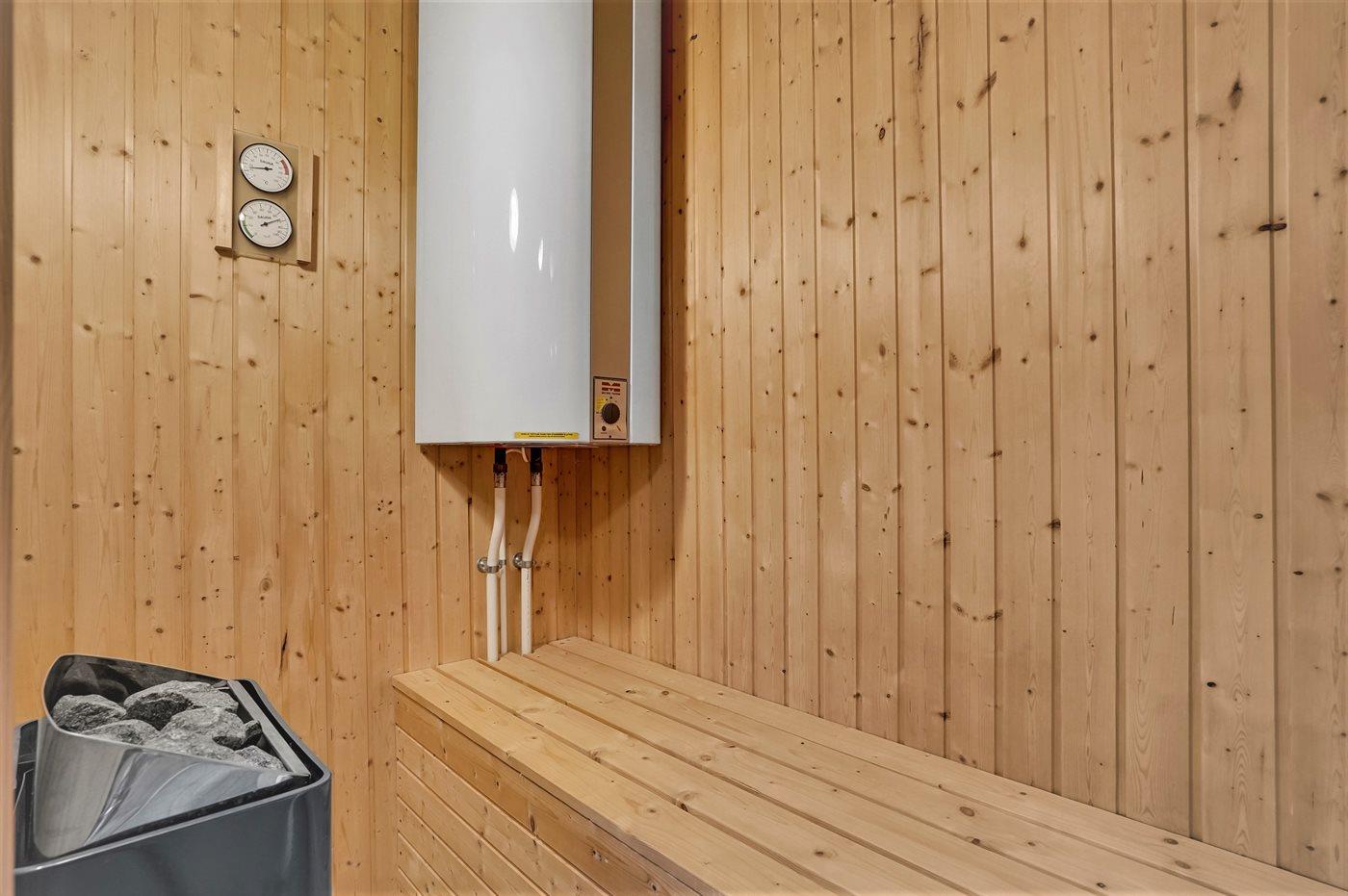Der er 1 badeværelse med bruseniche og 1 toilet.. Der er gulvvarme på 1 badeværelse. I saunaen er der mulighed for afslapning.